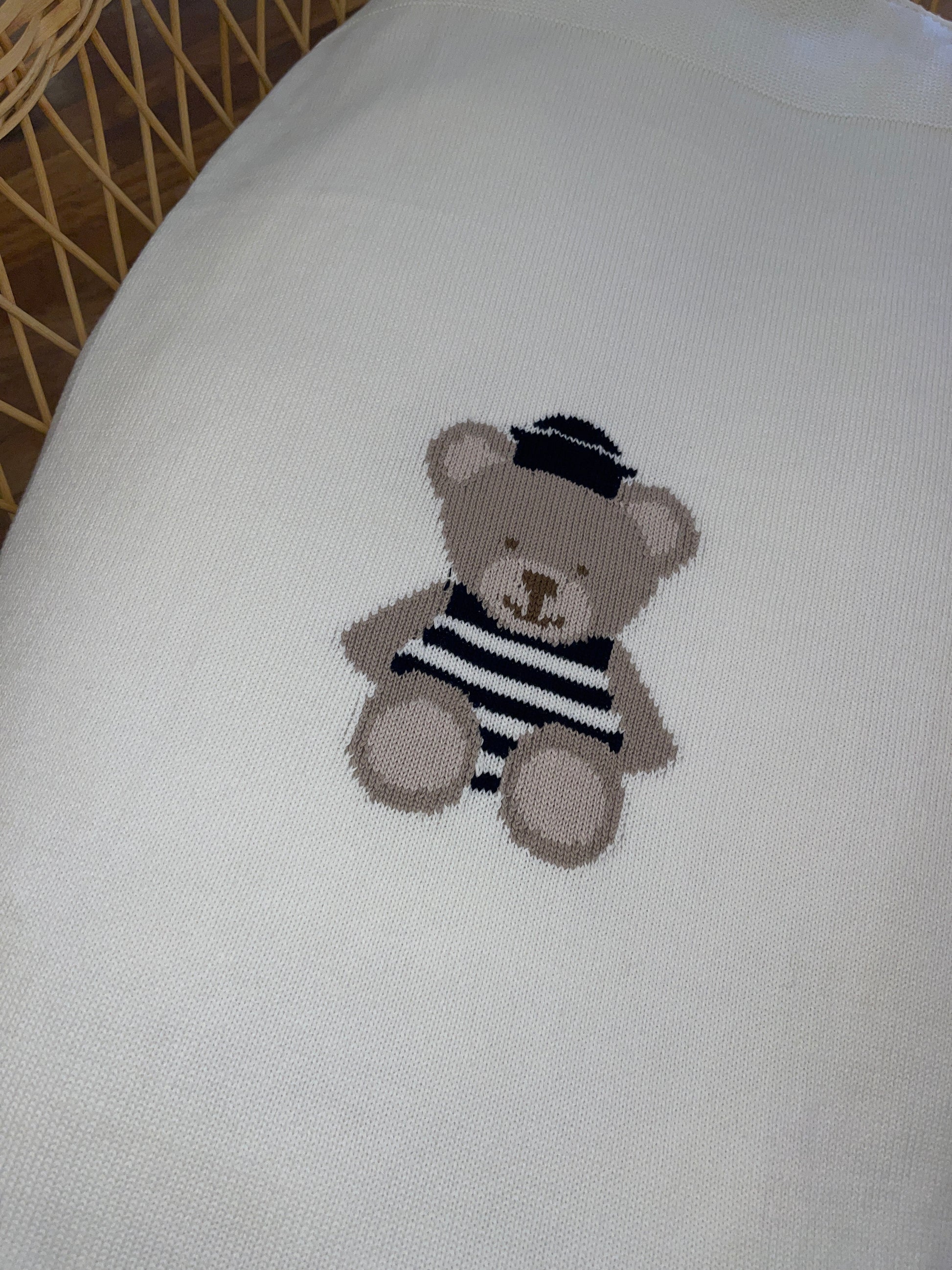 Questa coperta Jo Milano unisce morbidezza e design raffinato, con un orsetto marinaretto al centro che aggiunge un tocco di dolcezza e stile. Perfetta per avvolgere il tuo bambino con comfort e calore, è ideale per ogni momento di relax o riposo. Realizzata con materiali di alta qualità, garantisce durata e delicatezza sulla pelle.
