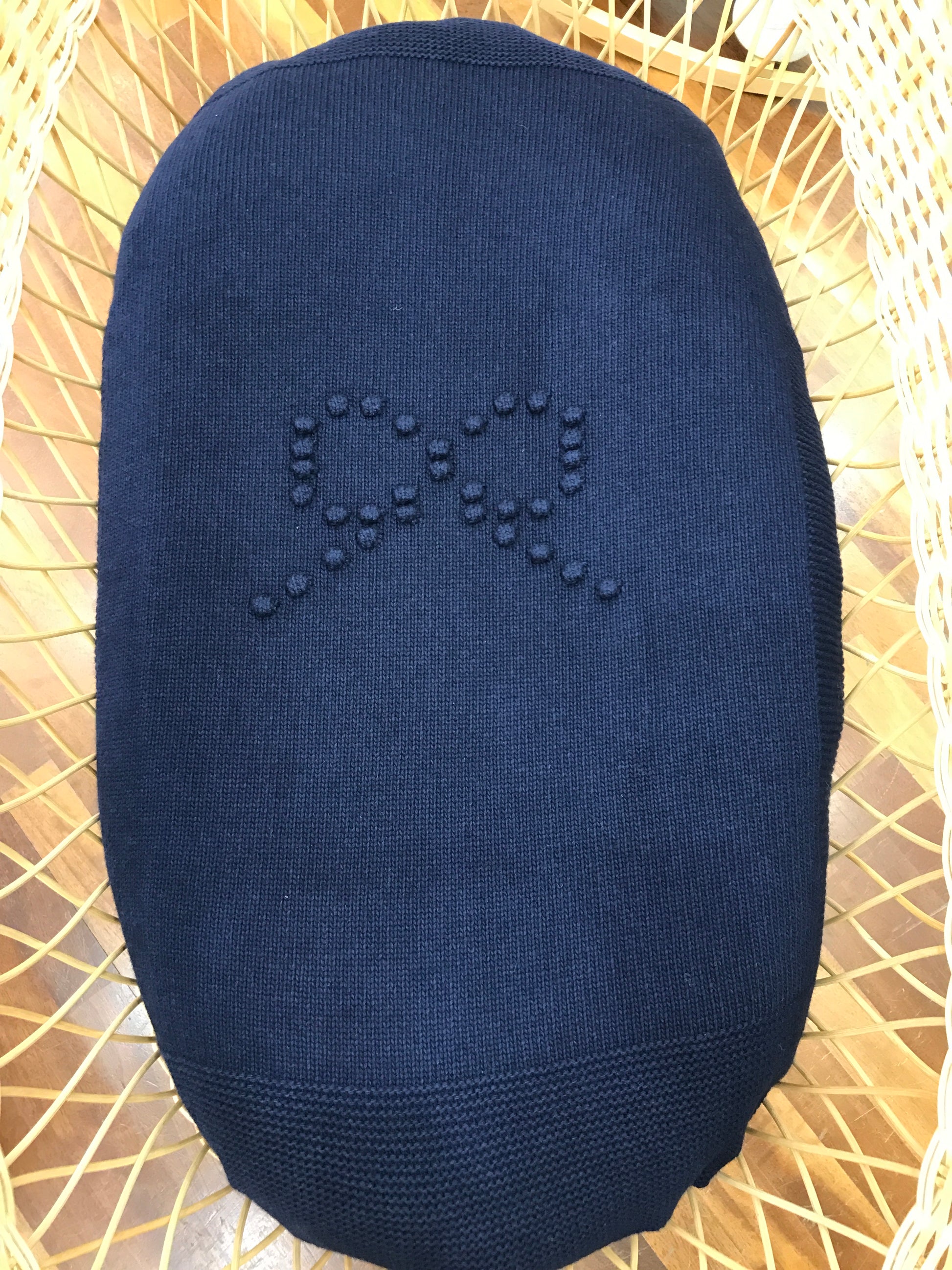 Questa coperta in lana presenta un bordo finemente ricamato e un fiocco tono su tono ricamato al centro, che ne esalta l’eleganza e la qualità artigianale.
