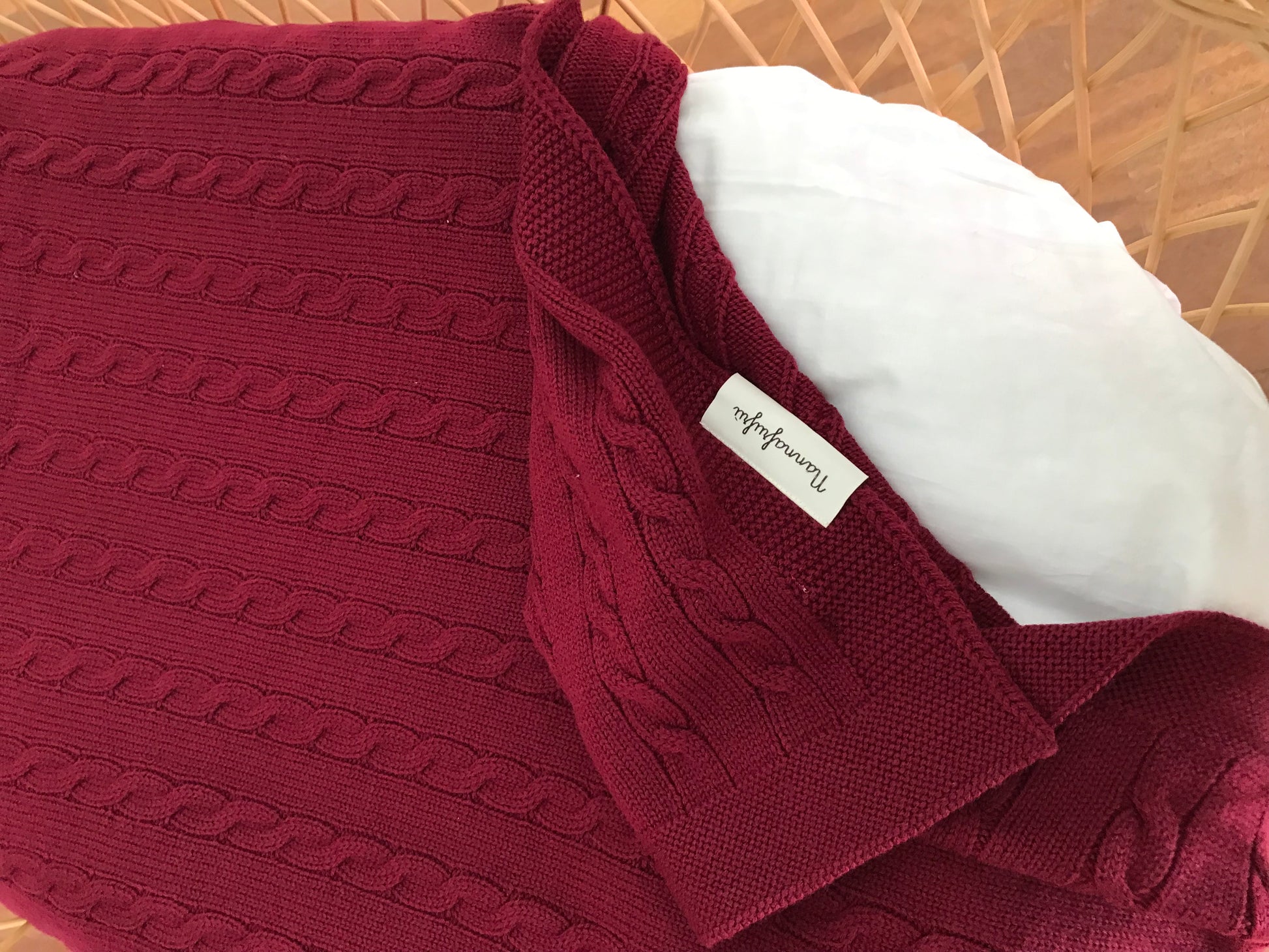 Questa coperta in lana, realizzata nel raffinato colore borgogna, presenta una pregiata lavorazione a trecce che si estende su tutta la superficie, conferendo un aspetto elegante e una texture avvolgente ideale per il massimo comfort.