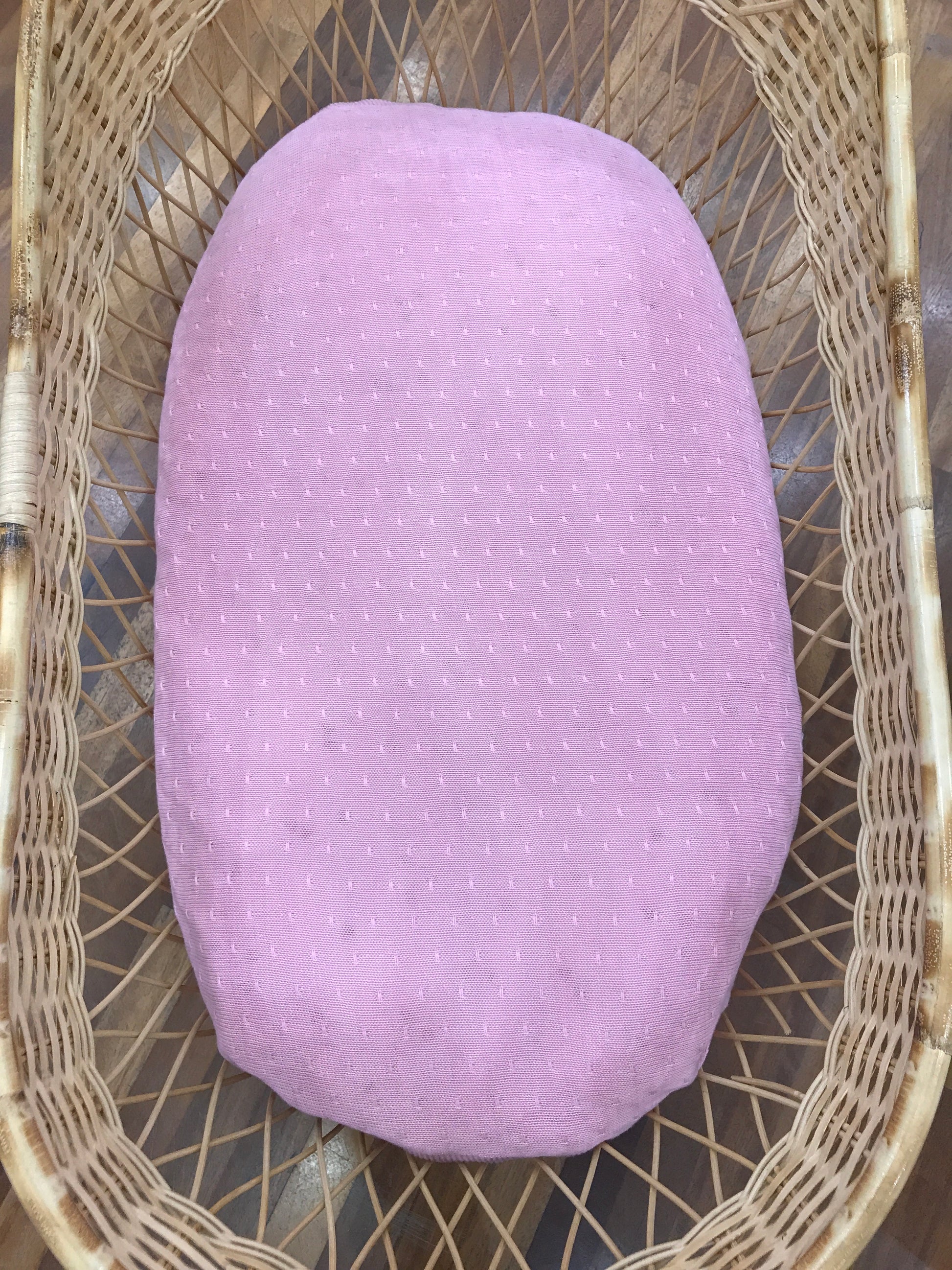 Coperta Paz Rodriguez in filo rosa smerlata al bordo con passanastro laterale in cotone bianco con fiori rosa con fiocchetto laterale