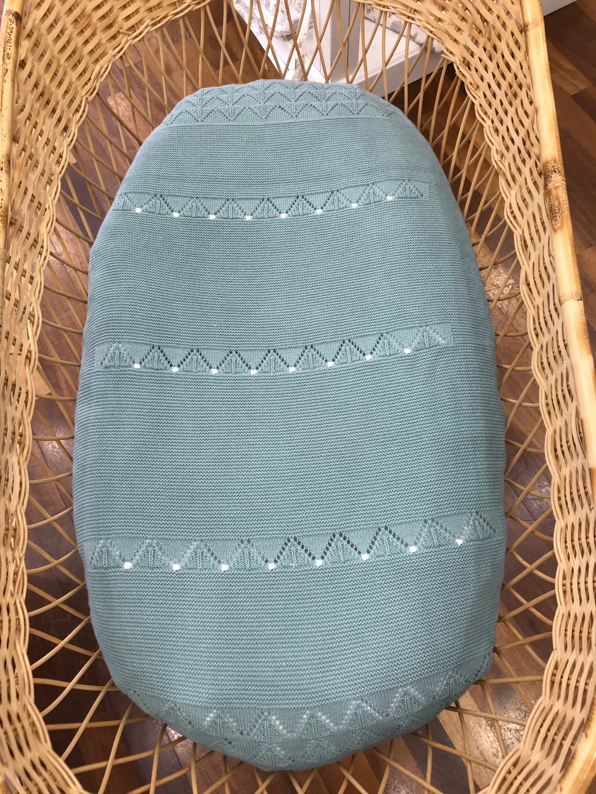 Questa coperta verde, arricchita da pois bianchi, si distingue per i raffinati ricami traforati posizionati al centro, che ne esaltano l’eleganza. Il bordo è interamente decorato con un delicato ricamo traforato, conferendo un aspetto sofisticato e curato nei dettagli. A completare il design, un fiocco tono su tono aggiunge un tocco di dolcezza e armonia, rendendo questa coperta un accessorio ideale per il comfort e lo stile del tuo bambino.