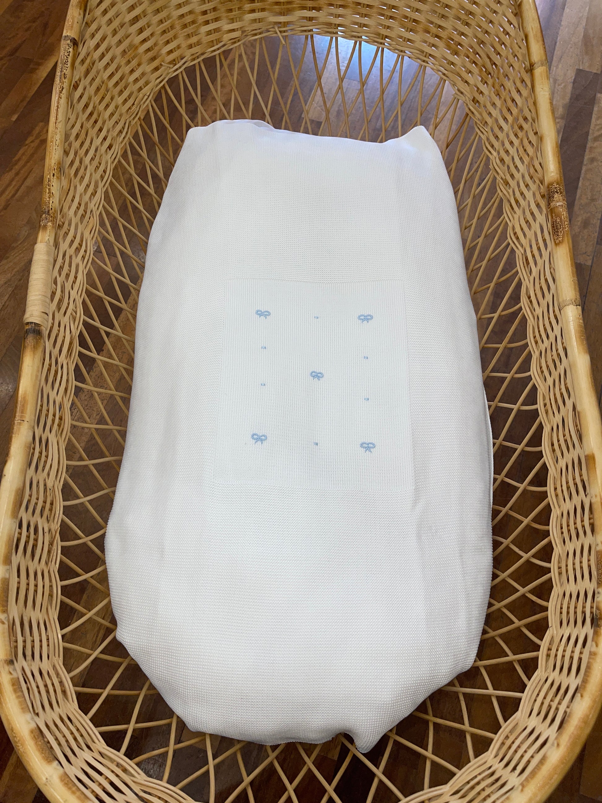 Questa coperta pepece è perfetta per aggiungere un tocco di eleganza e calore alla tua casa. Realizzata con tessuti di alta qualità, presenta un ricamo a mano di pois e nido d'amore al centro che aggiunge un tocco di stile unico.