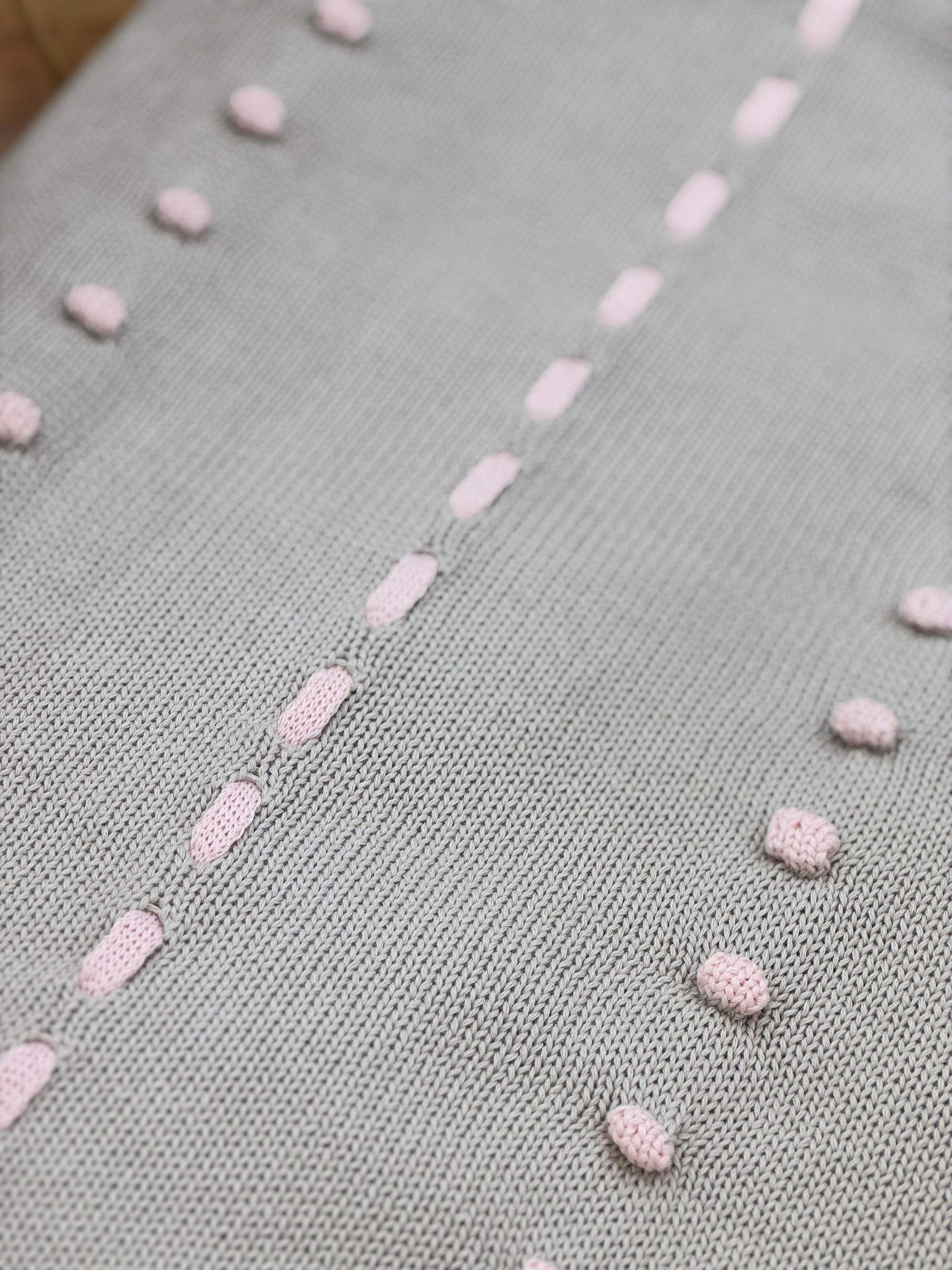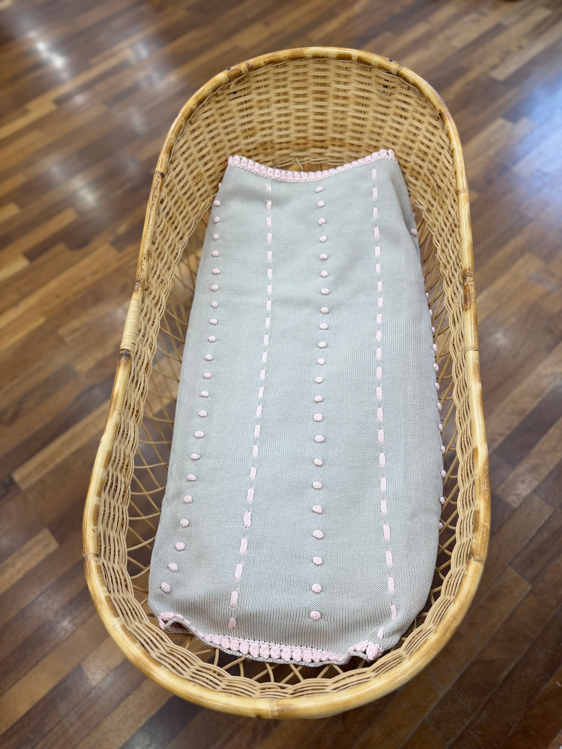 Questa delicata copertina è perfetta per avvolgere il tuo bambino con morbidezza e dolcezza. Realizzata in filo beige, è impreziosita da dettagli rosa che donano un tocco di eleganza. Ideale per coccolare il tuo neonato e creare un'atmosfera serena e rilassate nella sua cameretta.