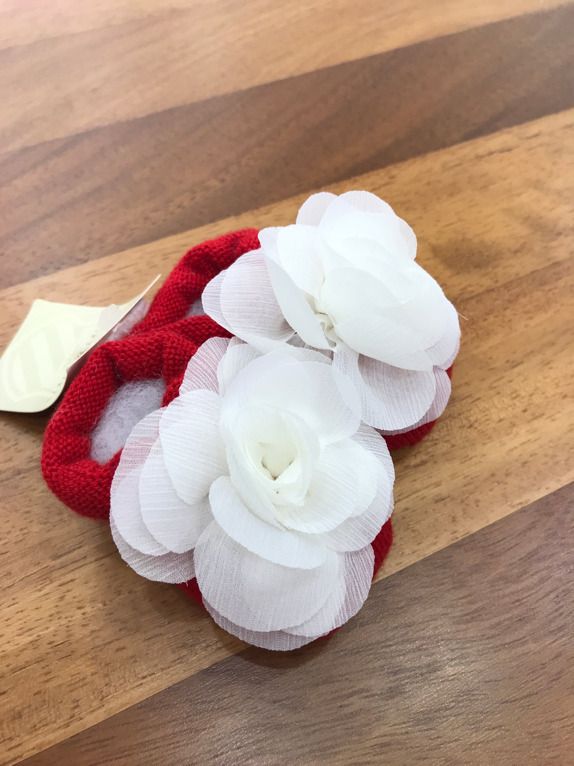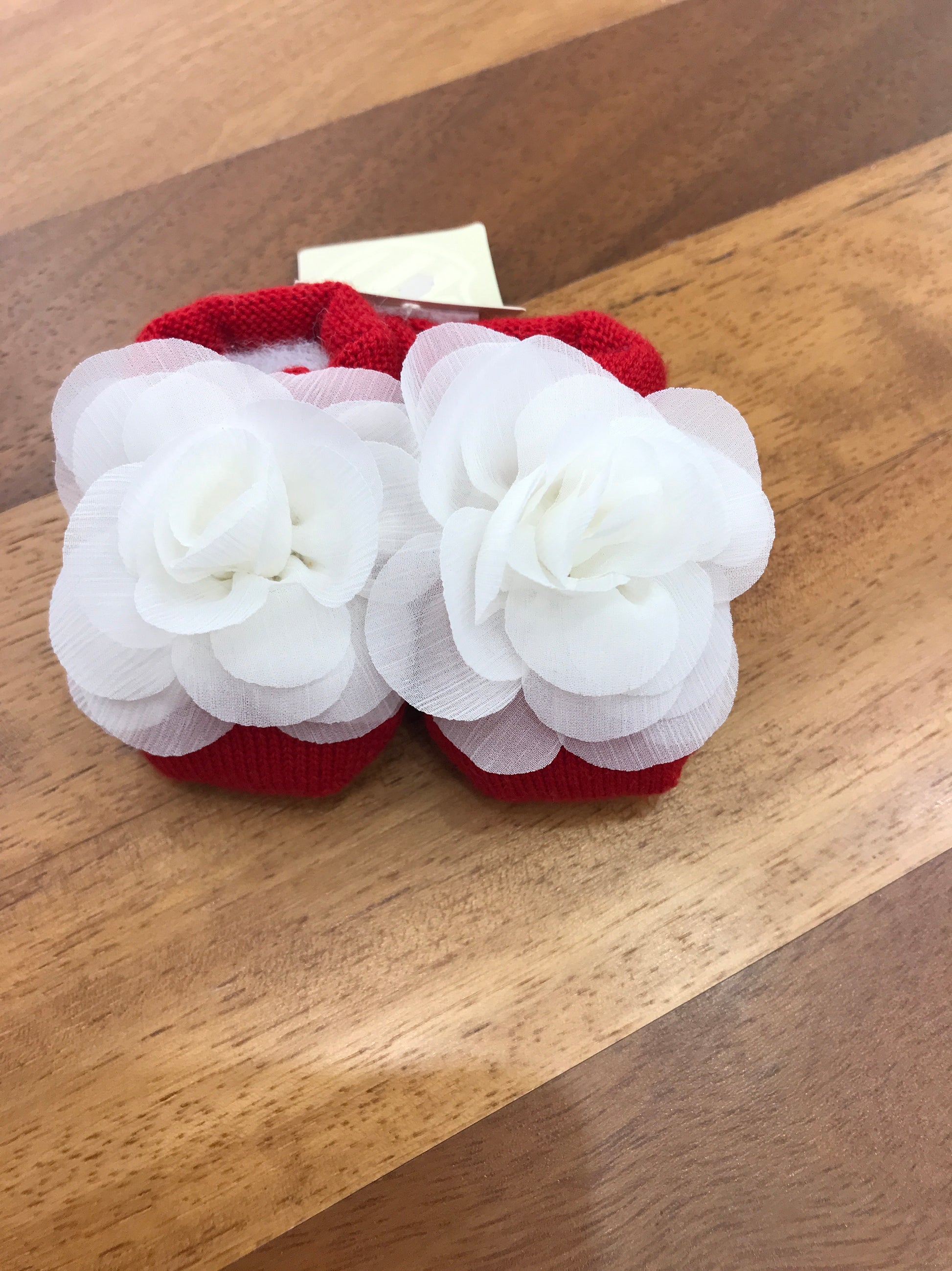Queste babbucce in lana presentano un raffinato piccolo risvolto e sono impreziosite da un delicato fiorellino applicato sul davanti, che aggiunge un tocco di eleganza e dolcezza al design, garantendo comfort e calore ai piedini dei più piccoli.