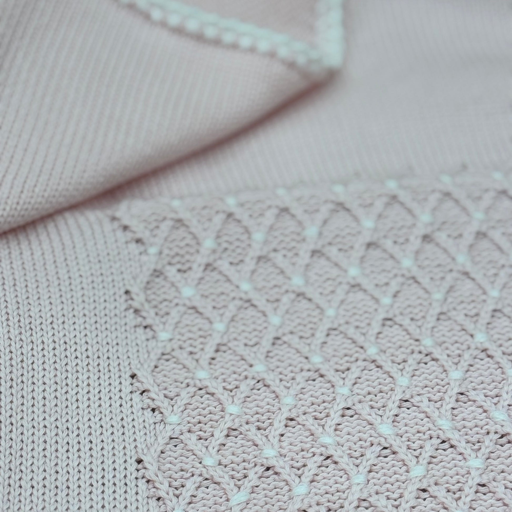Questa copertina rosa e bianca in morbido cotone è perfetta per la tua neonata. Con il suo delicato ricamo a nido d'ape, la coperta offre un'adorabile accoglienza alla tua piccola, mantenendola calda e protetta. Realizzata con filo di cotone di alta qualità, è ideale per coccolare il tuo prezioso tesoro.