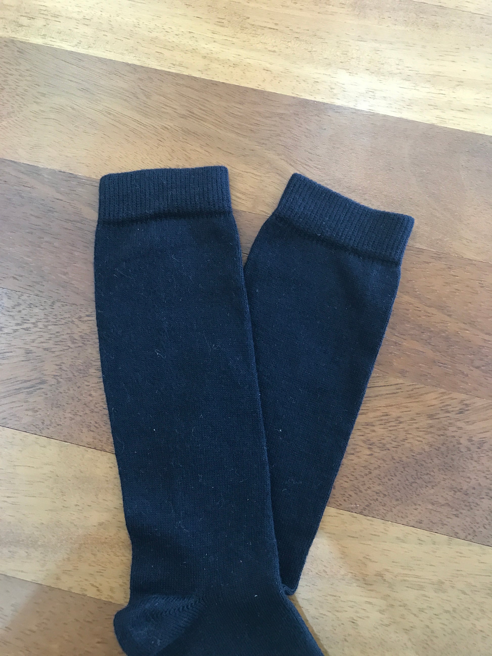 Calzini semplici in lana con tonalità blu scuro classica.