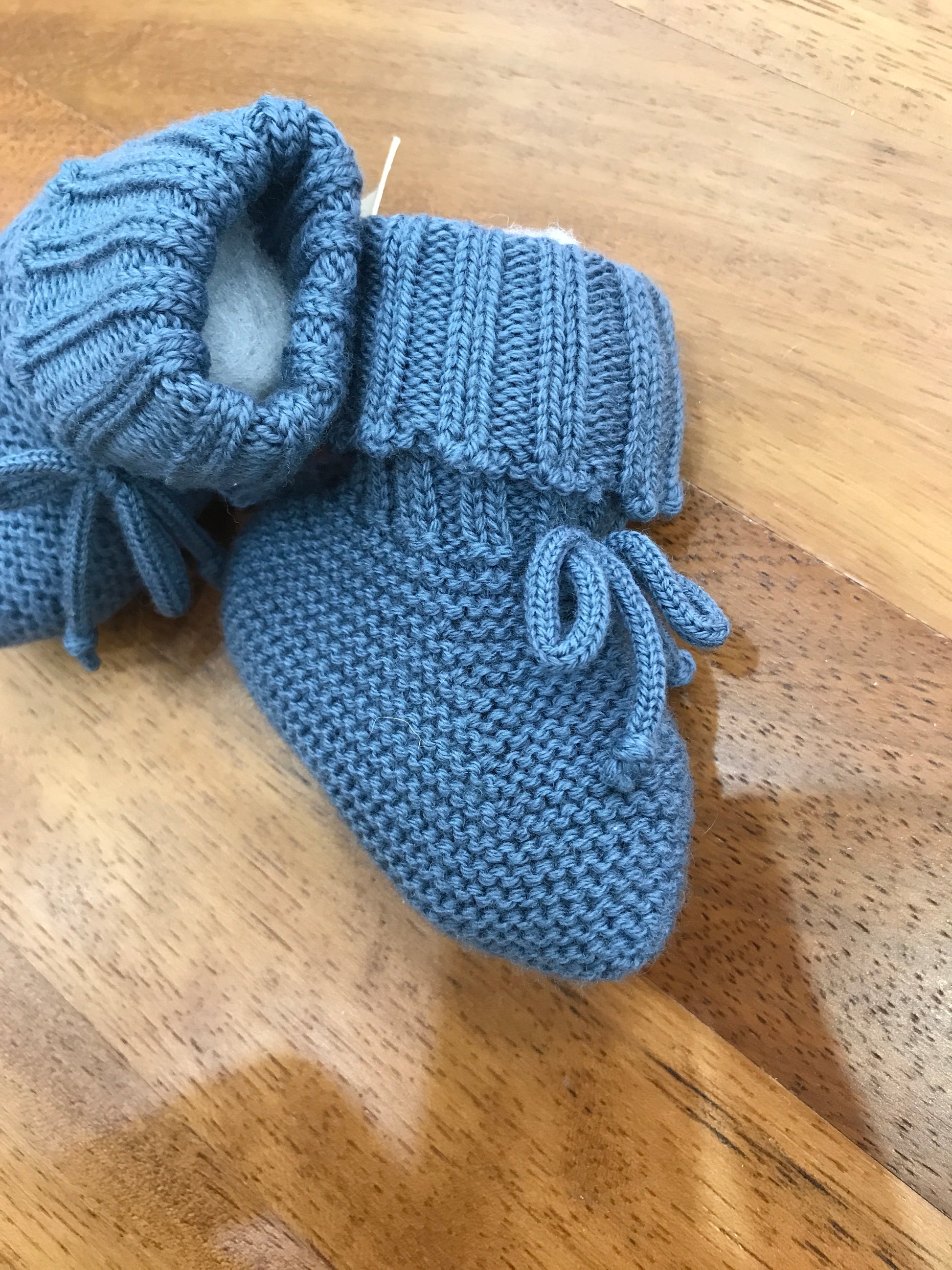 Morbide babbucce in lana di un raffinato colore petrolio, caratterizzate da un elegante risvolto e da un passanastro che si chiude con un delicato fiocchetto.