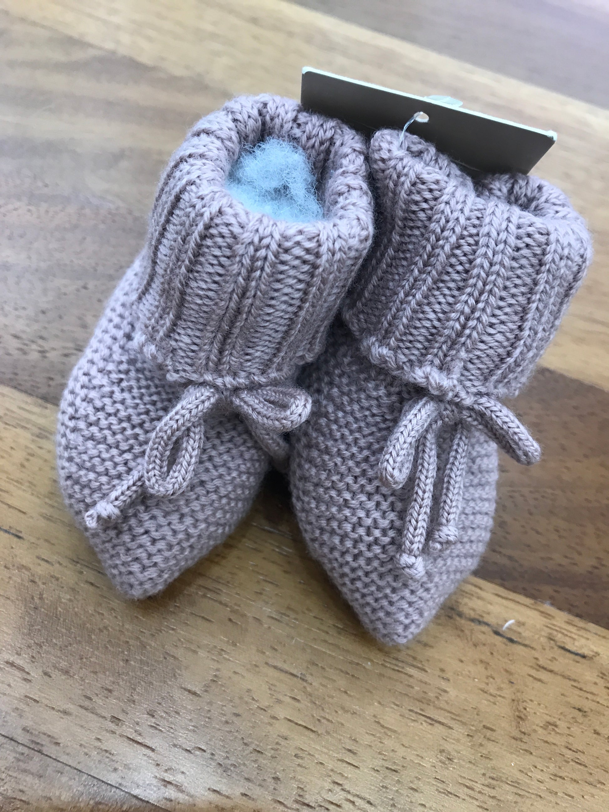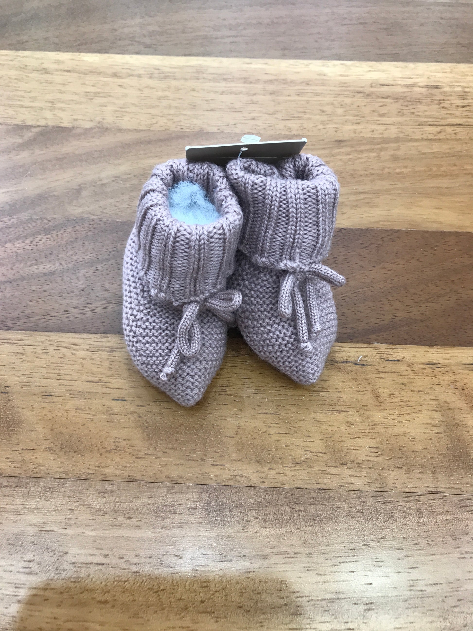 Morbide babbucce in lana rosa antico, caratterizzate da un elegante risvolto e da un passanastro decorativo che avvolge un fiocchetto raffinato.