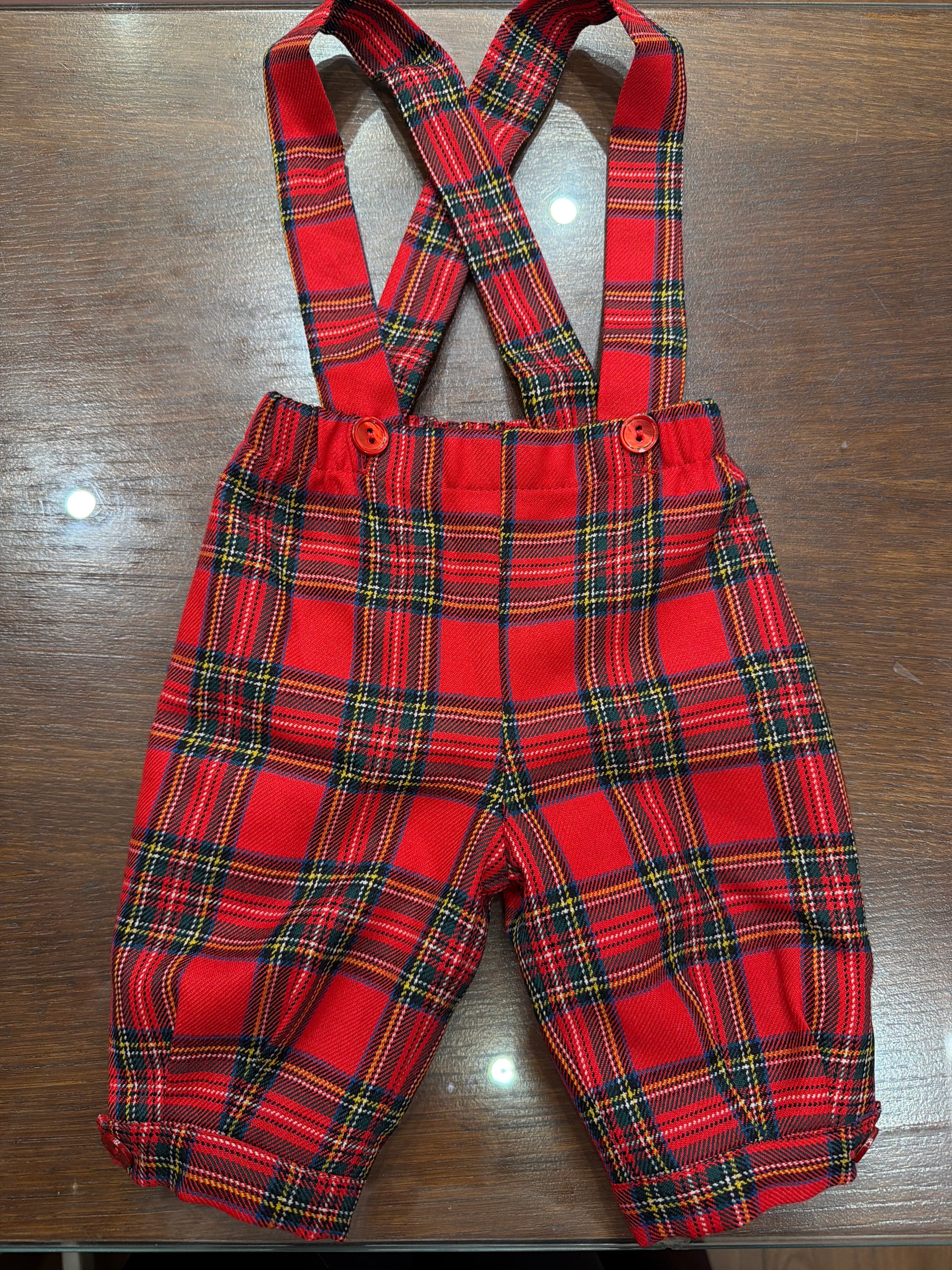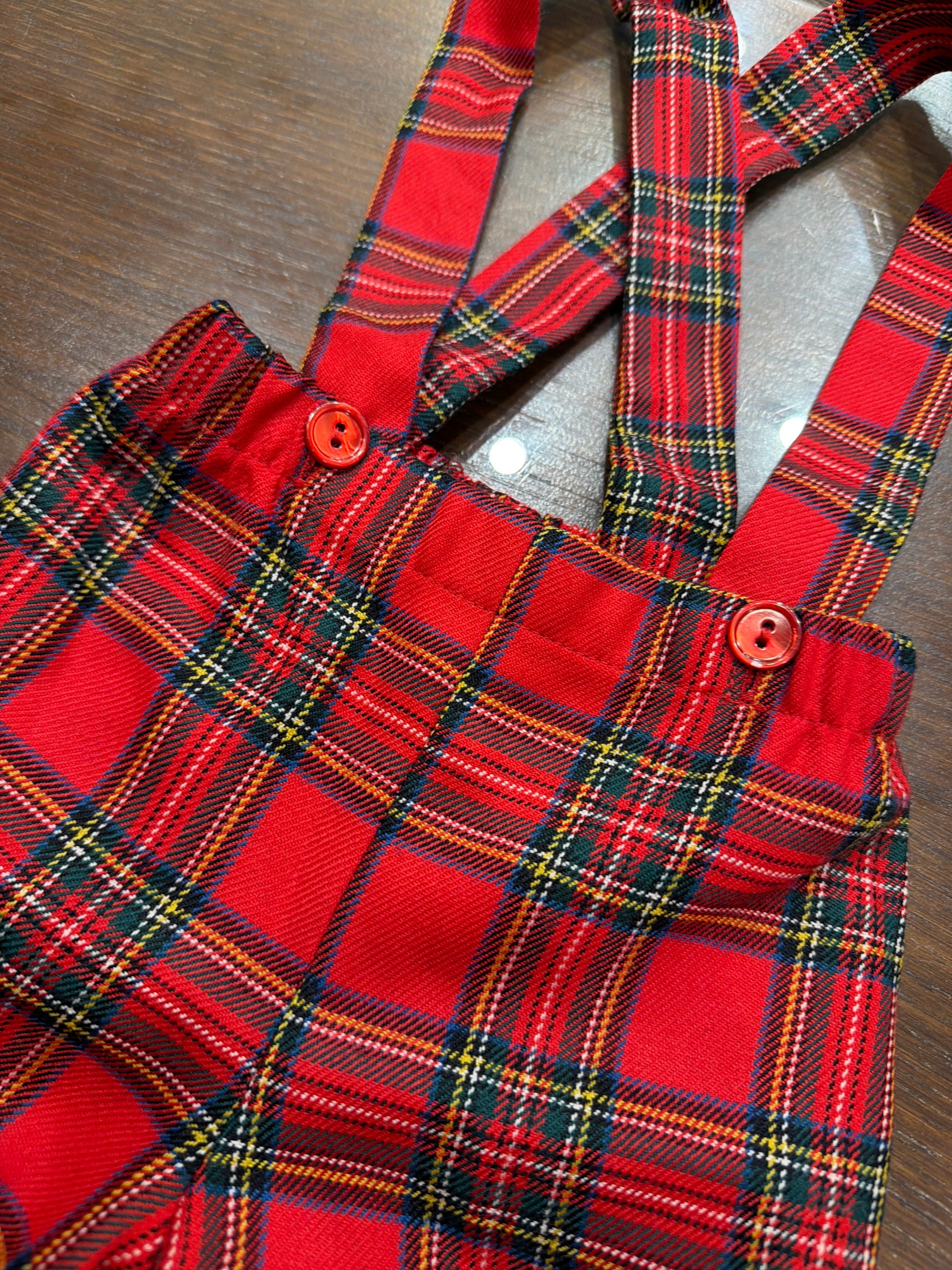 Salopette in tessuto scozzese con bretelle regolabili, proposta in una palette cromatica che spazia dai toni rosati ai verdi naturali. Un capo versatile che combina praticità e stile, ideale per chi ricerca un'alternativa moderna ai classici indumenti per bambini.