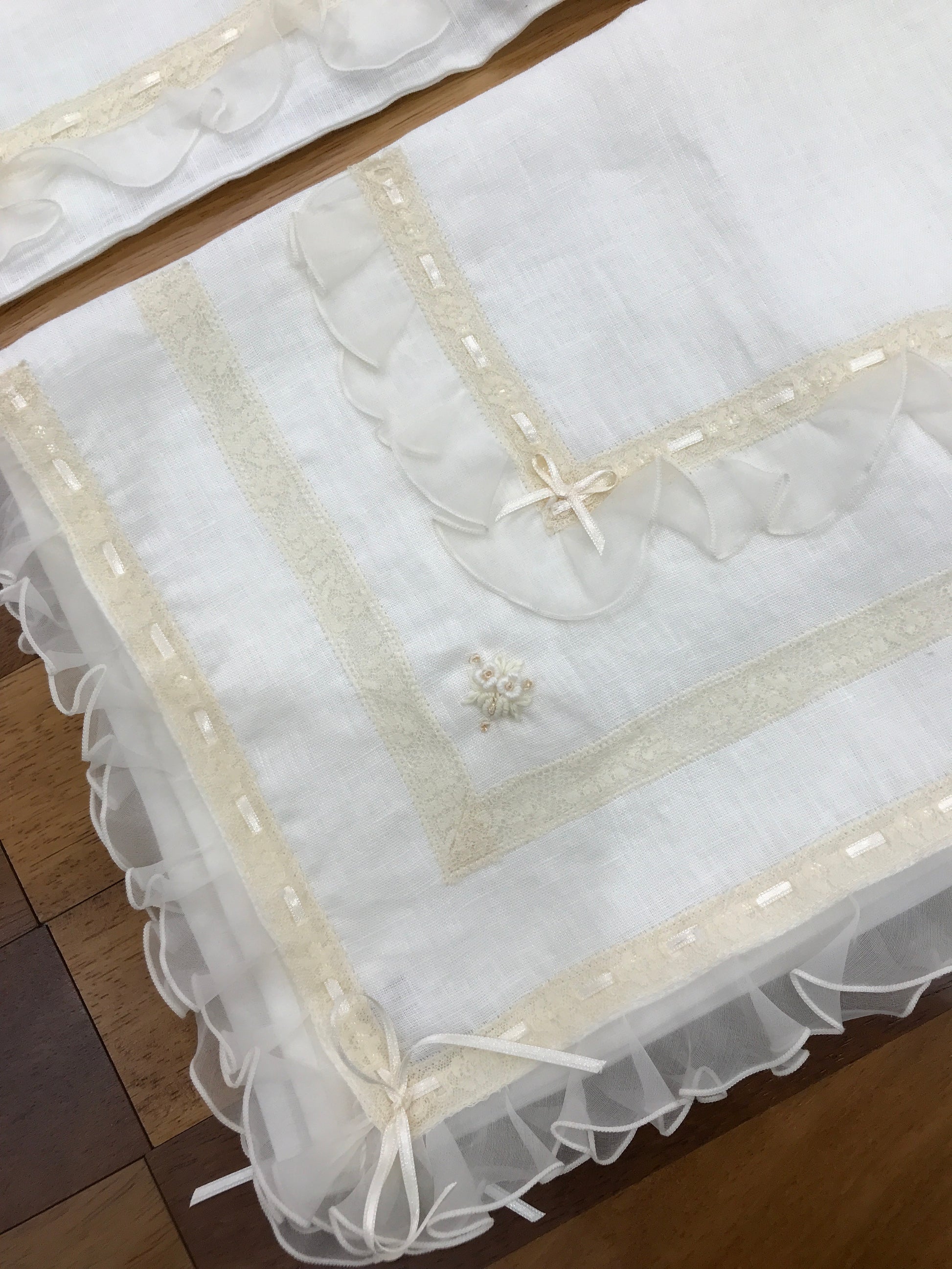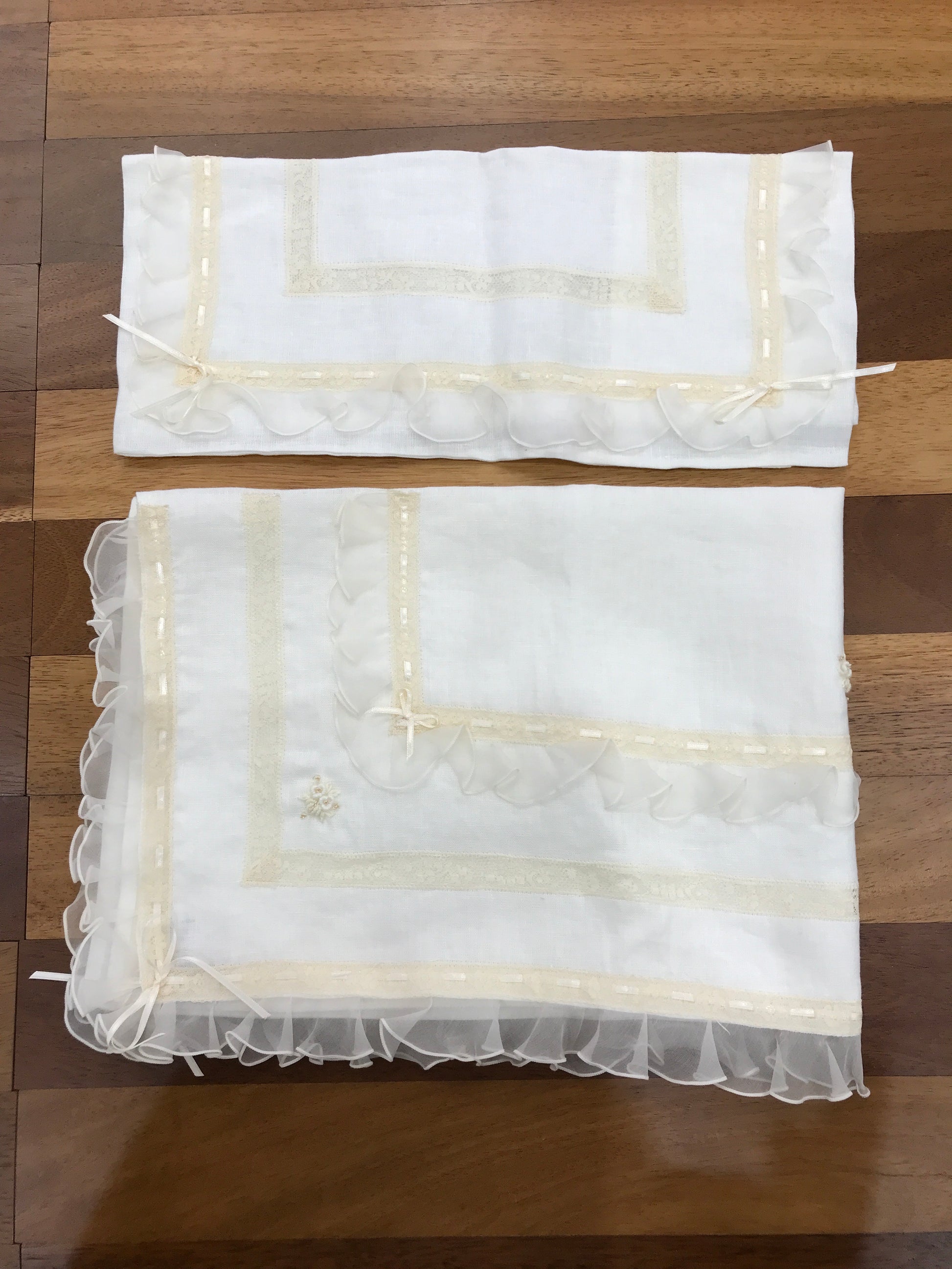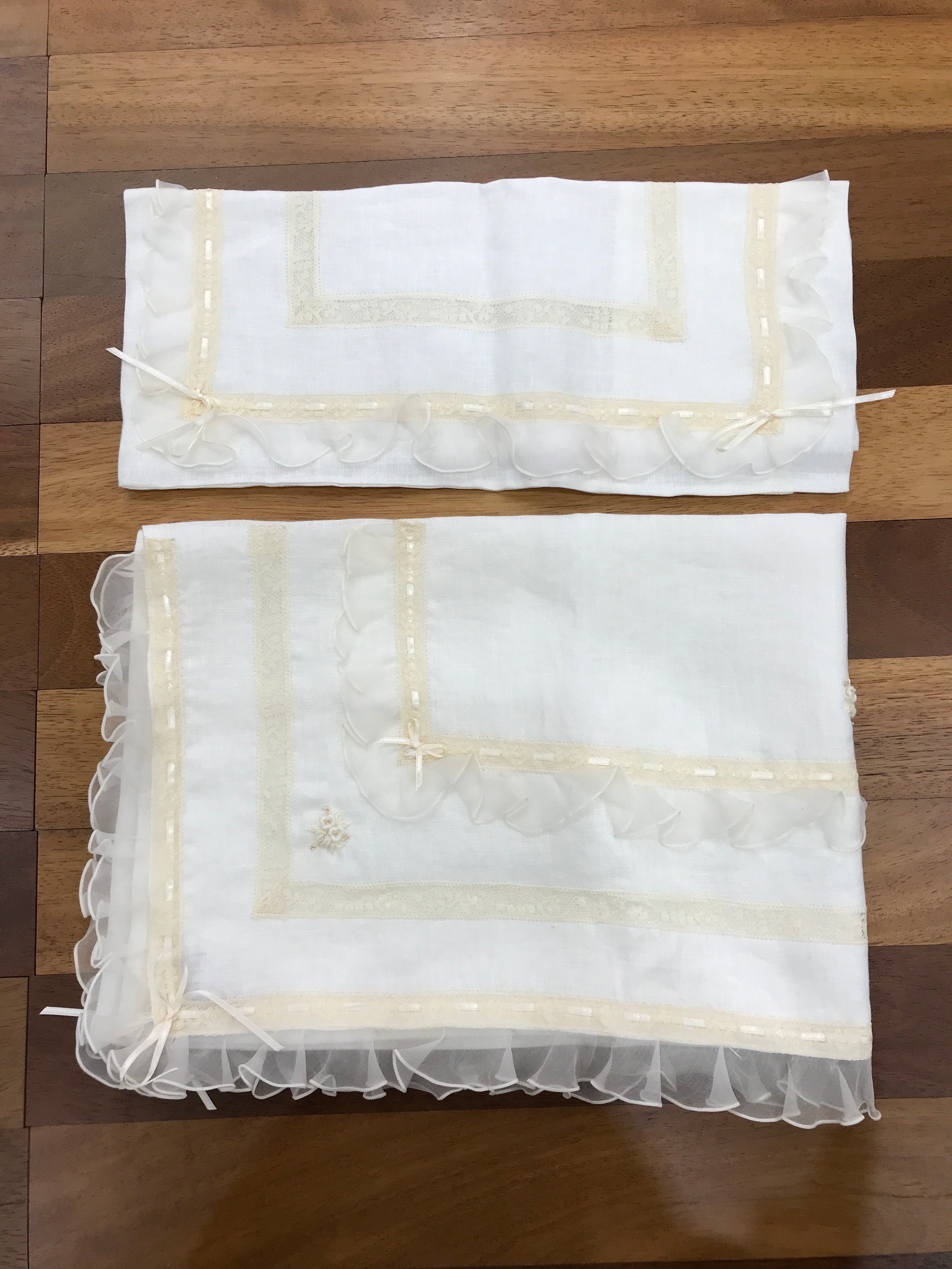 Delicato lenzuolino realizzato in pregiato lino, caratterizzato da una raffinata combinazione cromatica bianco e avorio. Le eleganti rusche in bianco completano il design, conferendo un tocco di sofisticatezza al capo. Ideale per chi apprezza la qualità naturale del lino e desidera un articolo versatile e di classe.