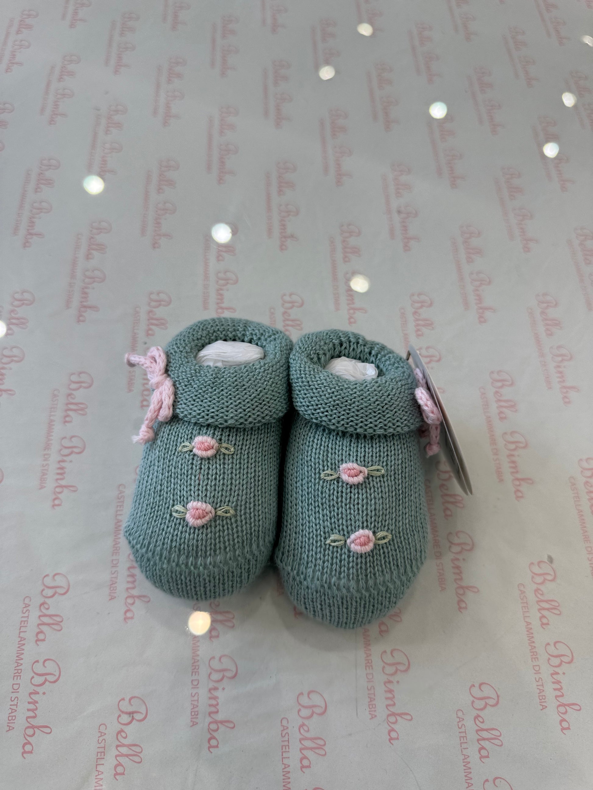 Scarpine Baby Lord è la scelta perfetta per avvolgere i piedini della tua piccola sin dal primo giorno di vita. Con le delicate roselline rosa e il filo verde , queste scarpine non solo manterranno i piedini al caldo, ma anche aggiungeranno un tocco di dolcezza al suo outfit.