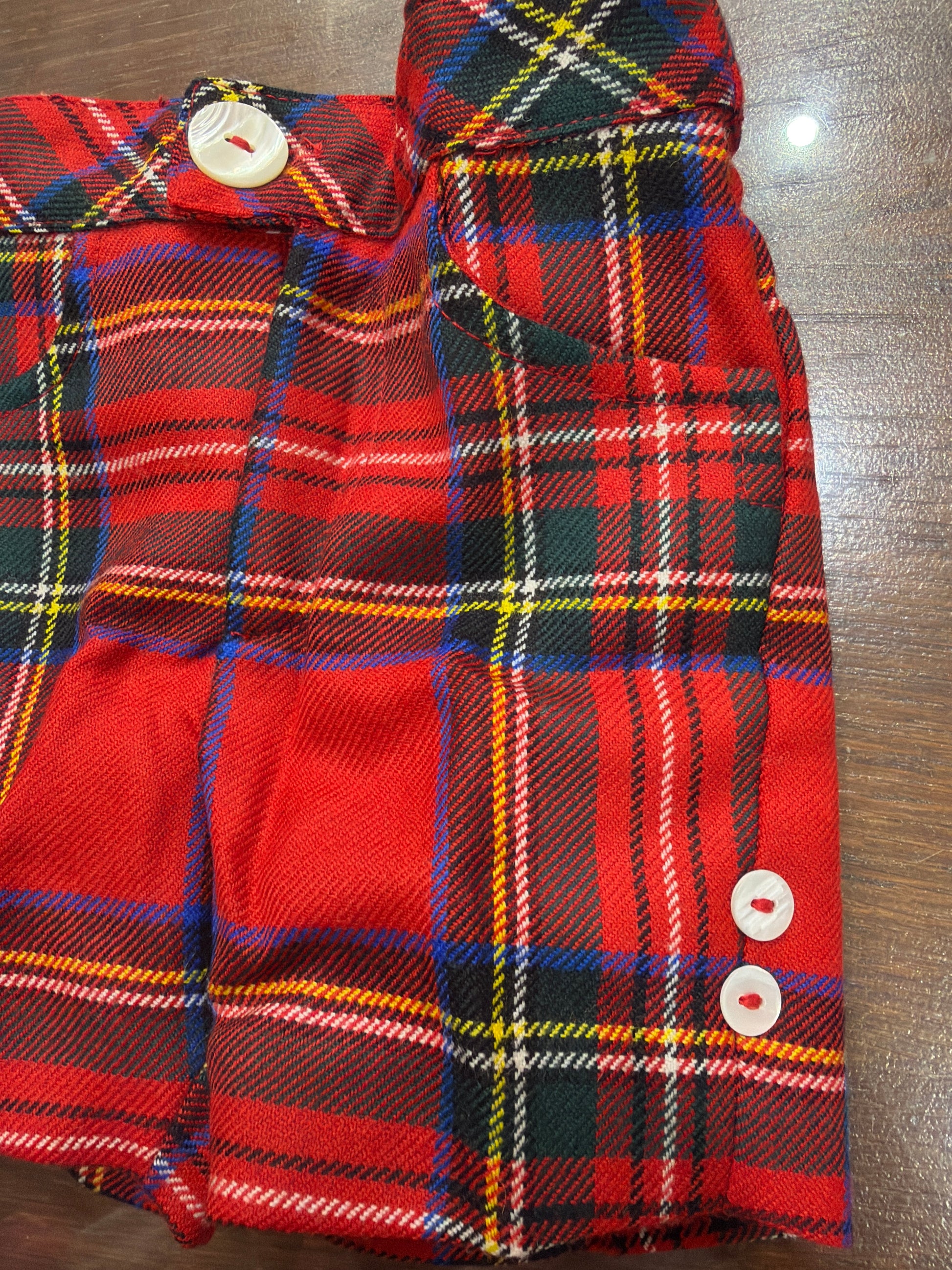 Pantaloncini in tessuto tartan con tasche laterali nascoste, un dettaglio decorativo di bottoni davanti e chiusure a bottone funzionali ai lati. Un pezzo raffinato che combina un motivo classico con elementi di design pratici, perfetto per un look curato e quotidiano.