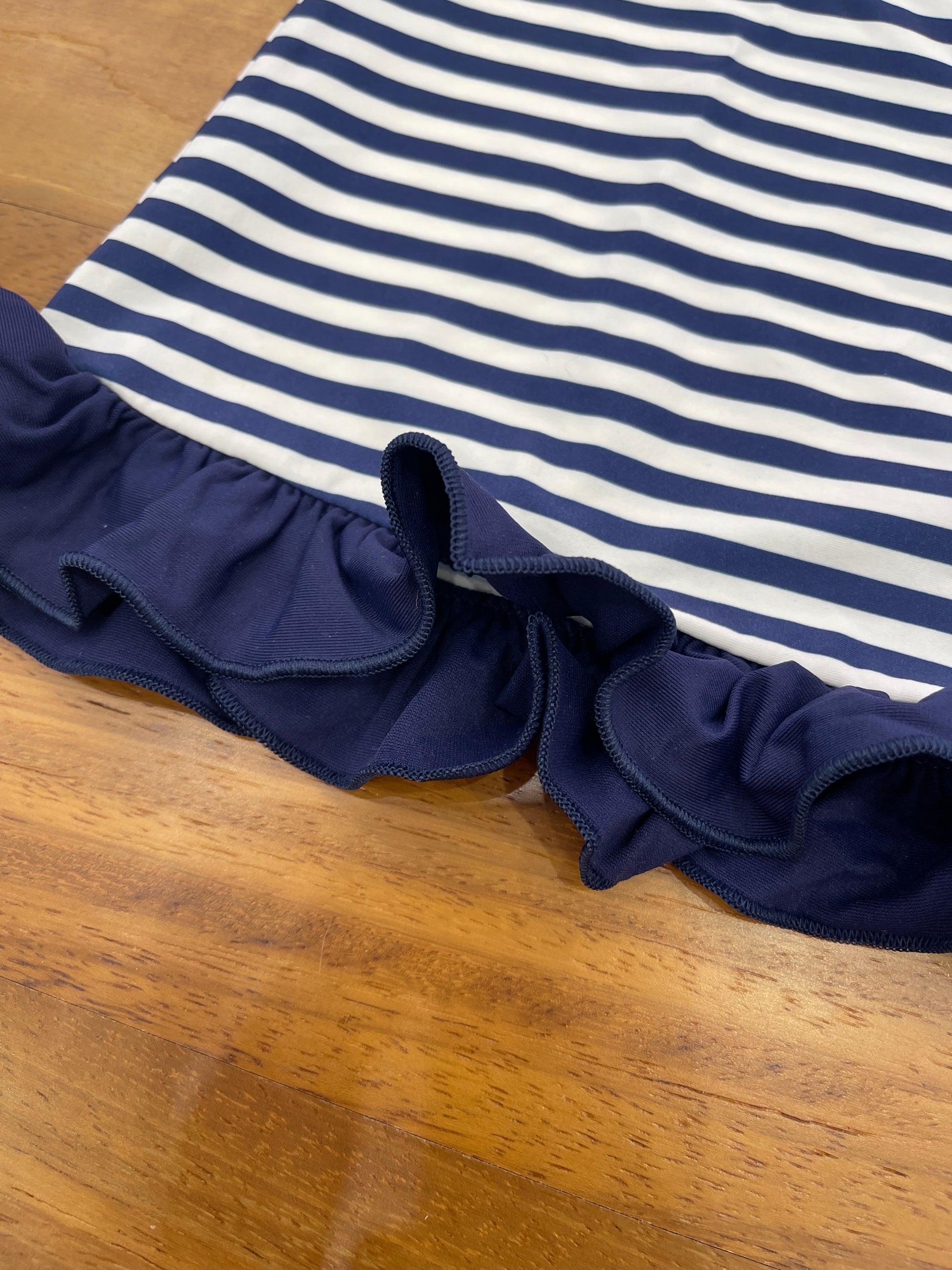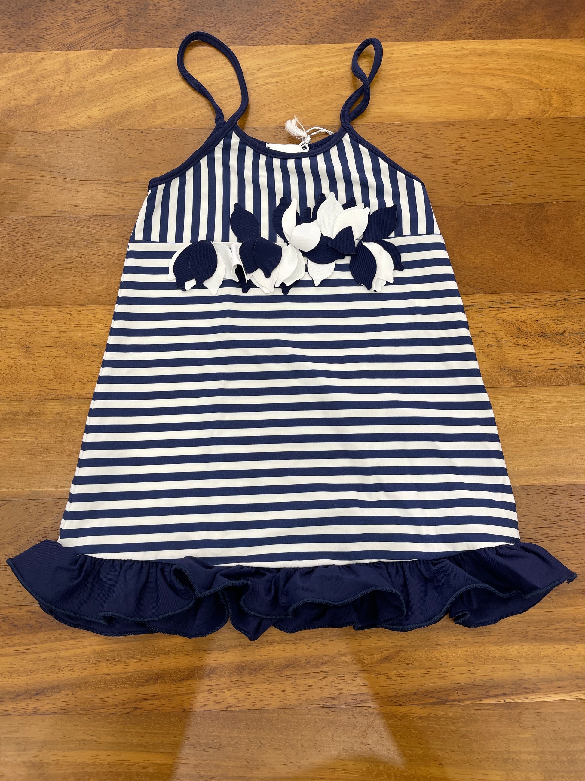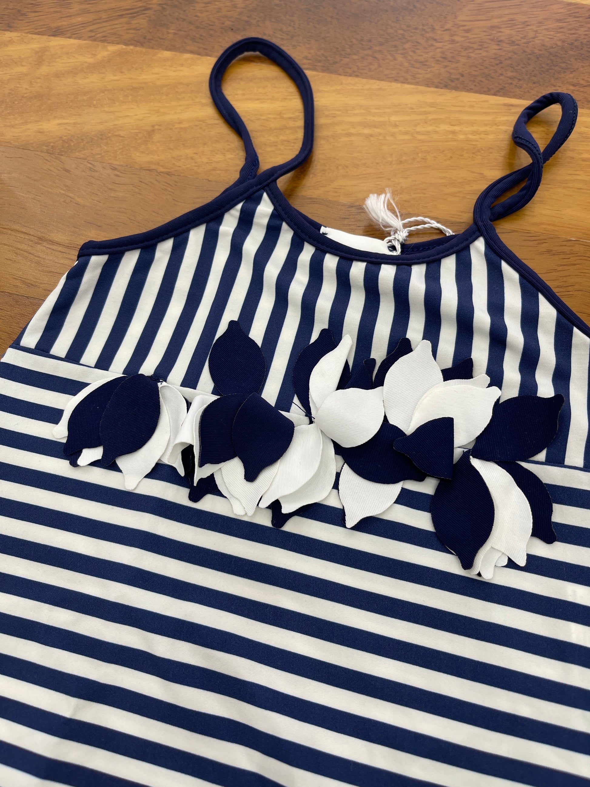 Questo copricostume a spallina è il perfetto accessorio per una giornata al mare. Con una fantasia a righe e un riccio finale con dei petali sul petto, si adatta perfettamente al tuo costume e aggiunge un tocco di eleganza. Fatto con materiali di alta qualità, questo copricostume ti farà sentire comoda e alla moda.