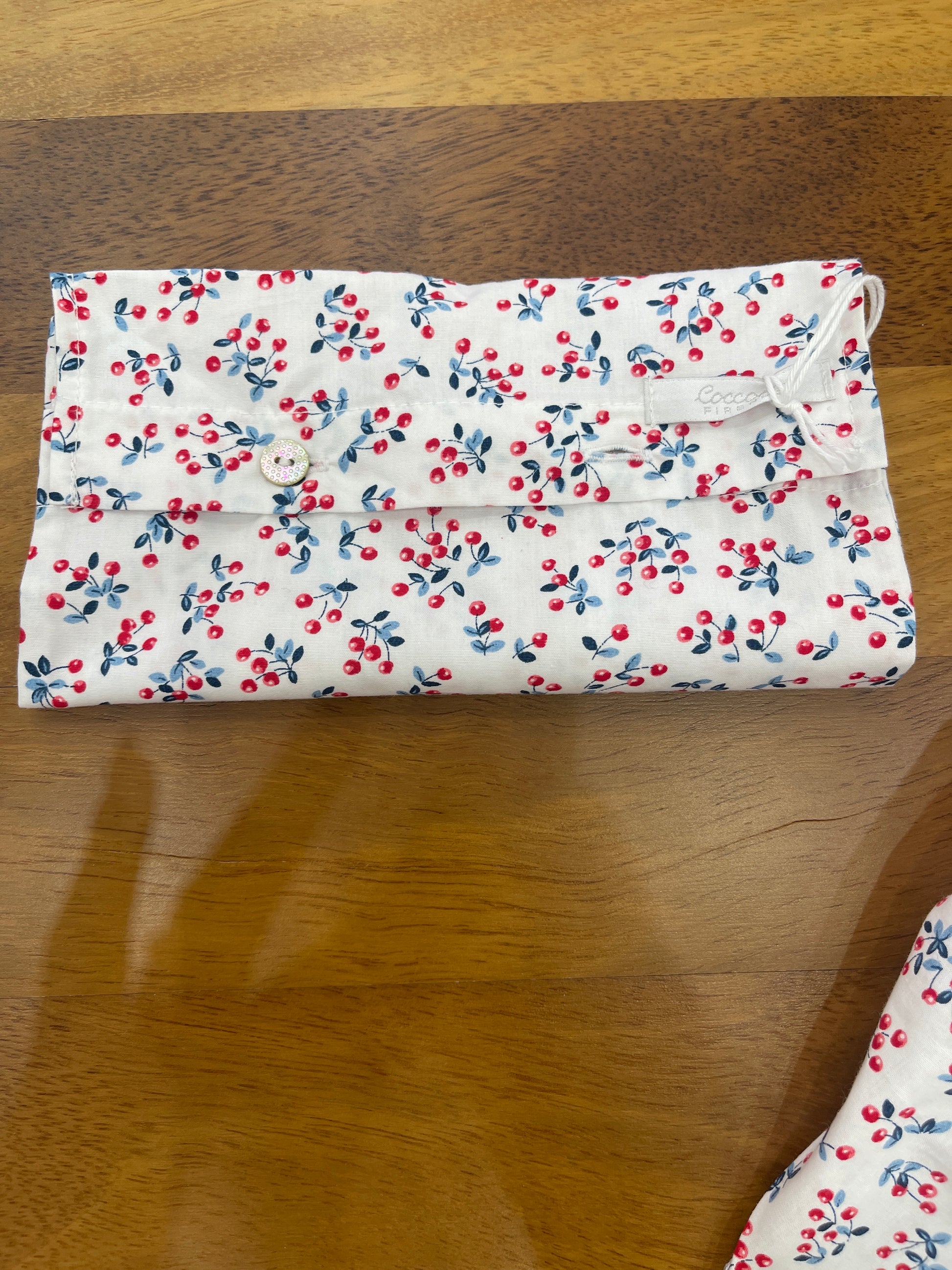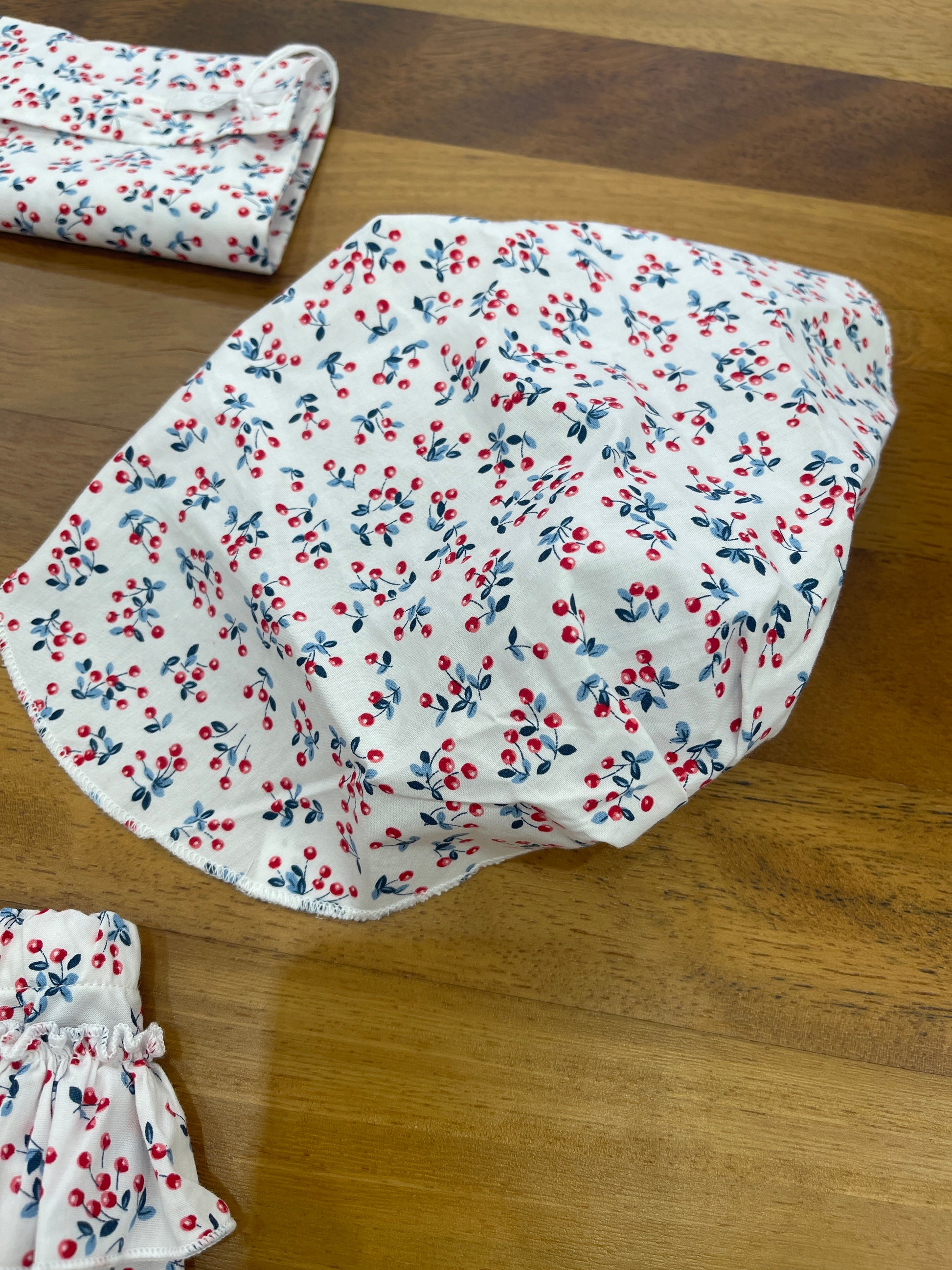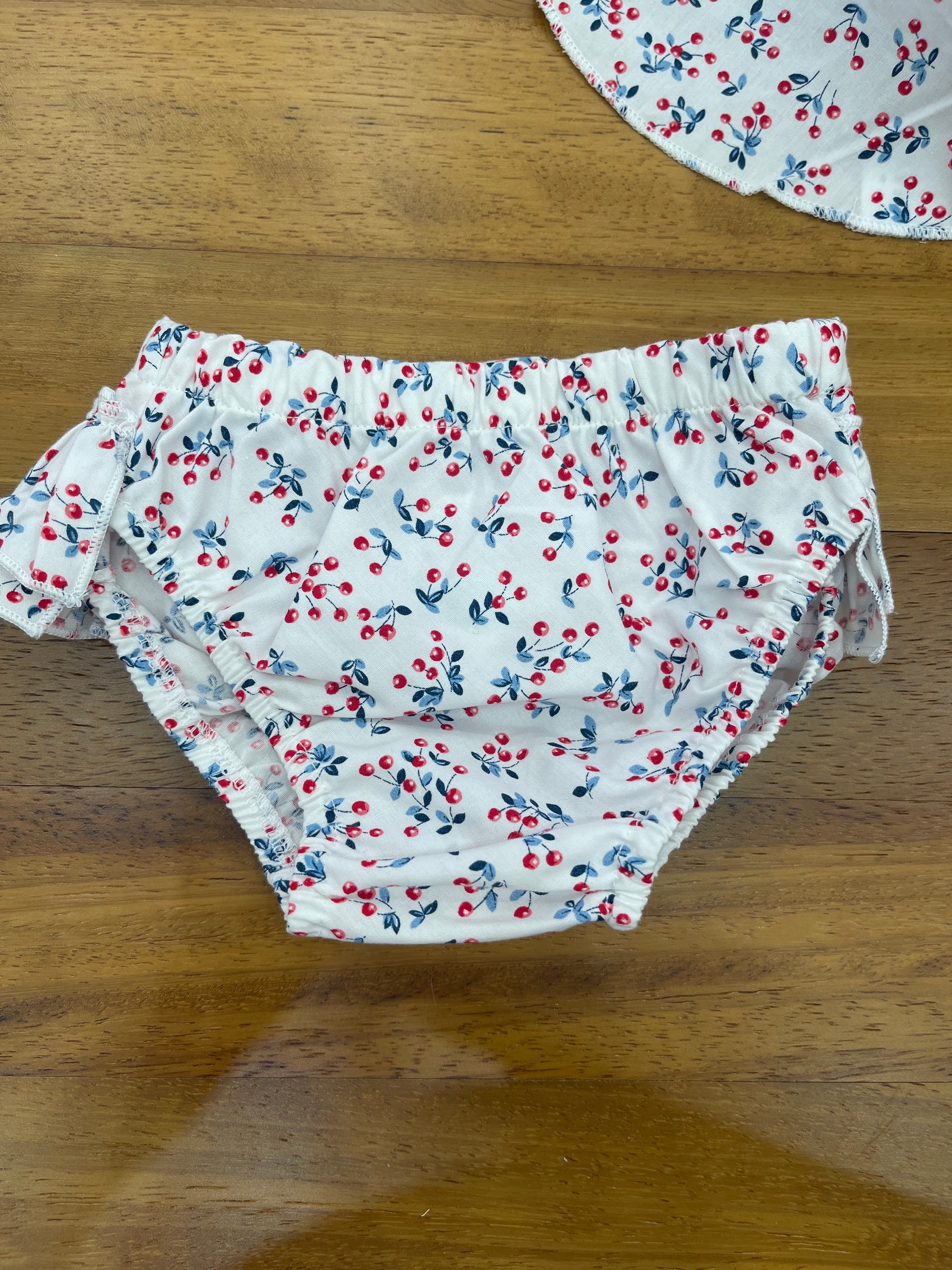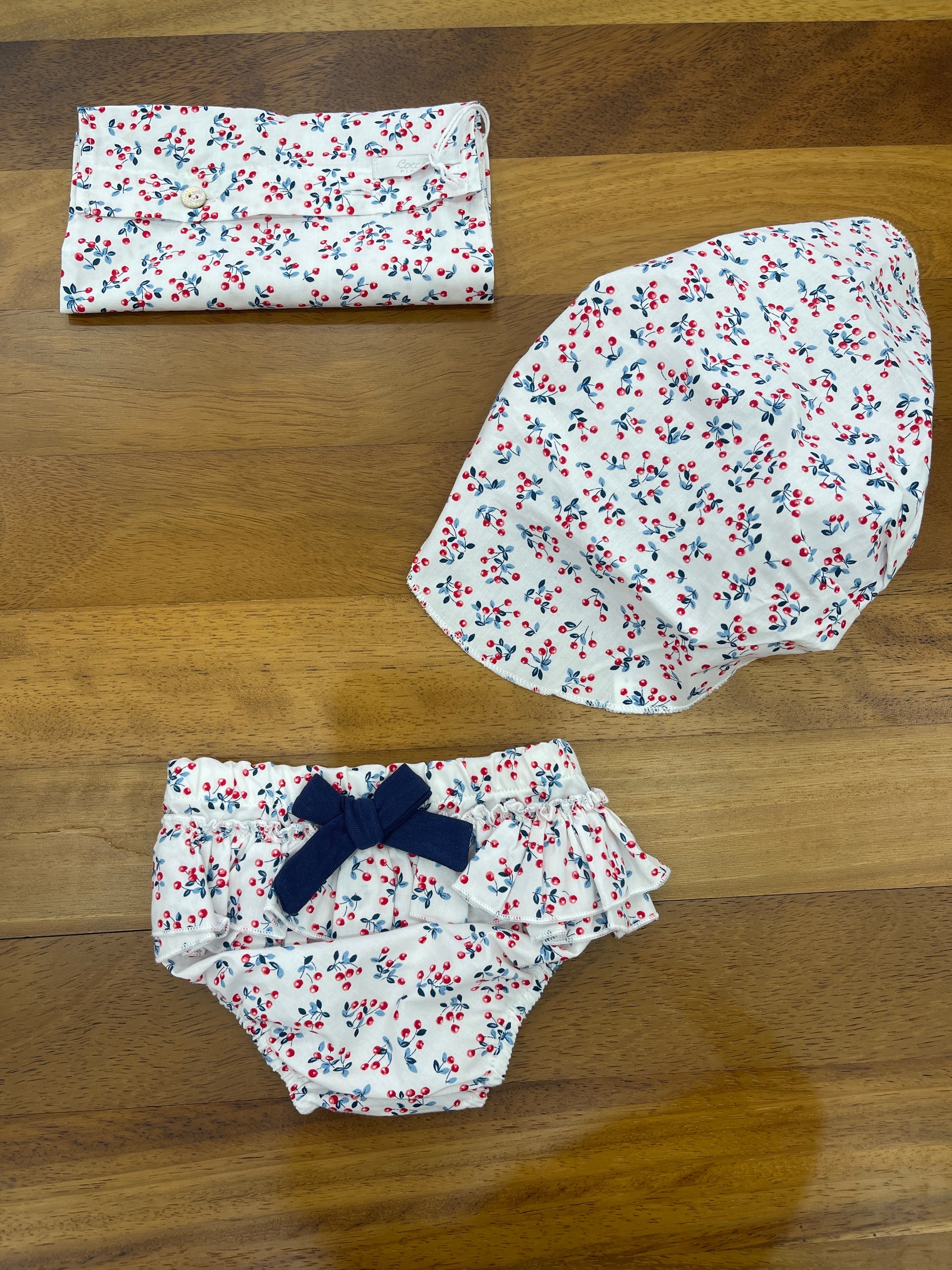 Il costume coccodè è composto da una mutandina con fantasie di ciliegie e con una bandana coordinata, il tutto racchiuso in un comodo sacchetto. Questo costume è ideale per rendere il bagnetto del tuo bambino divertente e confortevole.