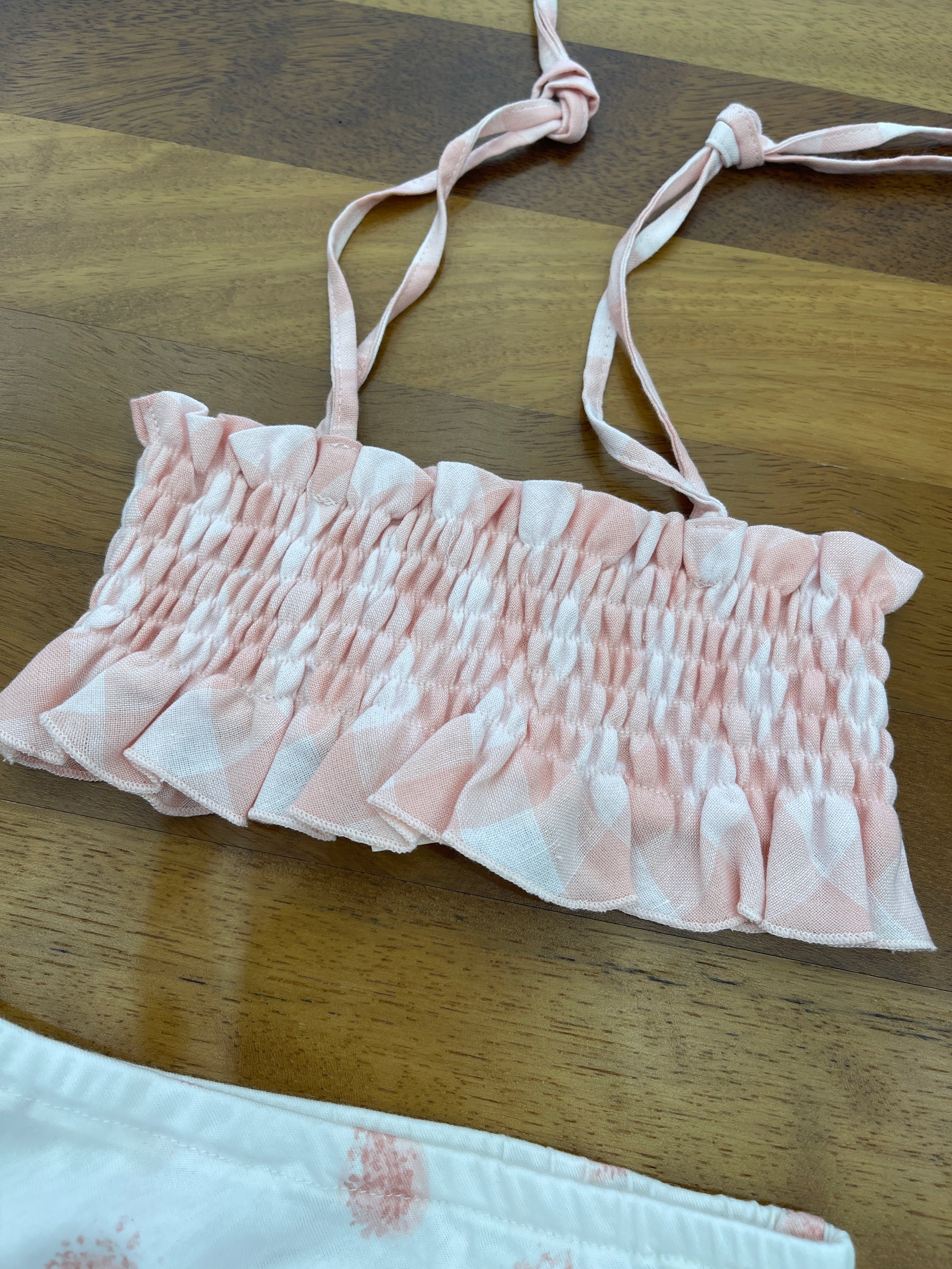 Questo costume coccodè in cotone due pezzi è perfetto per la spiaggia o la piscina. La mutandina a fantasia è sia carina che comoda, mentre il sopra con un lavoro di arricciatura a fascia garantisce una vestibilità perfetta. Approfitta del suo stile e comfort per goderti al massimo la tua estate!