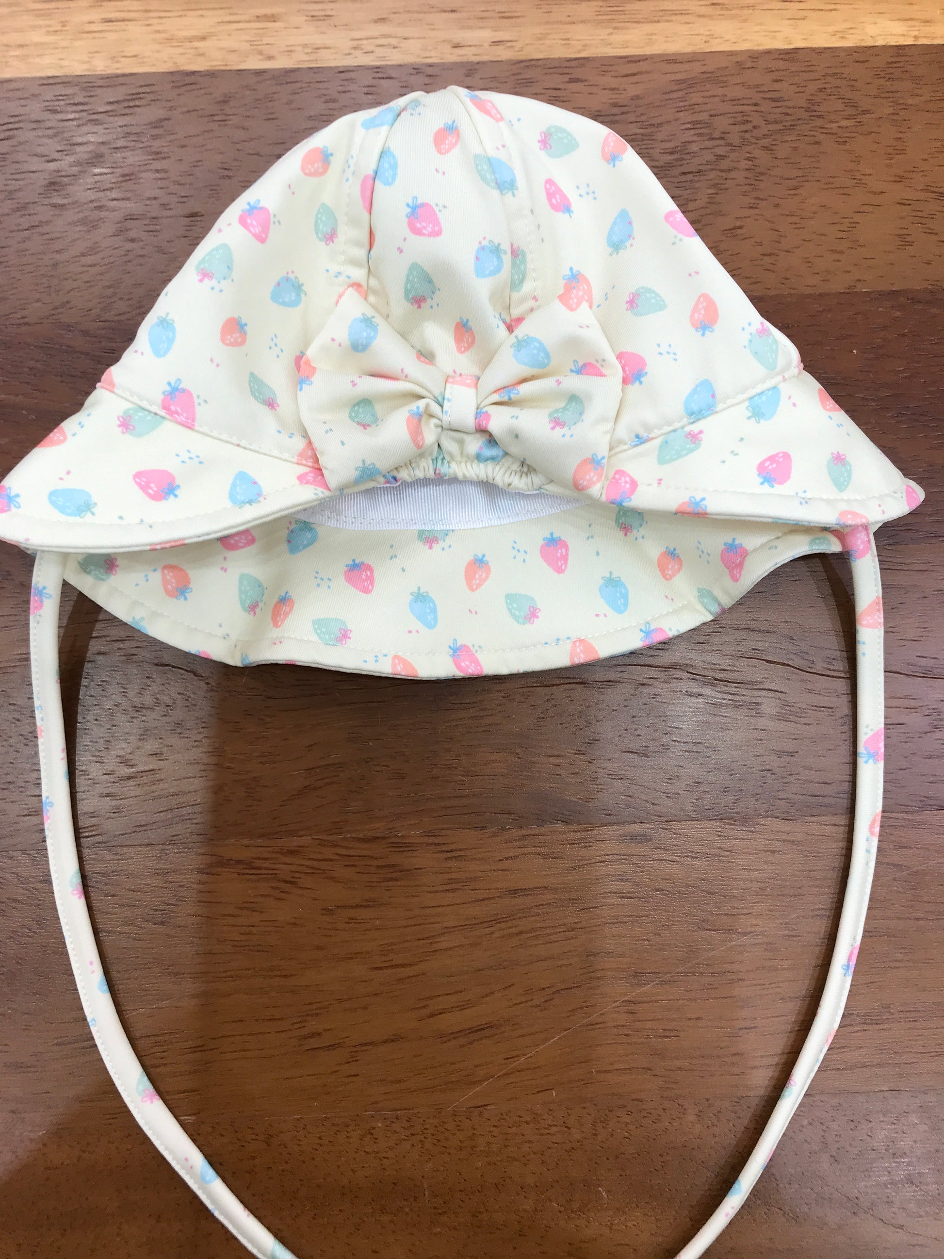 Cappello Paz Rodriguez da mare giallo con fragoline con laccio sotto collo con fiocco sul retro