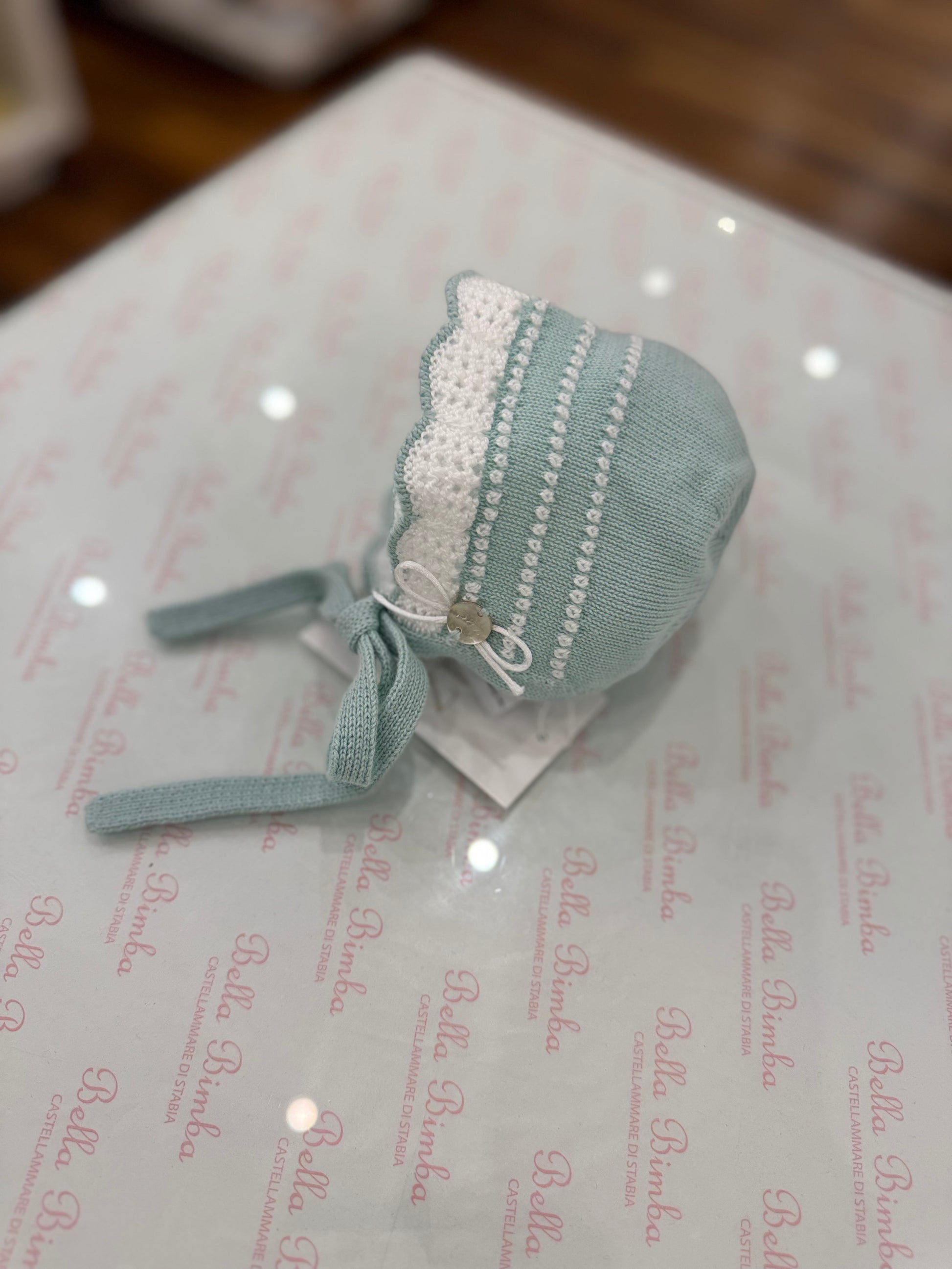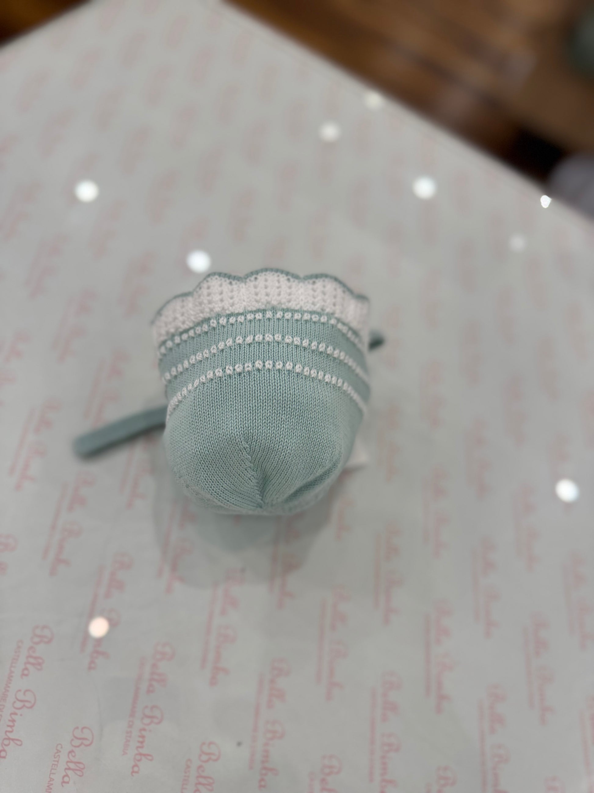"La cuffia Paz Rodriguez, in filo di cotone verde con rouche bianca, è il tocco finale perfetto per l'abbigliamento della tua bambina. Aggiungi un tocco di cura ed eleganza ai suoi outfit grazie a questa cuffia di alta qualità."