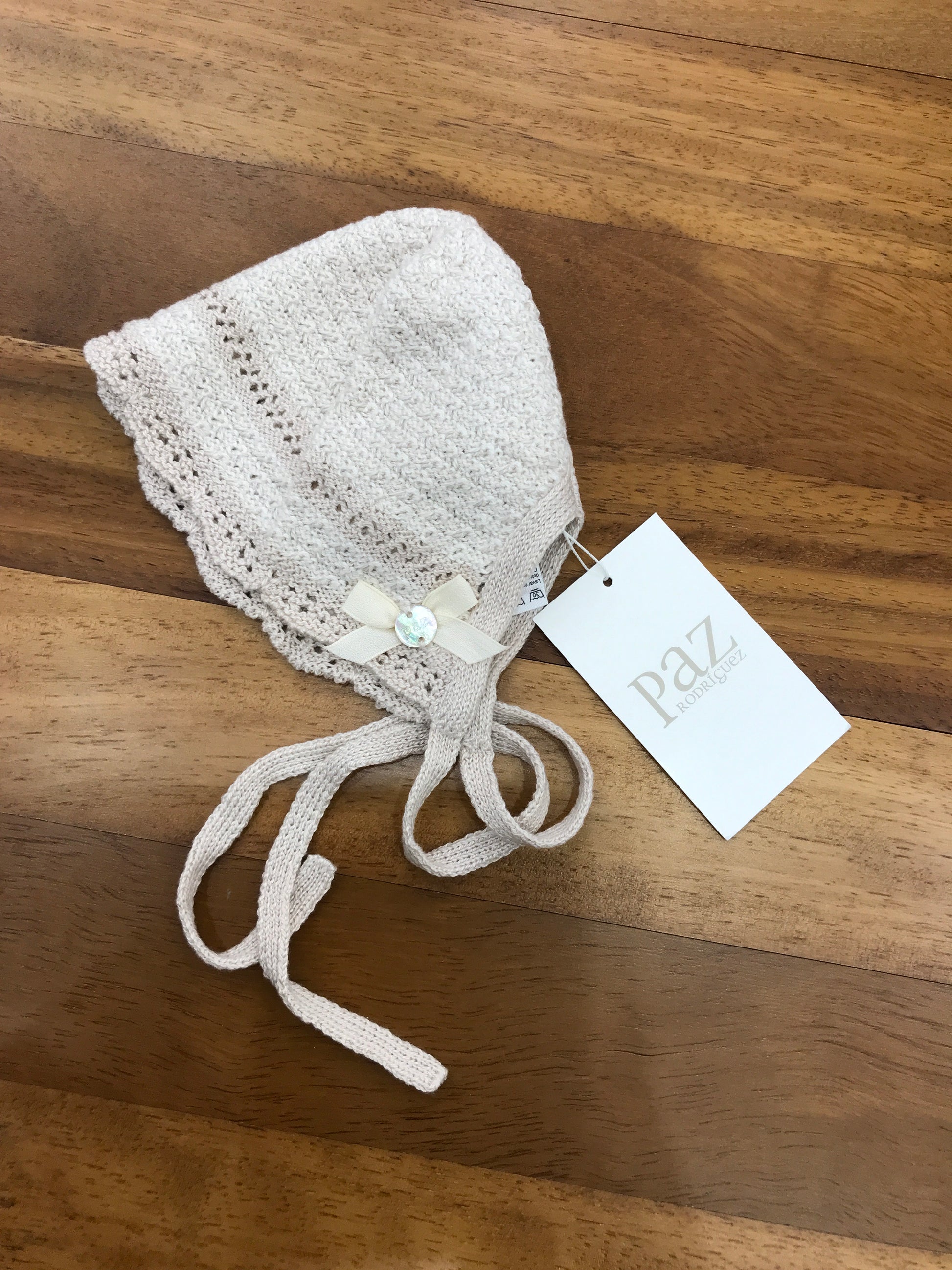 La cuffietta Paz Rodriguez, realizzata in lana pregiata, è arricchita da delicati ricami e presenta una chiusura a fiocchetto per una vestibilità regolabile e confortevole.