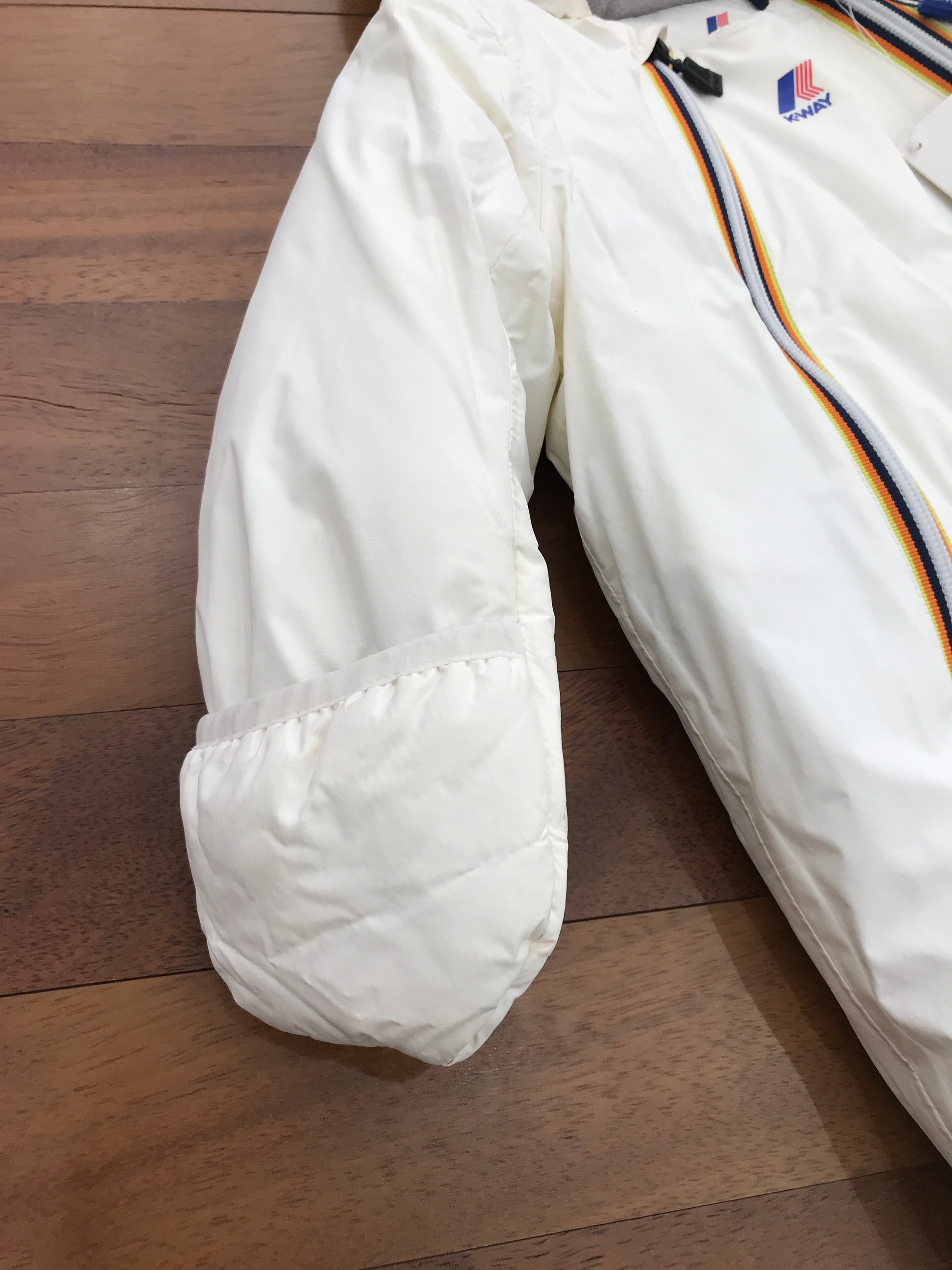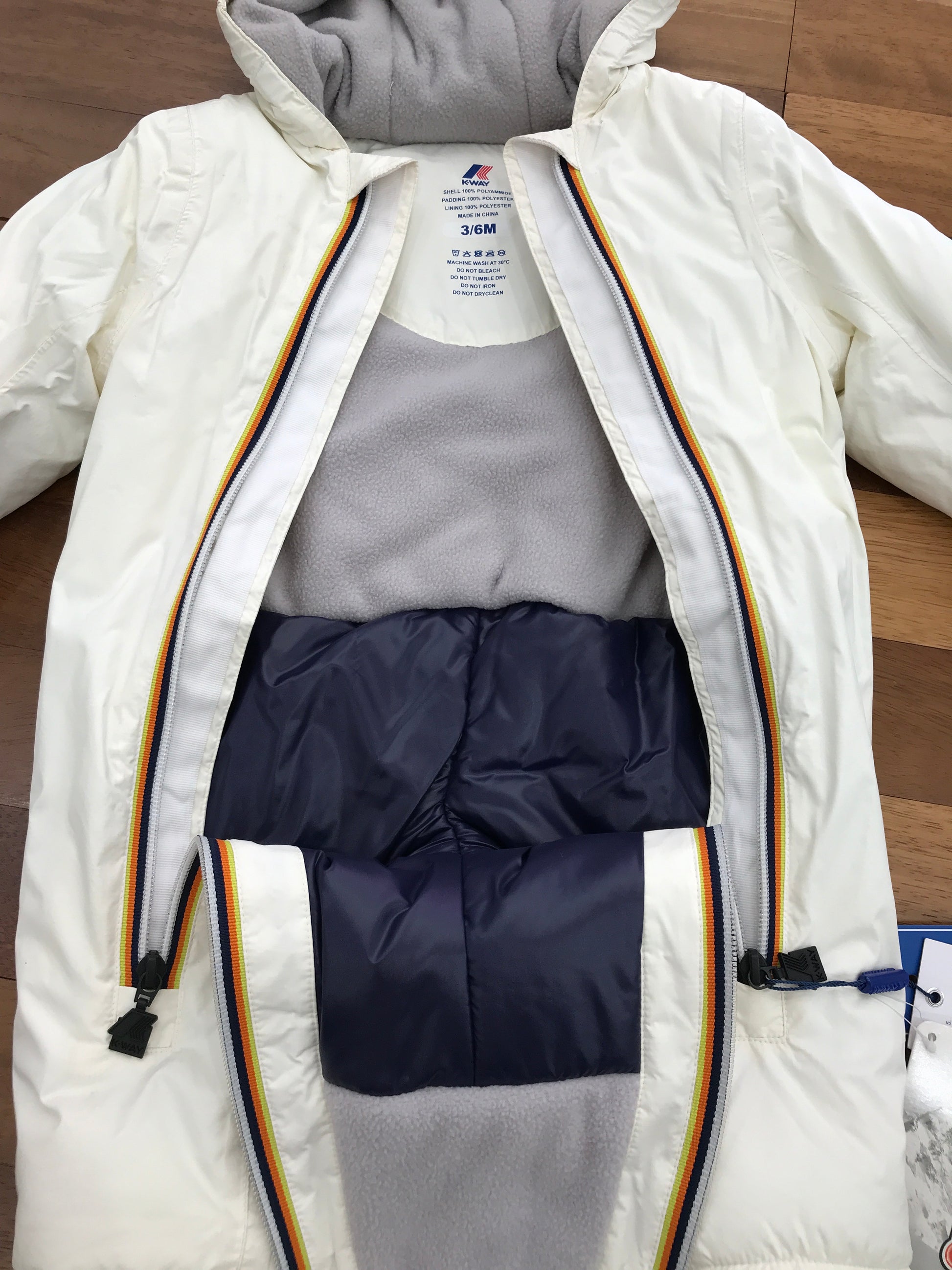 Giacca impermeabile bianca con fodera in pile grigio, dotata di cappuccio integrato e piedini removibili. Le maniche trasformabili si convertono facilmente in guantini, offrendo versatilità e protezione completa nelle giornate fredde e umide. Ideale per bambini che necessitano di praticità e comfort durante le attività all'aperto.