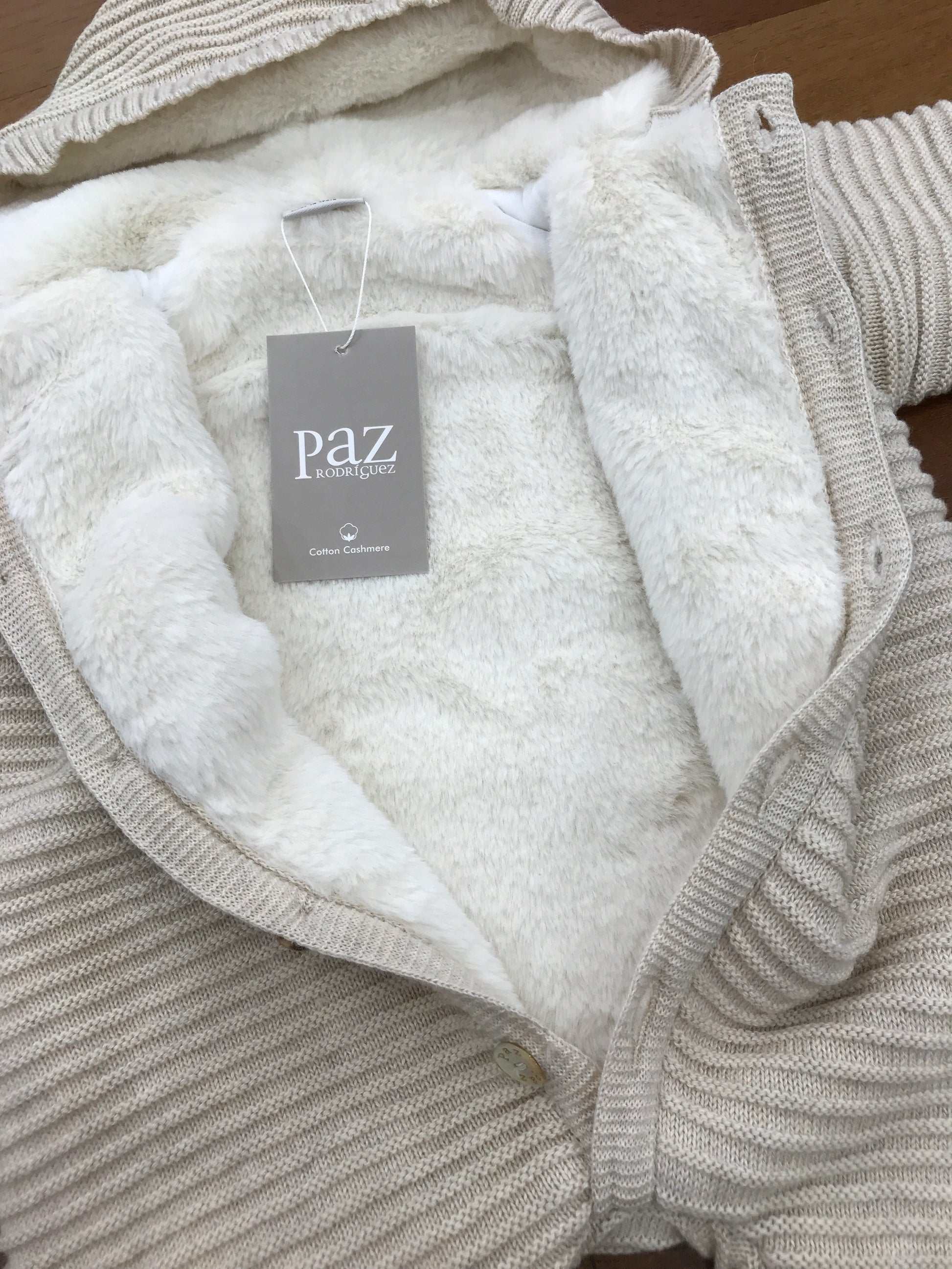 Questo eskimo in lana è completamente foderato in pelliccia e presenta una chiusura frontale con bottoni, oltre a un cappuccio per una protezione extra.