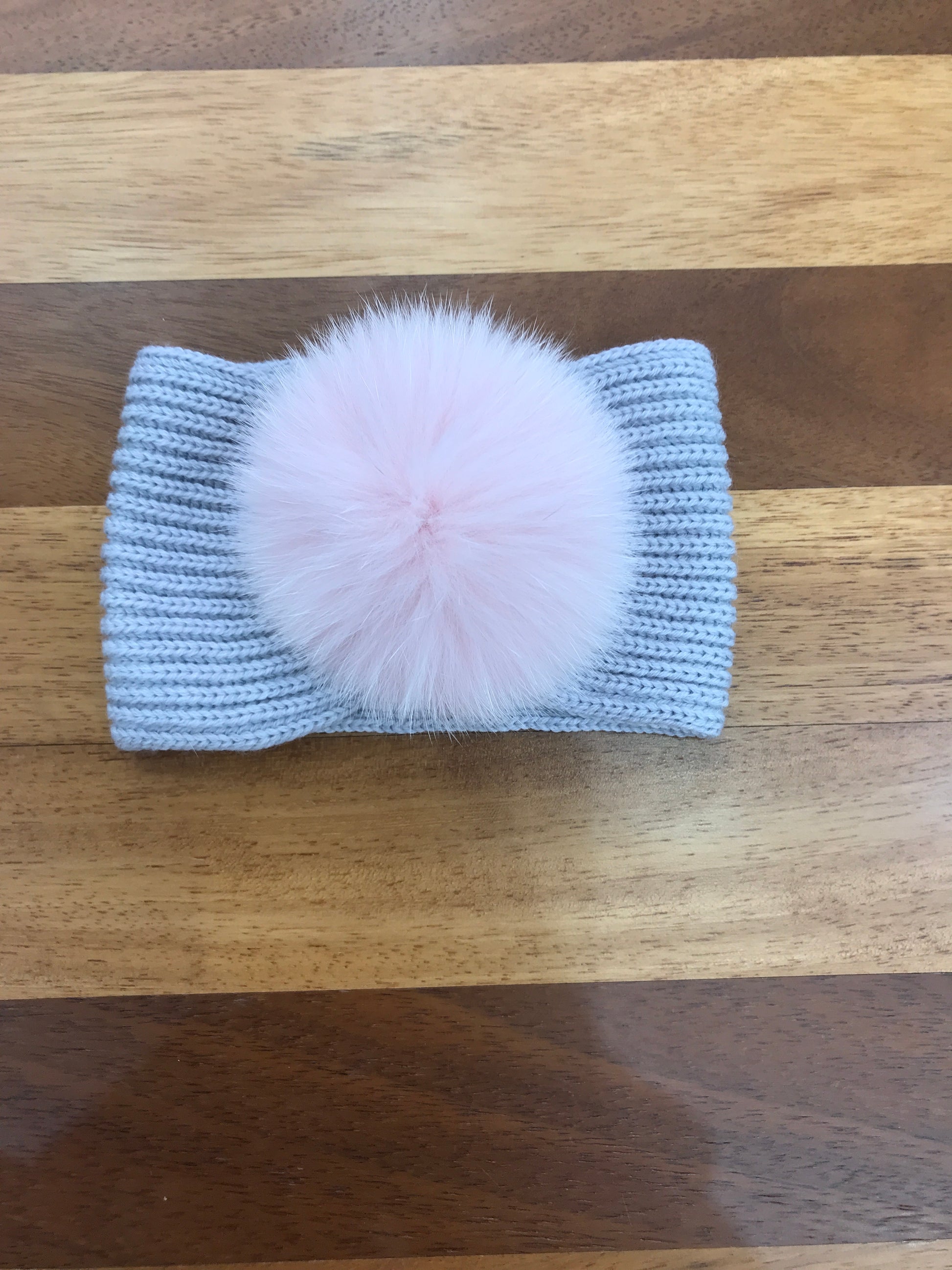 Fascia realizzata in pregiata lana con base grigia, impreziosita da un delicato pon pon rosa. Un accessorio versatile e raffinato per completare lo stile del tuo bambino con eleganza e comfort.