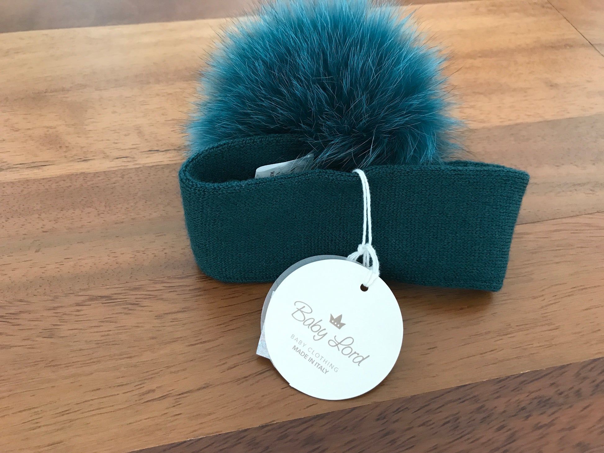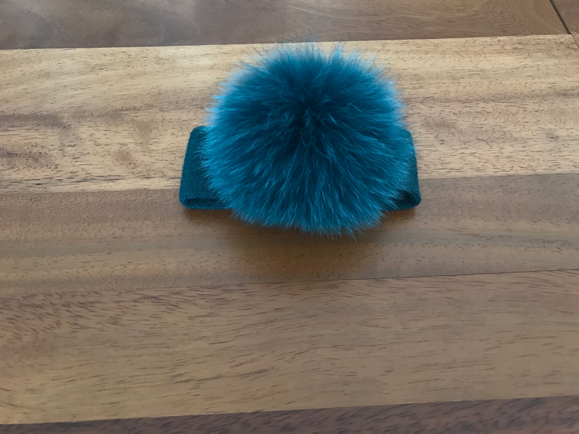 Fascia per capelli caratterizzata da un pon pon peloso, posizionato in modo centrale e frontale, con pelo più lungo per un effetto morbido e voluminoso.