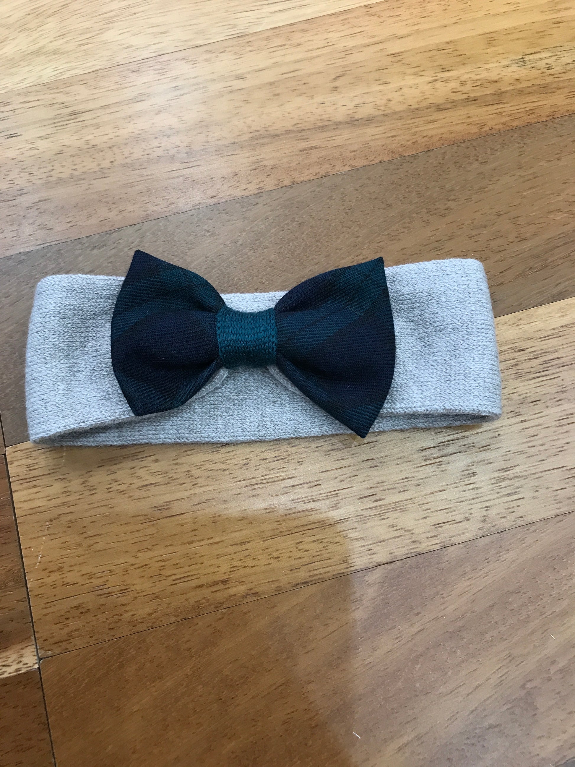 Fascia in lana color tortora arricchita da un fiocco verde scozzese.