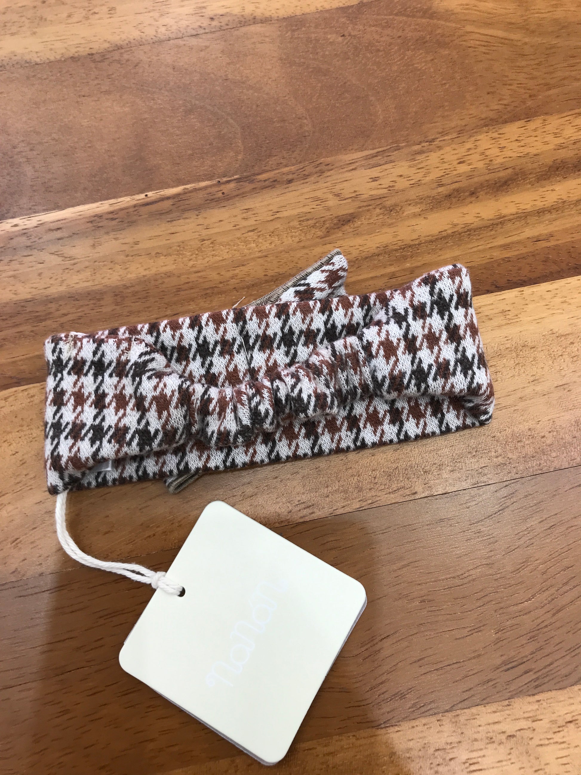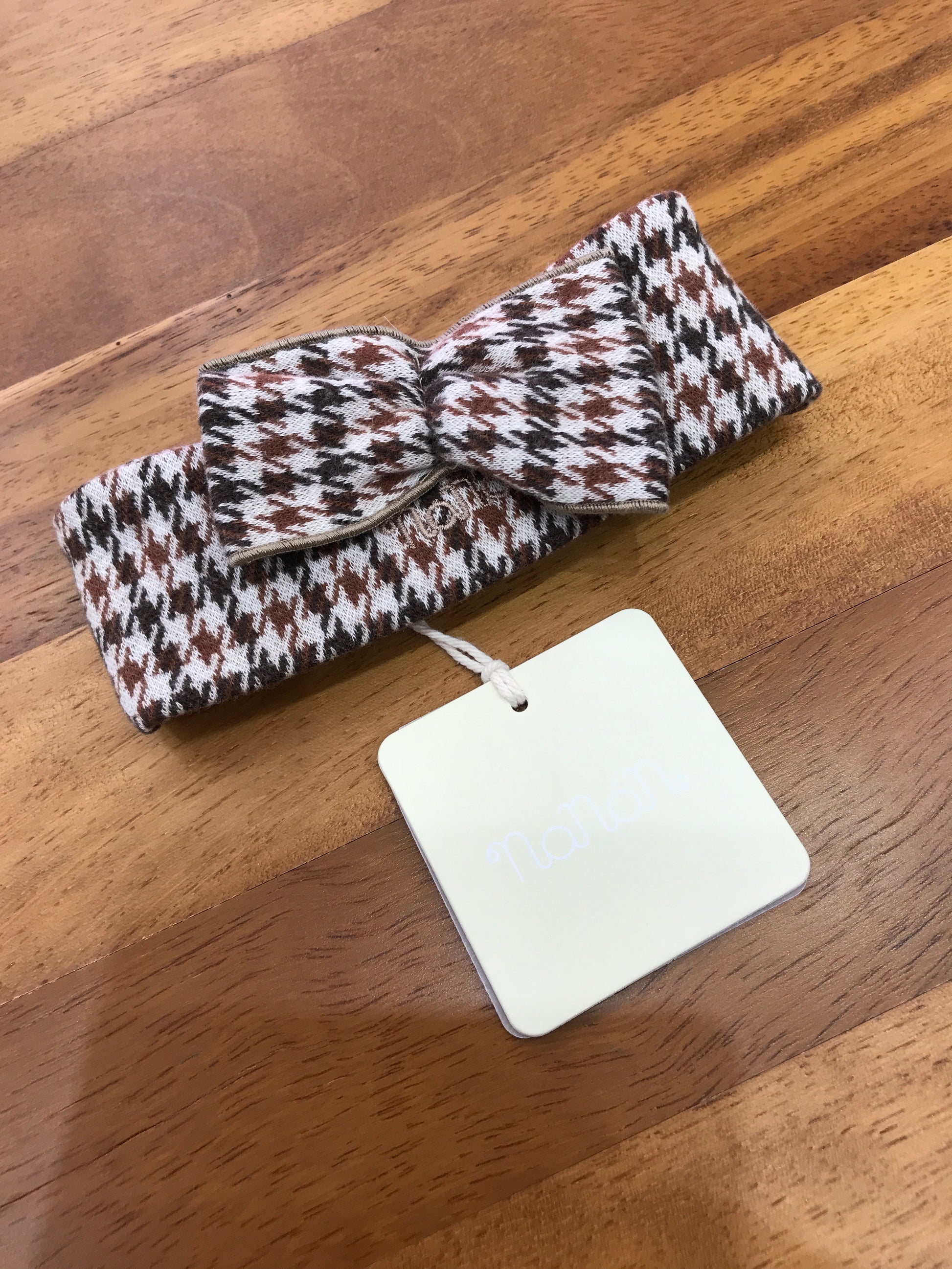 Questa fascia per capelli presenta un motivo a quadretti ed è impreziosita da un elegante fiocco, combinando stile e raffinatezza in un accessorio unico.