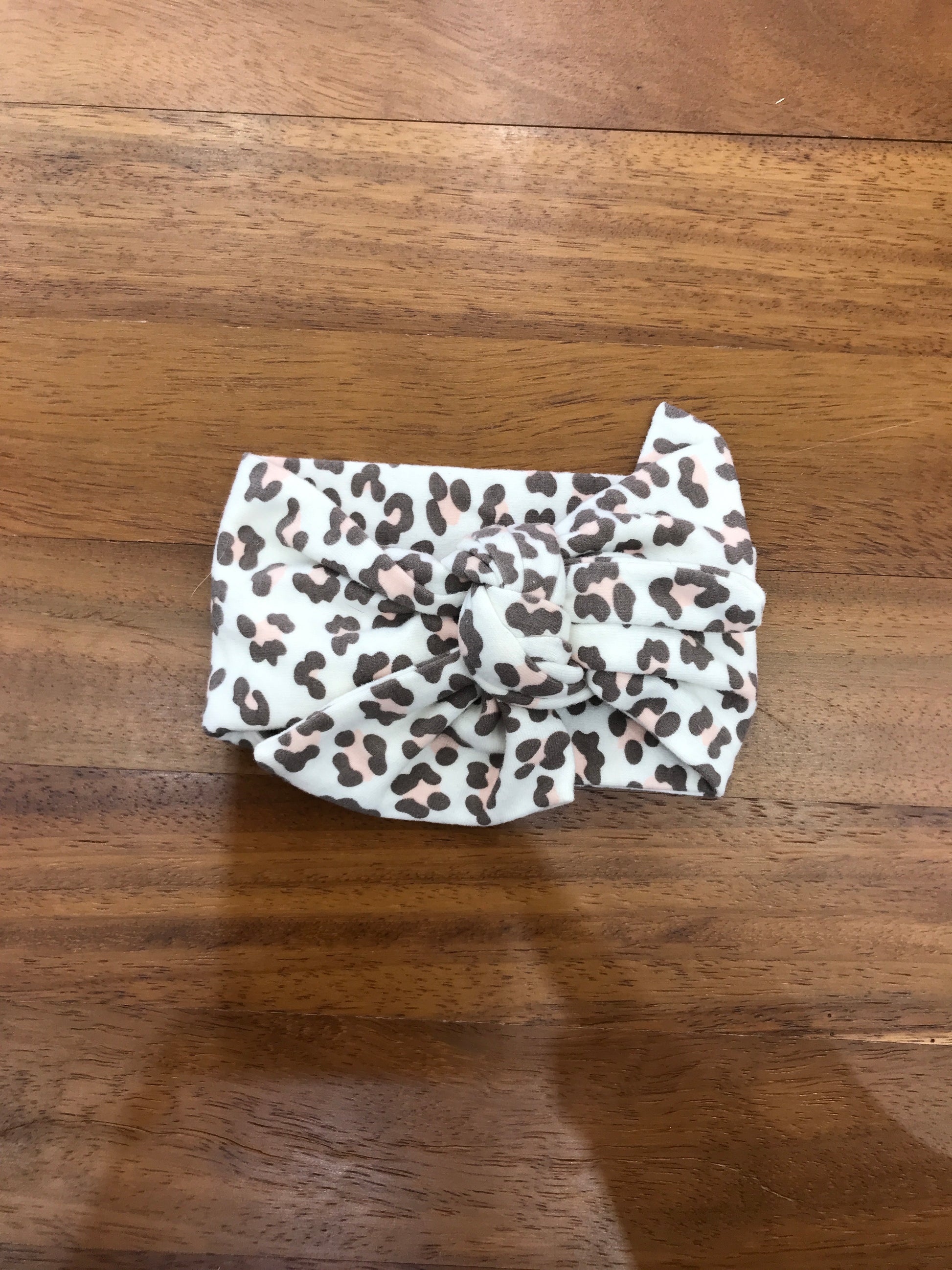 Questa fascia è realizzata in caldo cotone e presenta un motivo maculato raffinato. Il dettaglio distintivo è il nodino posizionato al centro sul davanti, che aggiunge un tocco di stile elegante e sofisticato. Ideale per chi cerca un accessorio confortevole e alla moda.