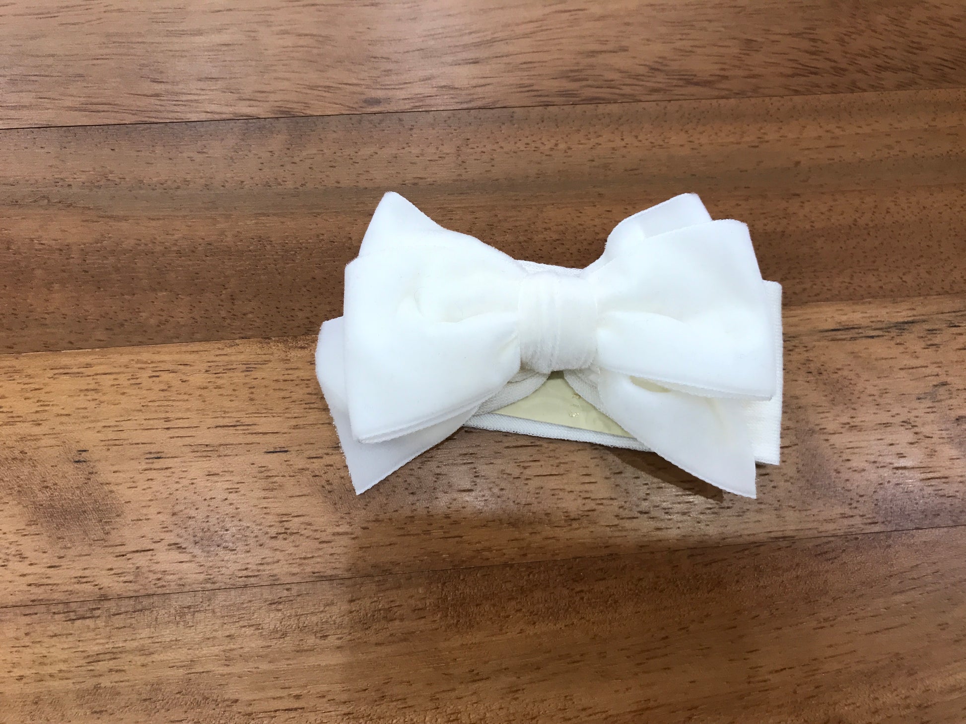 Realizzata in caldo cotone tinta panna, questa fascia si distingue per il suo elegante fiocco in velluto applicato centralmente sul davanti, aggiungendo un tocco raffinato e sofisticato al design.