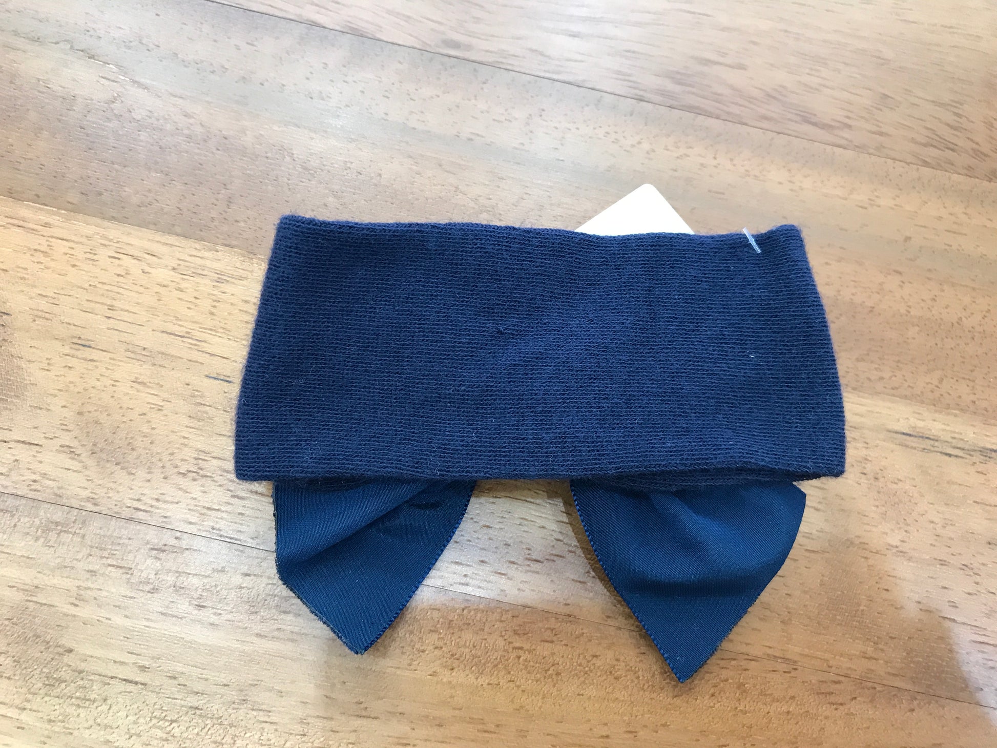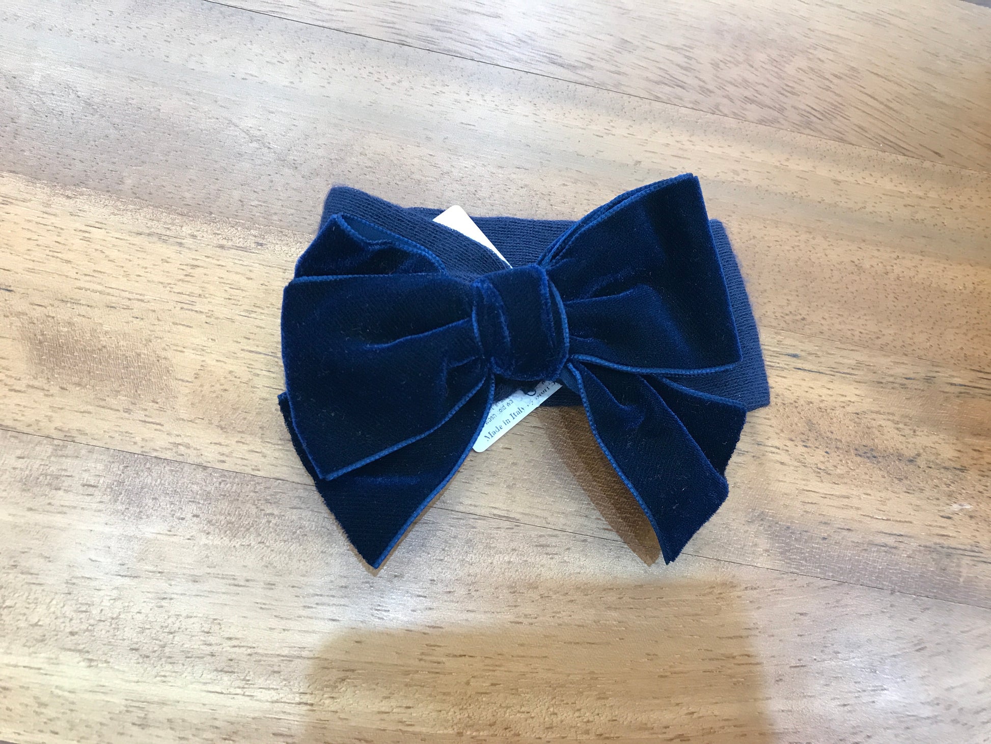 Questa fascia, realizzata in caldo cotone di un profondo blu scuro, presenta al centro frontale un raffinato fiocco in velluto, aggiungendo un tocco di eleganza e comfort a qualsiasi outfit.
