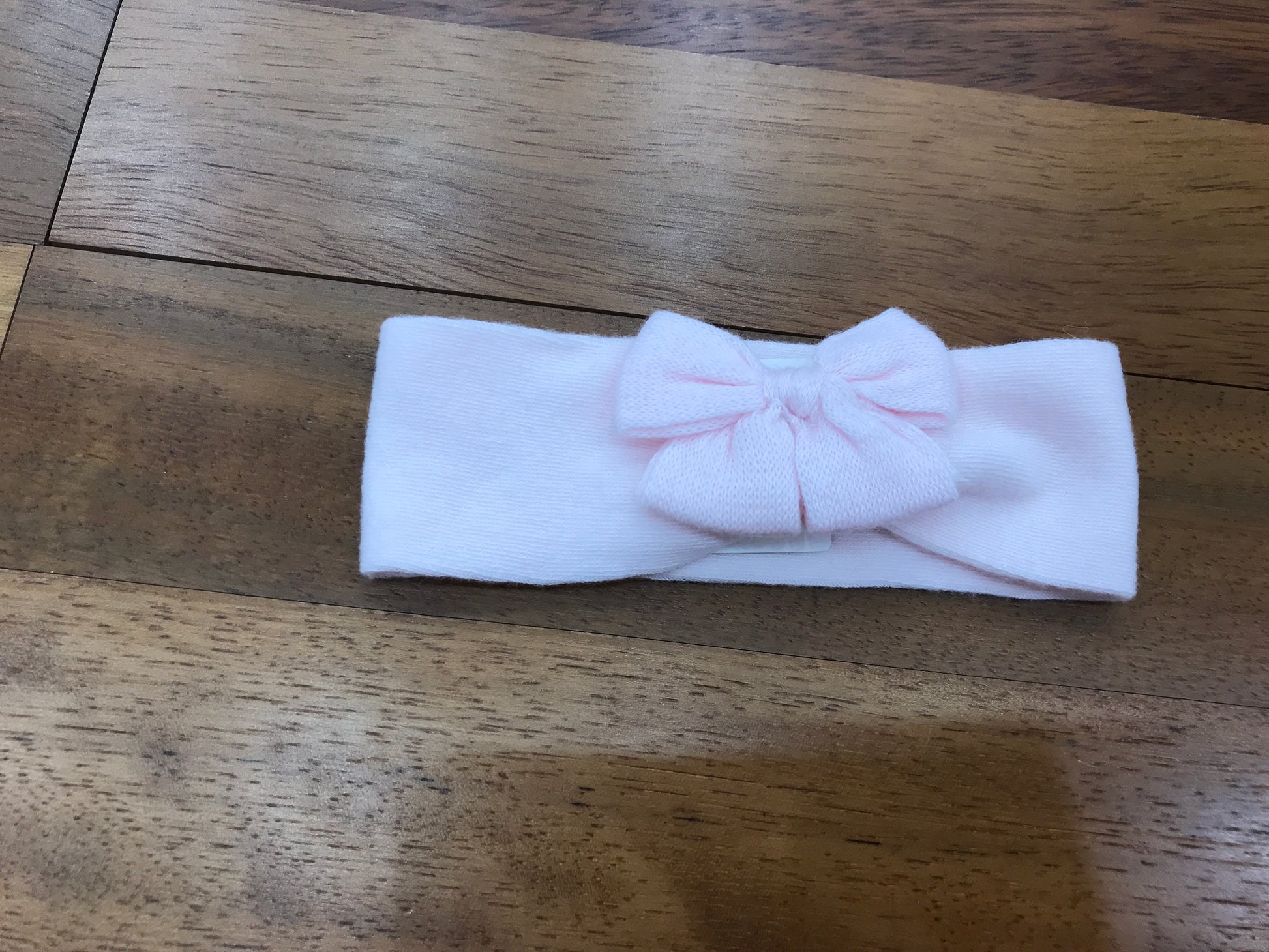 Questa fascia è realizzata in cotone caldo e confortevole, caratterizzata da una delicata tonalità rosa. Presenta un'applicazione posizionata centralmente sulla parte anteriore, anch'essa in tinta rosa, che aggiunge un dettaglio elegante e coordinato al design complessivo.