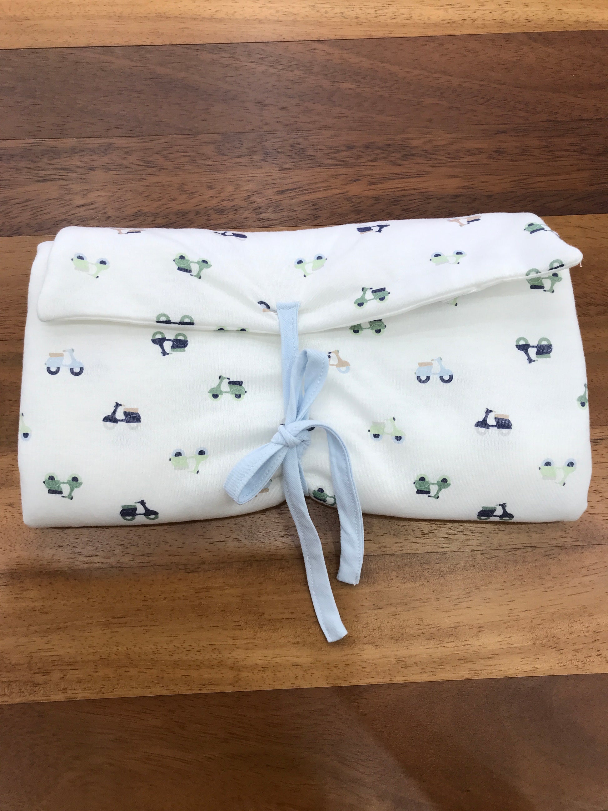 Il fasciatoio presenta una base decorata con vespe di colore celeste, blu, verde che creano un design raffinato e piacevole. La chiusura è caratterizzata da un elegante fiocchetto celeste, che aggiunge un tocco di colore e praticità. La parte interna del fasciatoio è rimovibile grazie a piccoli bottoncini, permettendo così una pulizia più semplice e accurata, garantendo un ambiente igienico e sicuro per il cambio del bambino. Questa funzionalità facilita il mantenimento della pulizia quotidiana in modo efficiente.