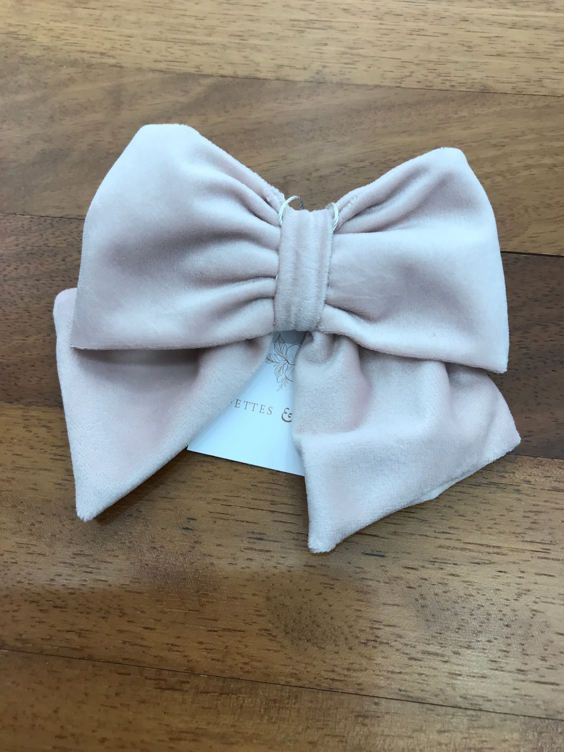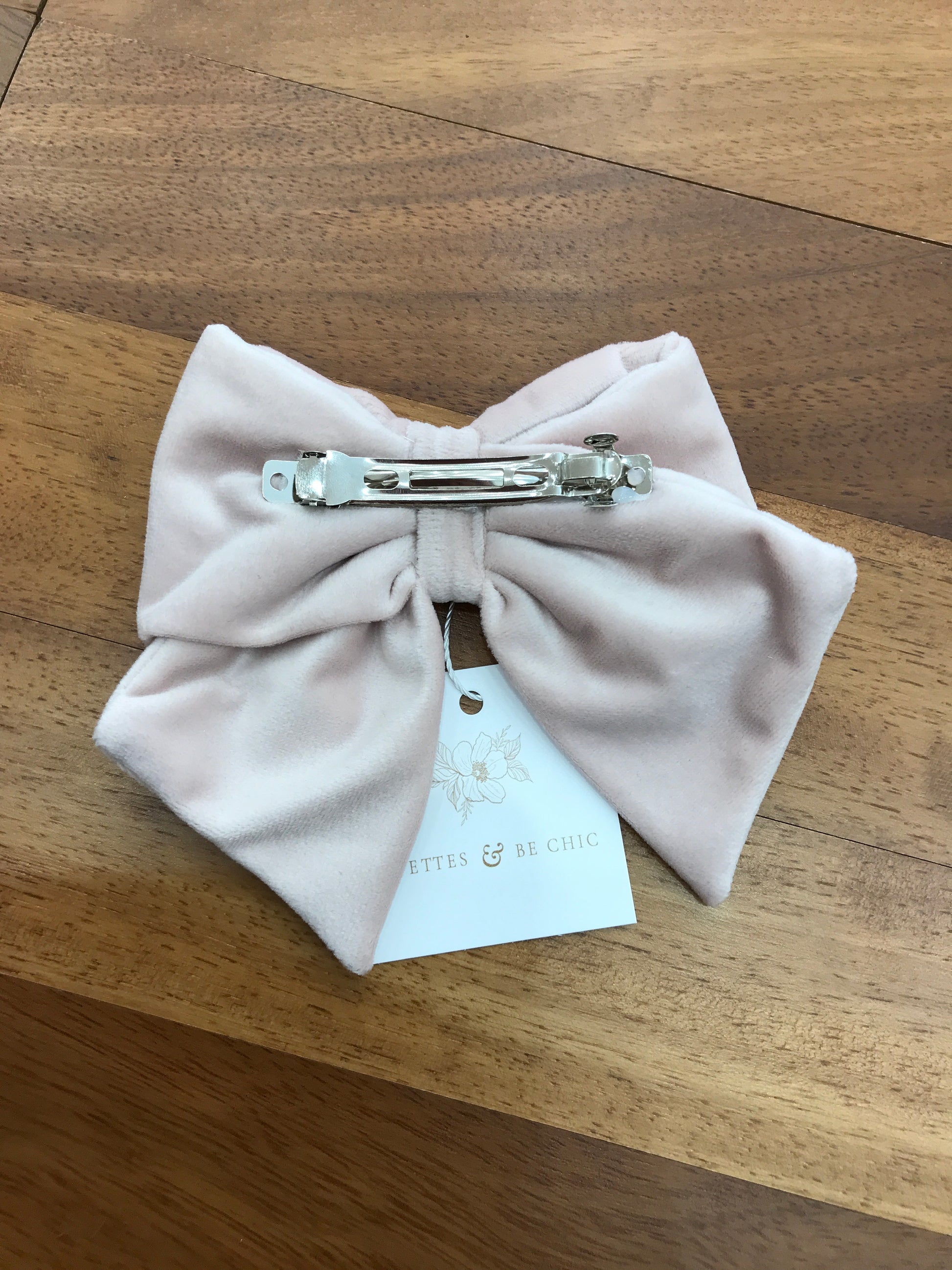 Fermaglio realizzato in velluto rosa cipria di alta qualità.