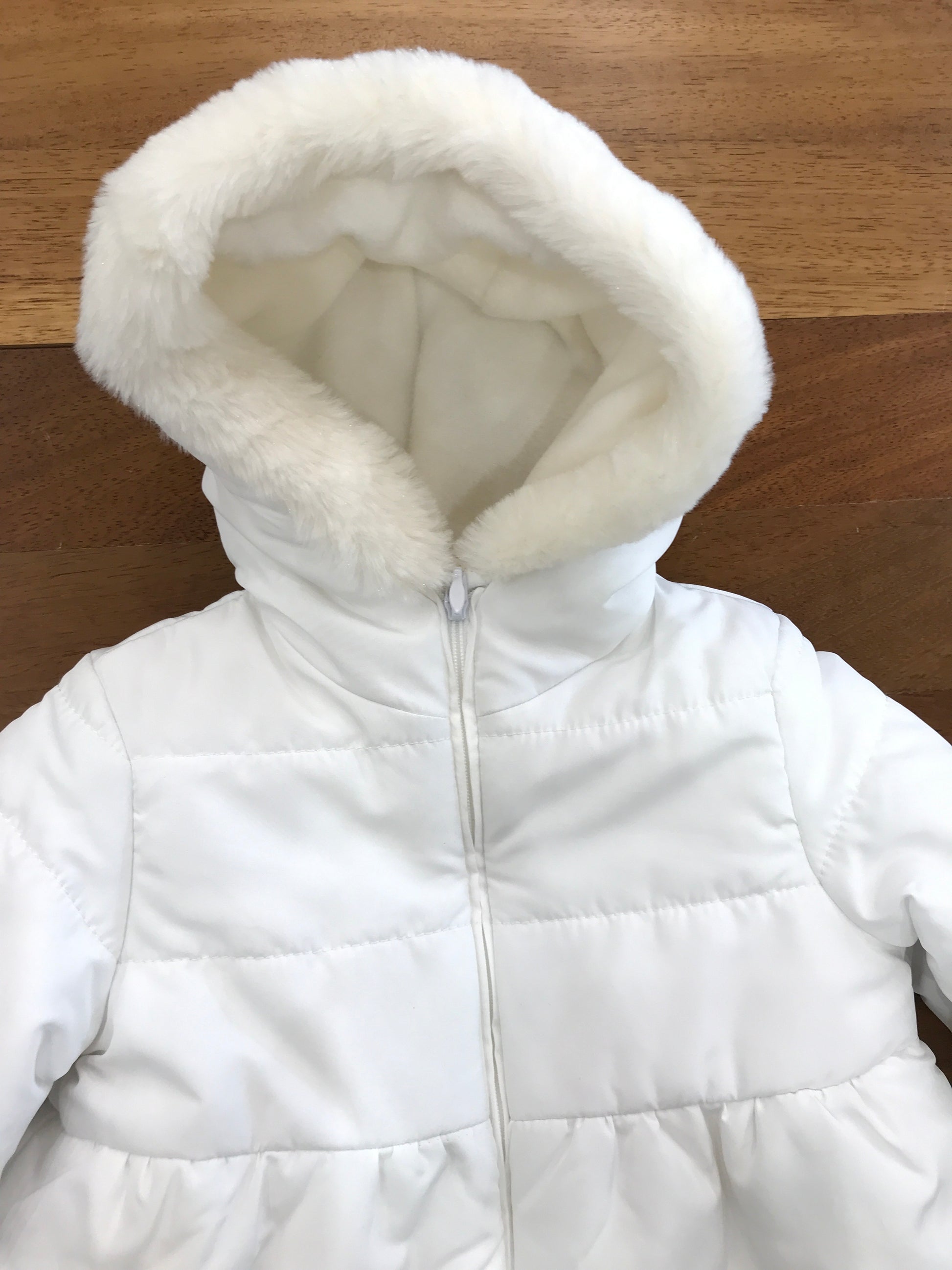 Giacchetta in morbido bambù per bambina, caratterizzata da un pratico cappuccio e rivestimento interno in pelliccia sintetica. Il design bianco puro garantisce versatilità negli abbinamenti, mentre i materiali selezionati assicurano comfort e traspirabilità durante le stagioni intermedie. Una scelta affidabile per proteggere i più piccoli mantenendo eleganza e praticità.