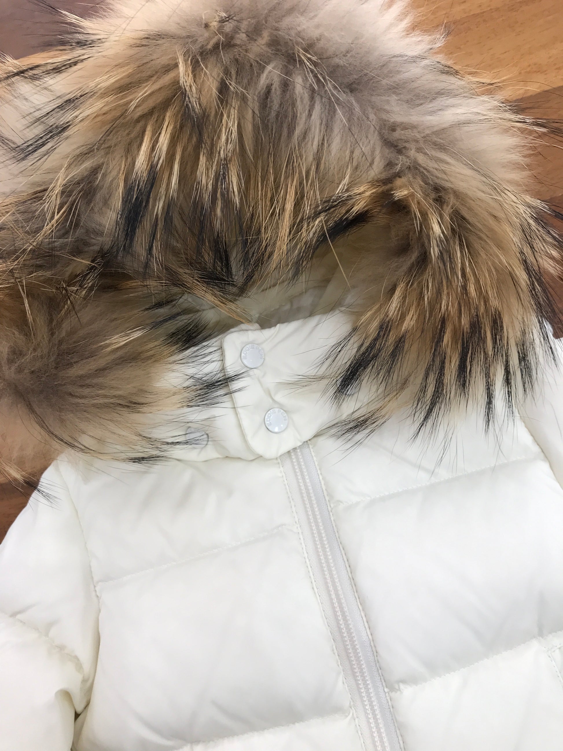 Piumino realizzato con pregiata piuma d'oca, caratterizzato da pratiche tasche frontali e cappuccio staccabile rifinito con morbida pelliccia sintetica. Un capo versatile che combina funzionalità e eleganza, ideale per affrontare le stagioni fredde con stile e comfort.