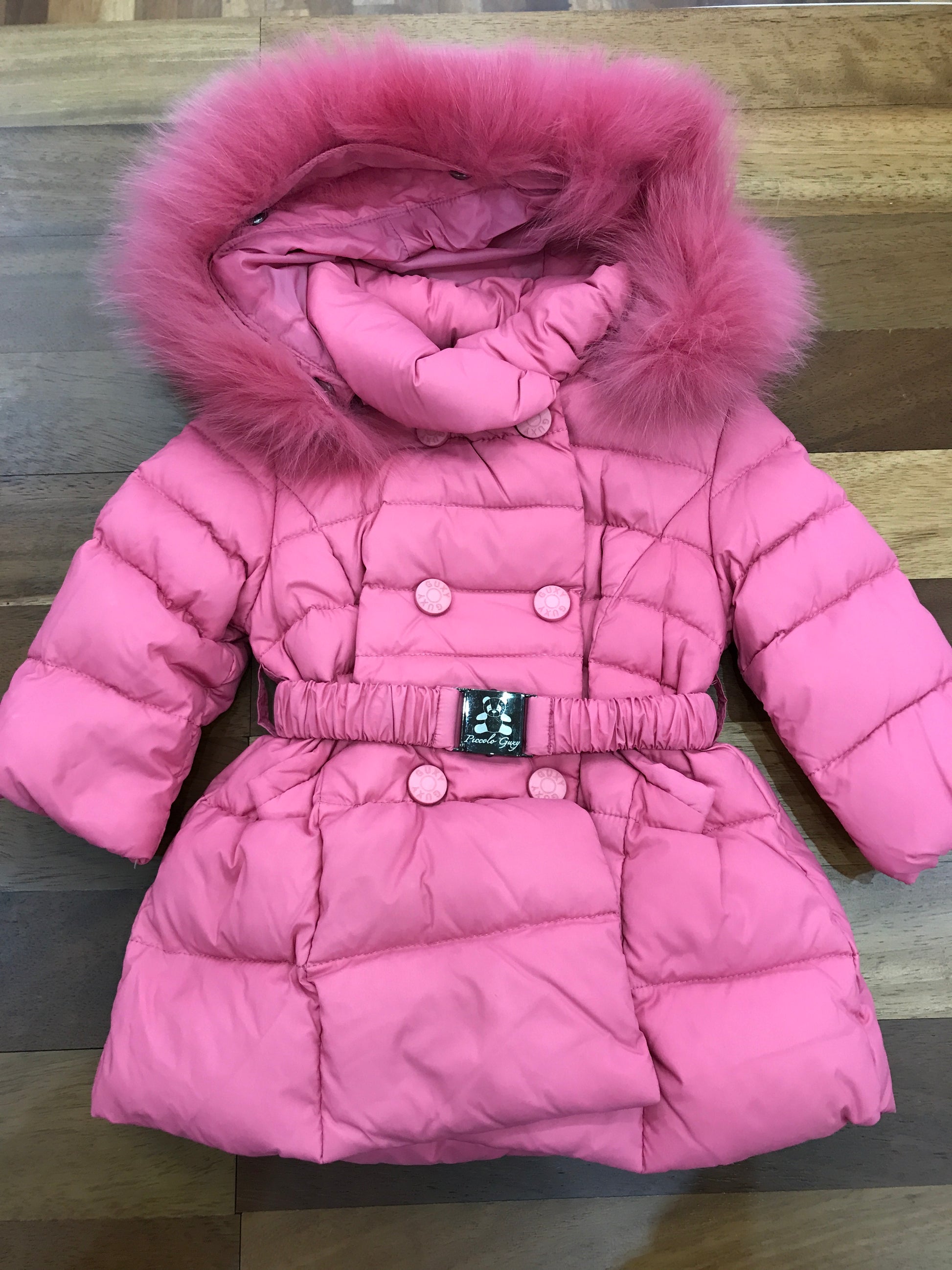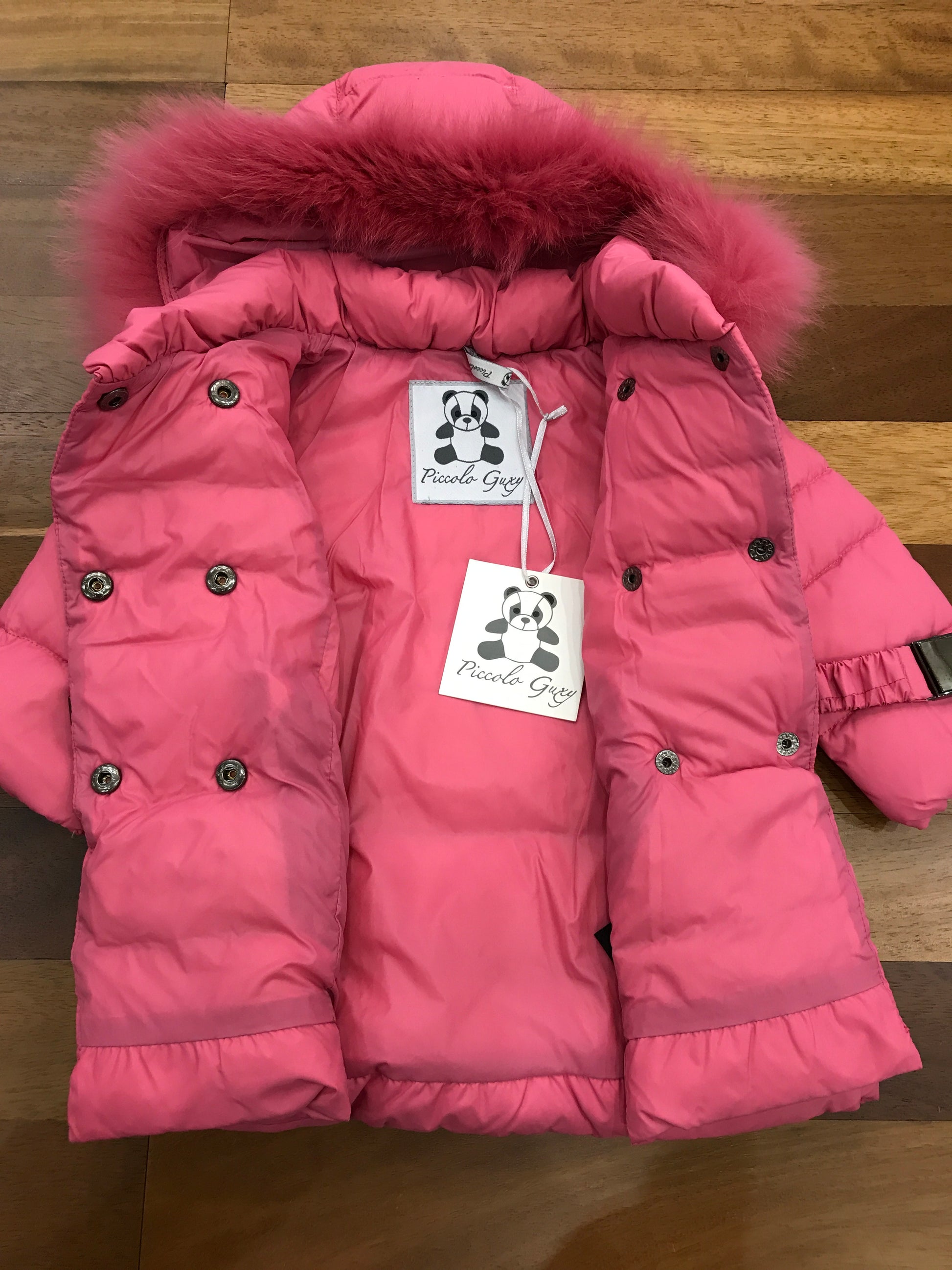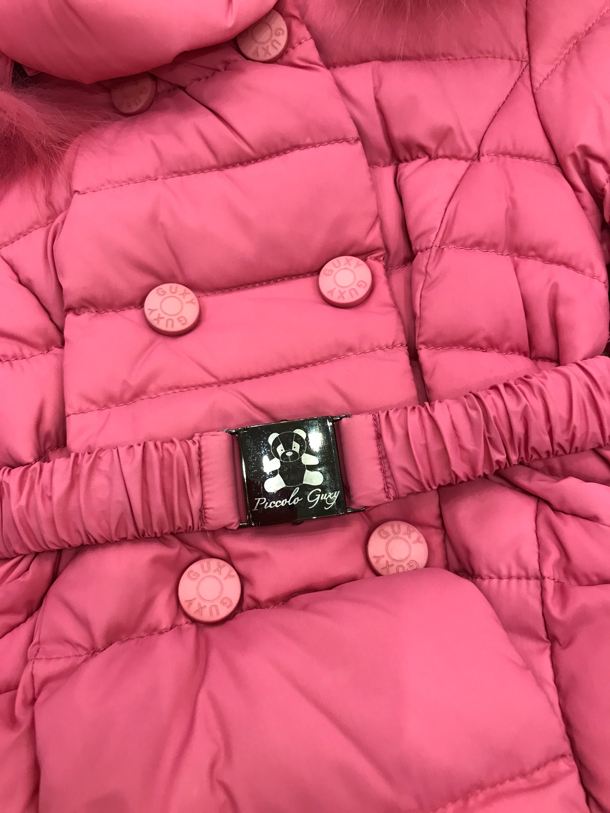 Giubbottino imbottito in tonalità fucsia, caratterizzato da un cappuccio rifinito in pelliccia e una silhouette avvolgente in vita grazie alla cintura decorativa. Un capo versatile che unisce comfort e stile, perfetto per le giornate più fredde.