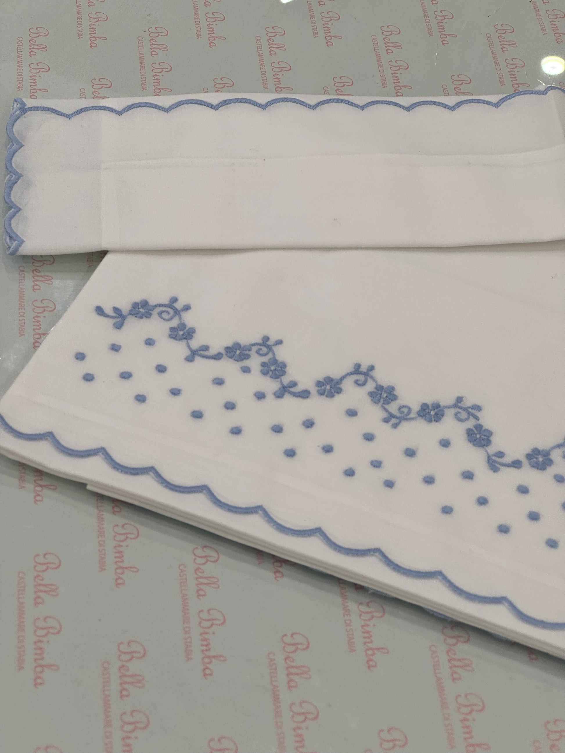 "Aggiungi un tocco di eleganza alla tua carrozzina, ovetto, passeggino o cesta in vimini con il Lenzuolino Baroni Firenze in cotone. Con un ricamo di pois e fiorellini cielo, è adatto per qualsiasi occasione. Comodo e pratico, sarà perfetto per il tuo bambino."