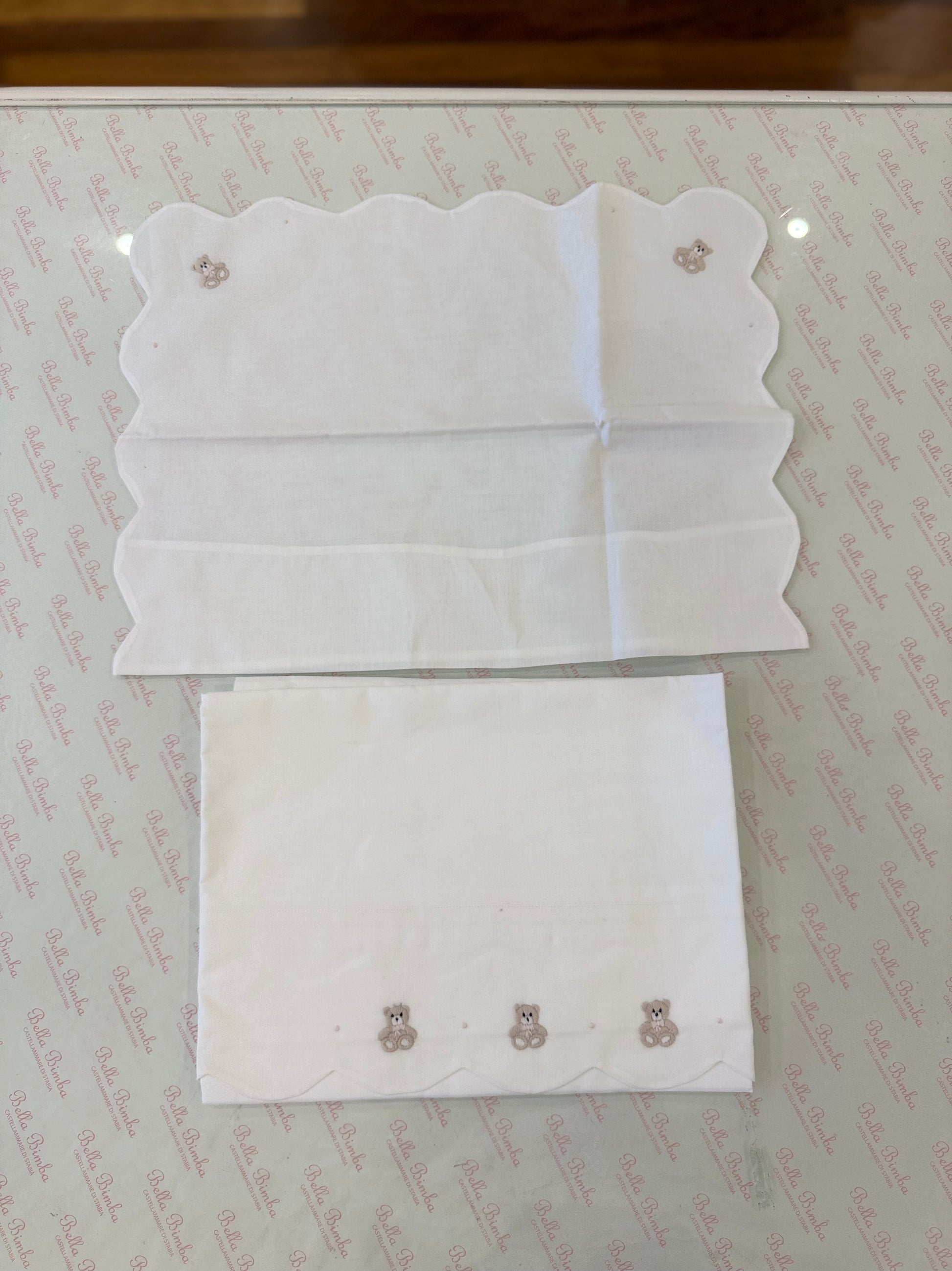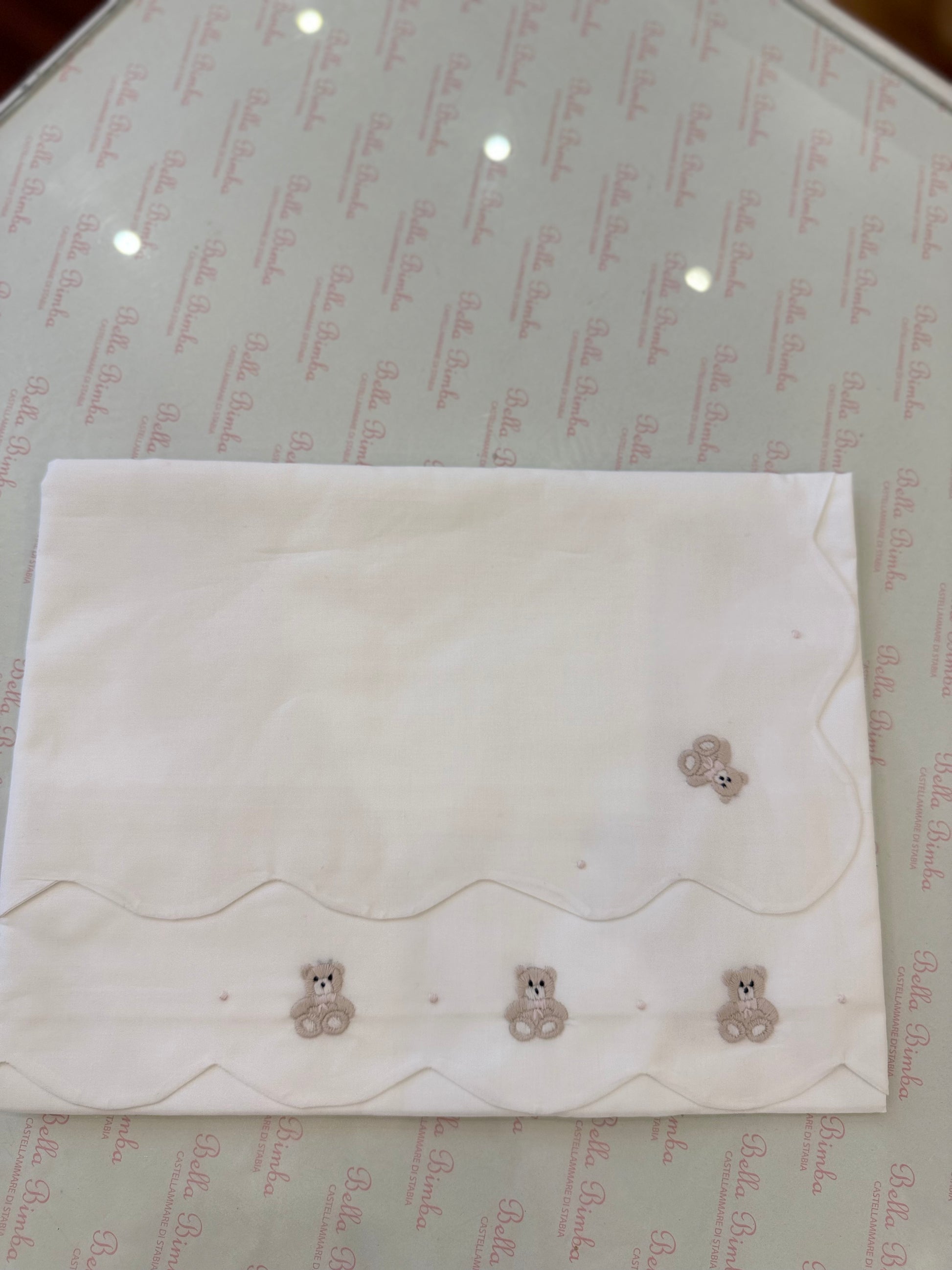 Questo lenzuolino in morbida batista di cotone è arricchito da deliziosi orsetti ricamati in color beige e fiocchetto rosa. Perfetto per la carrozzina, l'ovetto, la cesta in vimini e il passeggino, include anche una morbidissima federina per il cuscino. Confortevole e adatto per ogni occasione, il Lenzuolino Colibrì è il must-have per il tuo bambino.
