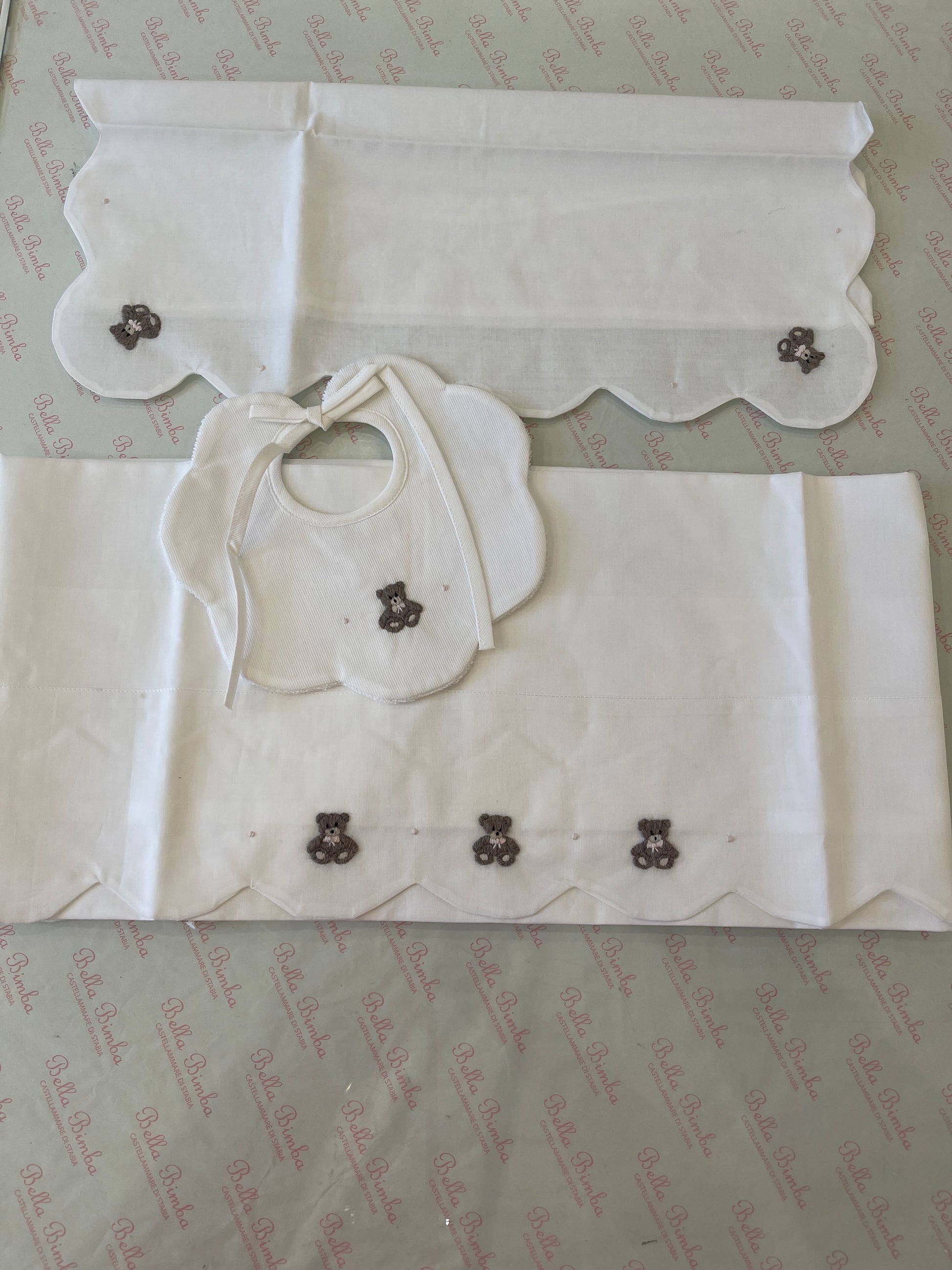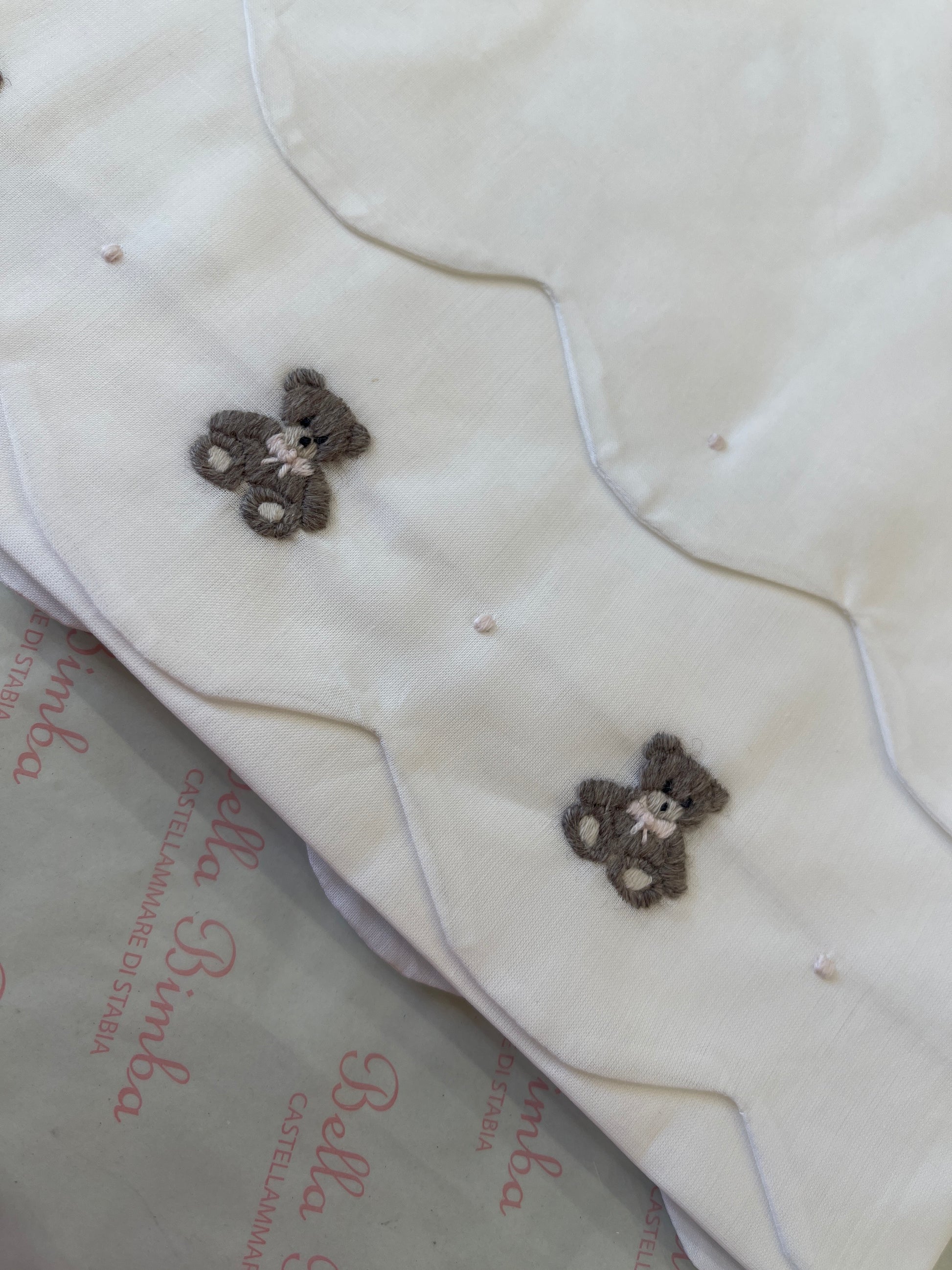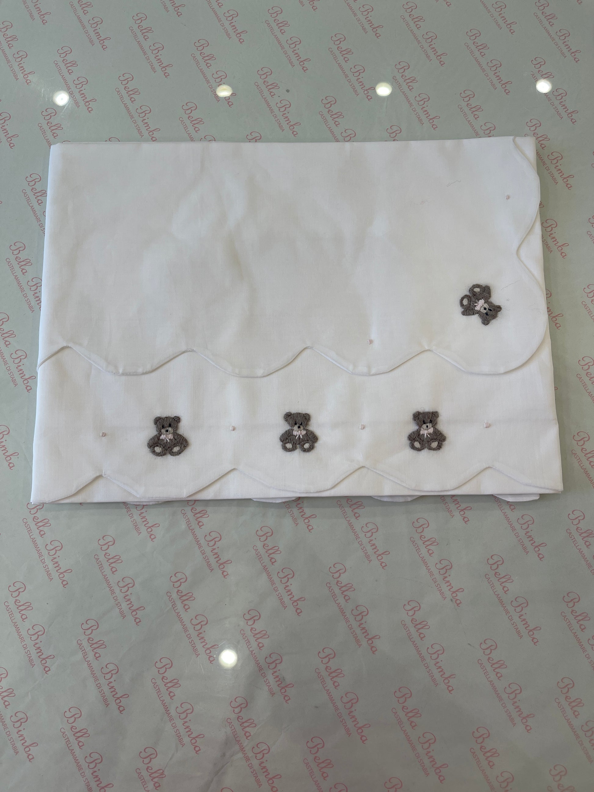 Questo lenzuolino in morbida batista di cotone è arricchito da deliziosi orsetti ricamati in color beige e fiocchetto rosa. Perfetto per la carrozzina, l'ovetto, la cesta in vimini e il passeggino, include anche una morbidissima federina per il cuscino. Confortevole e adatto per ogni occasione, il Lenzuolino Colibrì è il must-have per il tuo bambino.