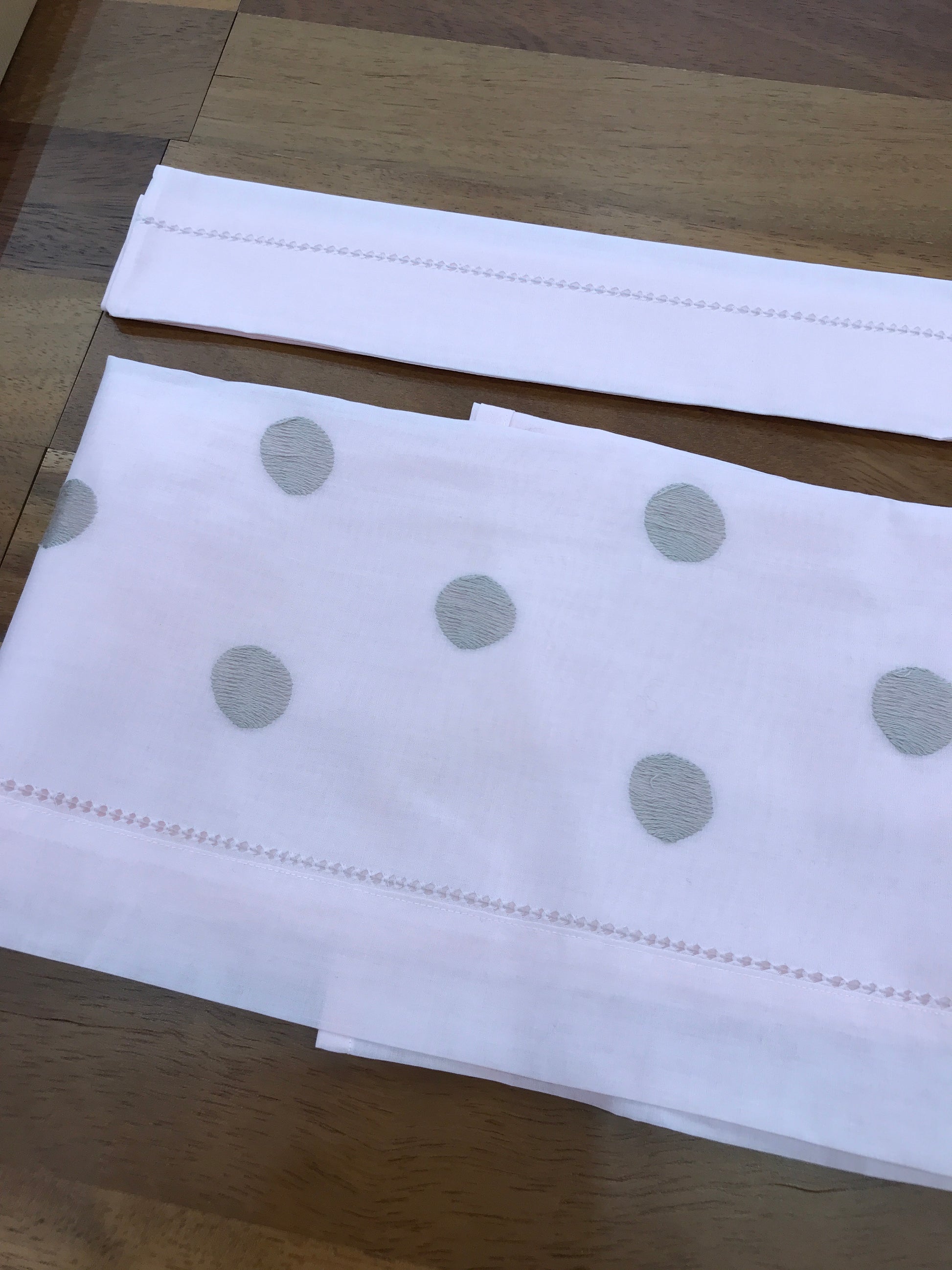 Lenzuolino in tonalità rosa impreziosito da delicati pois ricamati sulla superficie, abbinato a una federa rosa dal design classico, ideale per aggiungere un tocco di eleganza e raffinatezza al corredo letto.