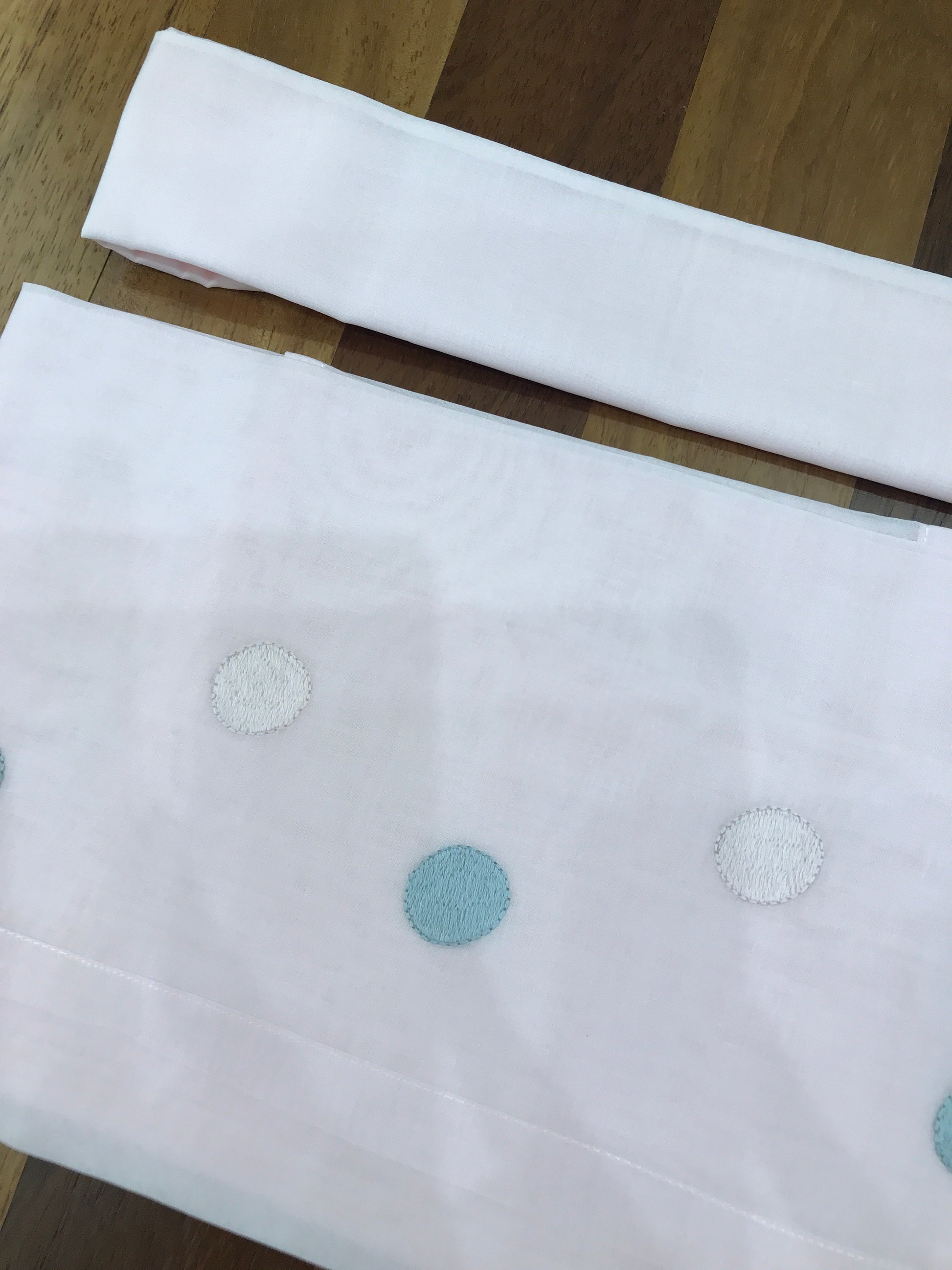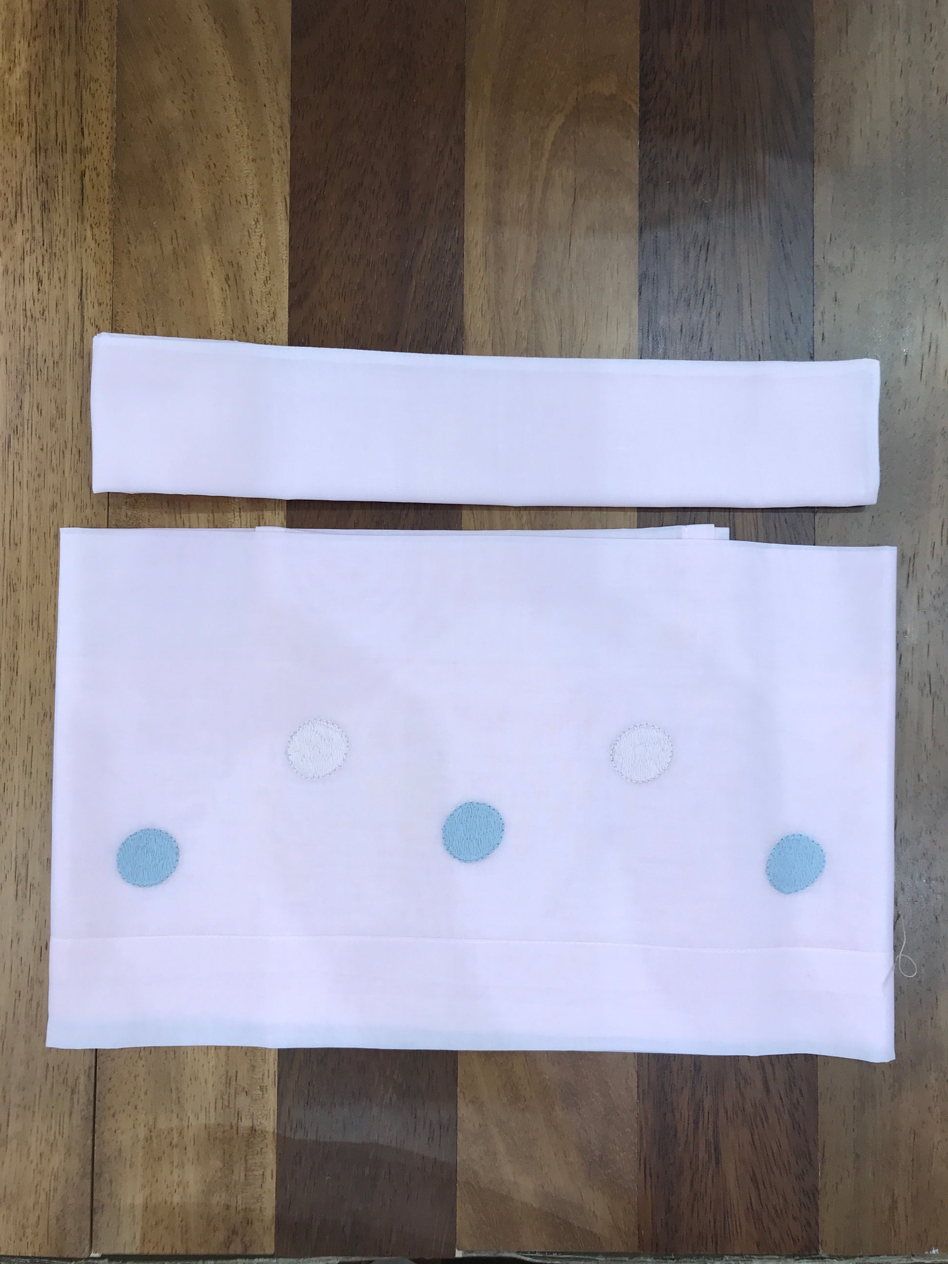 Lenzuolino in rosa tenue, caratterizzato da un elegante pattern di pois nelle tonalità grigie e rosa. Una scelta sofisticata per chi ricerca qualità e design coordinato nella biancheria per l'infanzia.