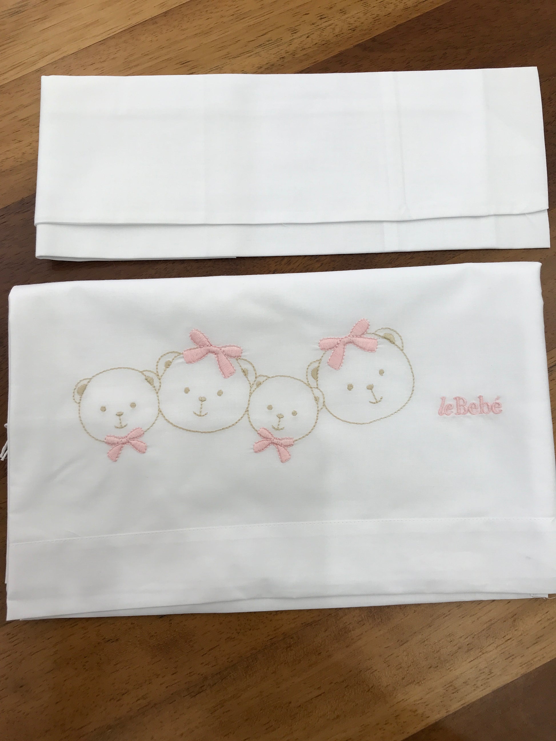 Questo lenzuolino in cotone bianco è arricchito da teneri orsetti ricamati in rosa, conferendo un tocco delicato e raffinato. Il set include federe coordinate in bianco per un insieme armonioso e un lenzuolo inferiore con angoli elasticizzati, progettato per adattarsi perfettamente al materasso, garantendo comfort e praticità nel cambio della biancheria.