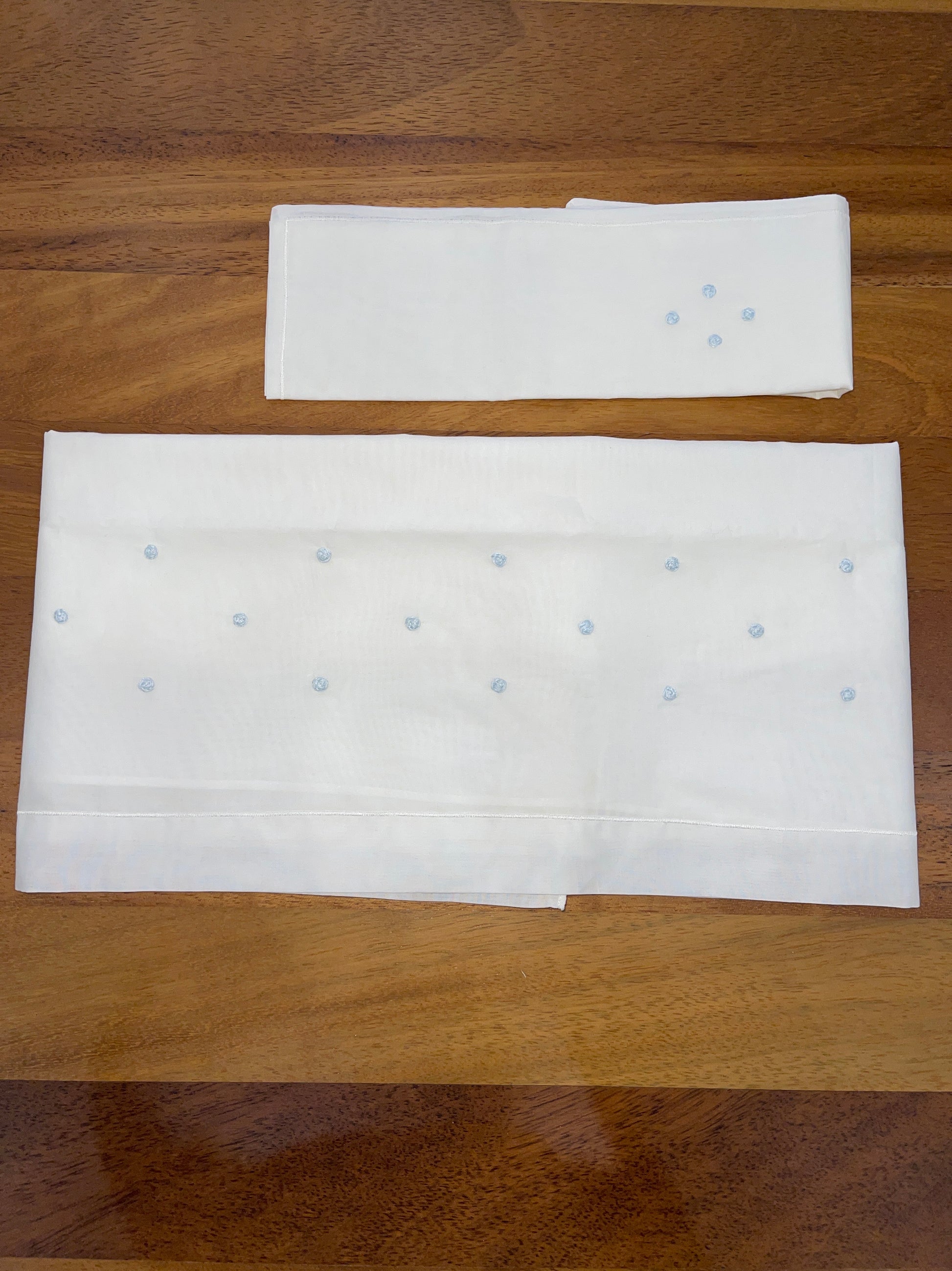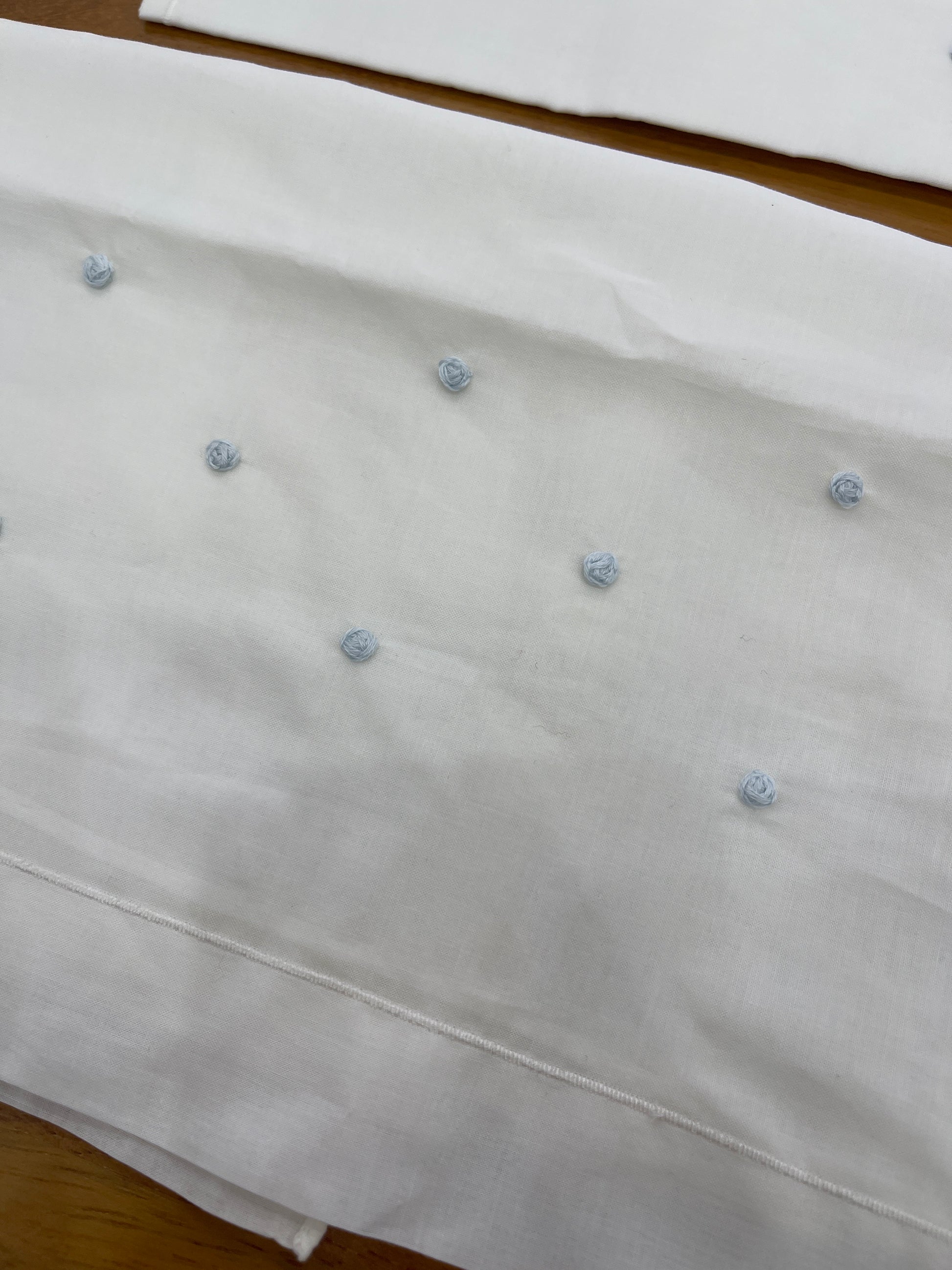 Questi lenzuoli in batista di cotone con pois ricamati a mano sono il tocco di lusso perfetto per la tua camera da letto. Il cotone di alta qualità è morbido e traspirante, mentre i pois ricamati a mano aggiungono un dettaglio unico e raffinato. Dormi comodamente e con stile con il lenzuolino piccola giuggiola.