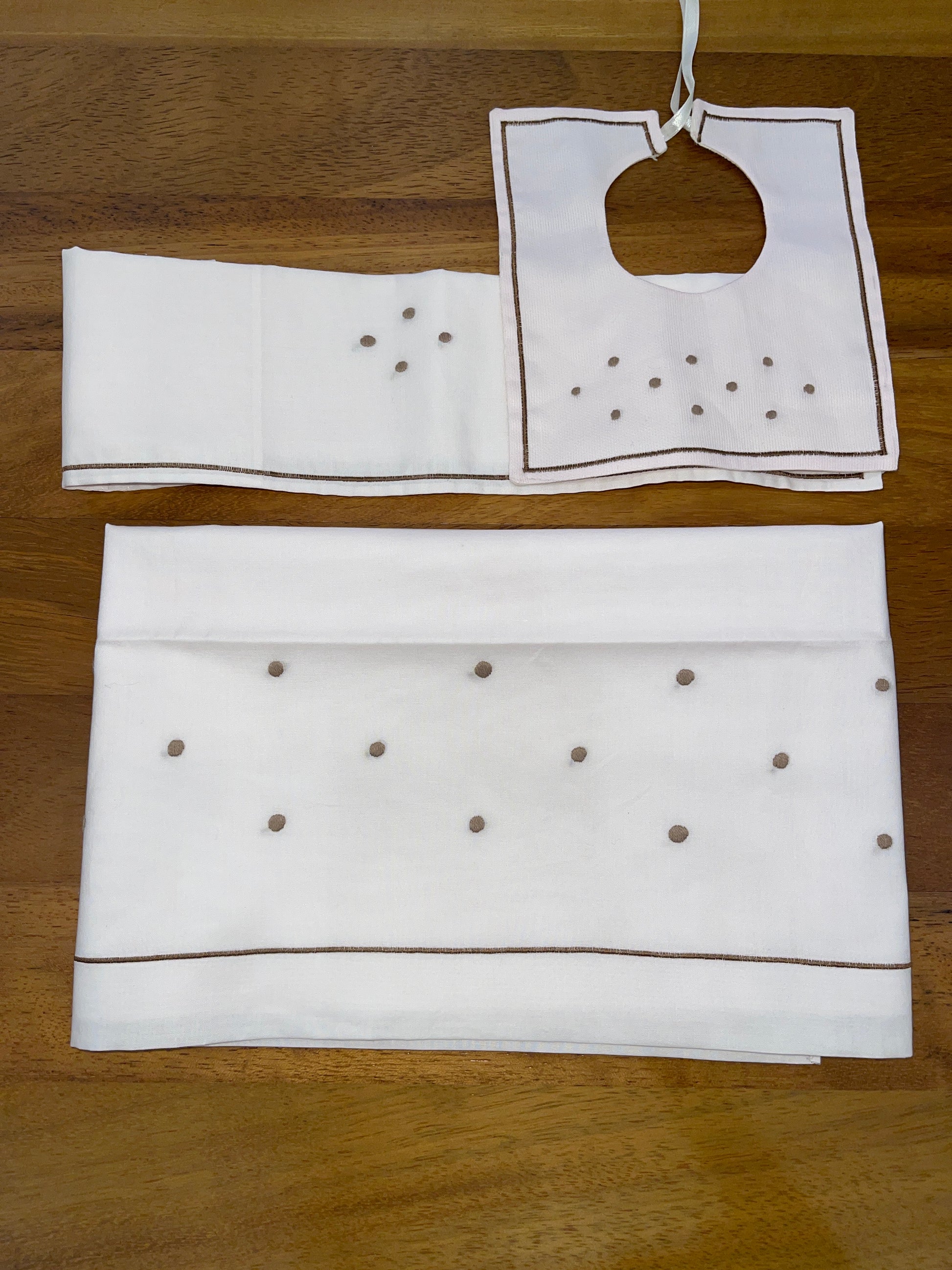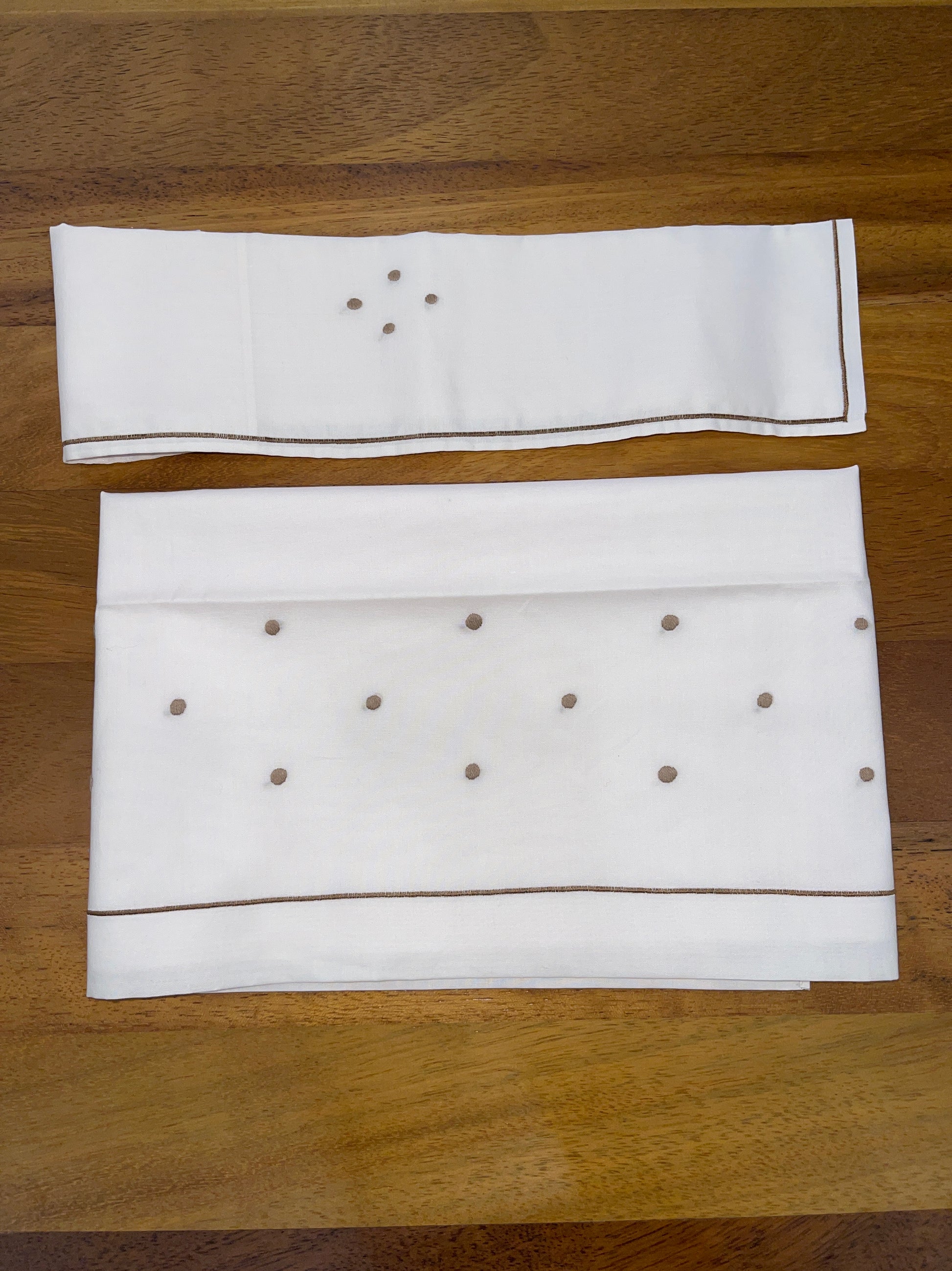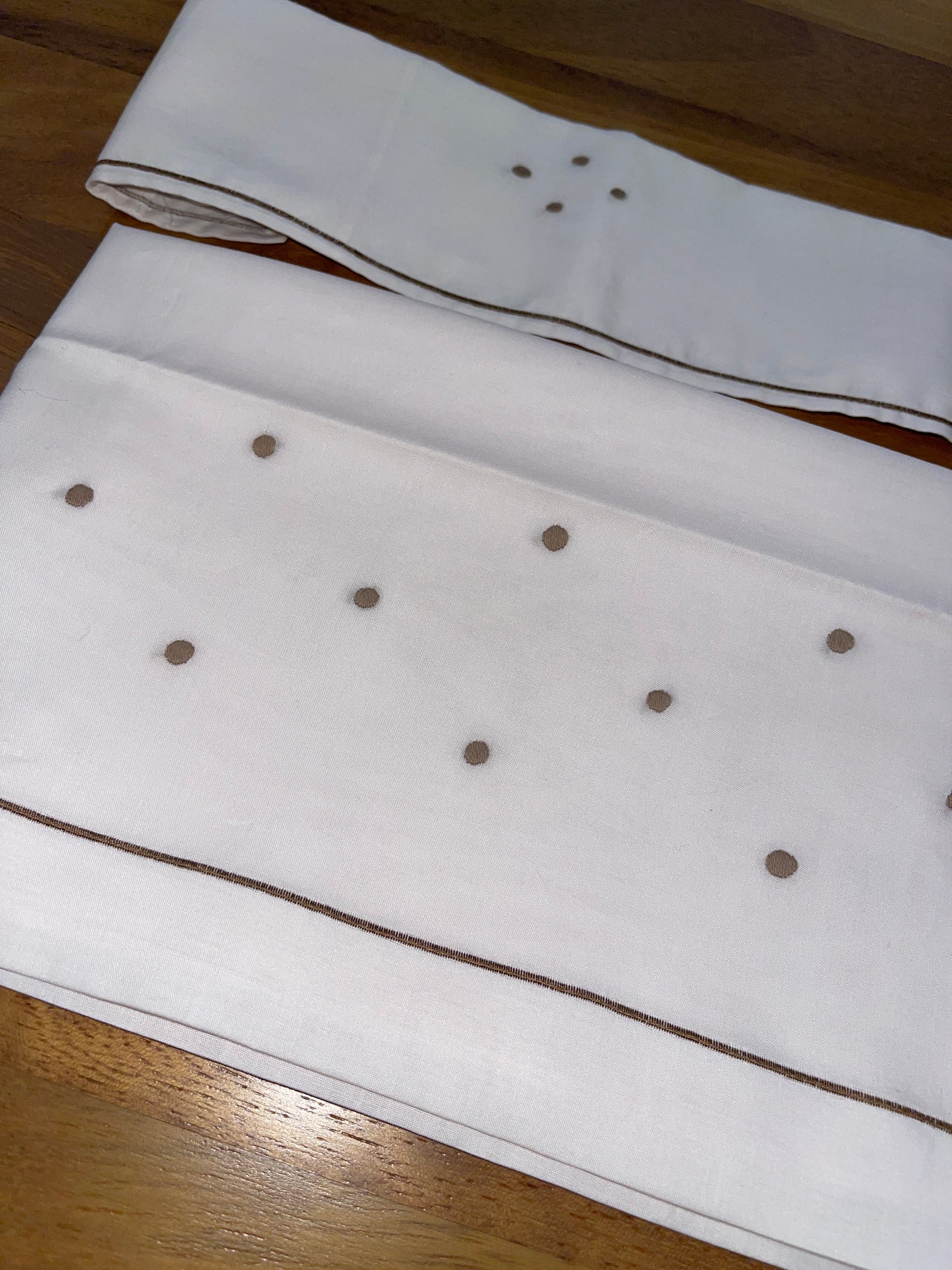 Lenzuolino in batista di cotone con profilo al bordo e pois a forma di rombi. Realizzato con tessuto morbido e traspirante per un sonno confortevole. Dettagli eleganti e design unico per un tocco di stile alla tua camera da letto.