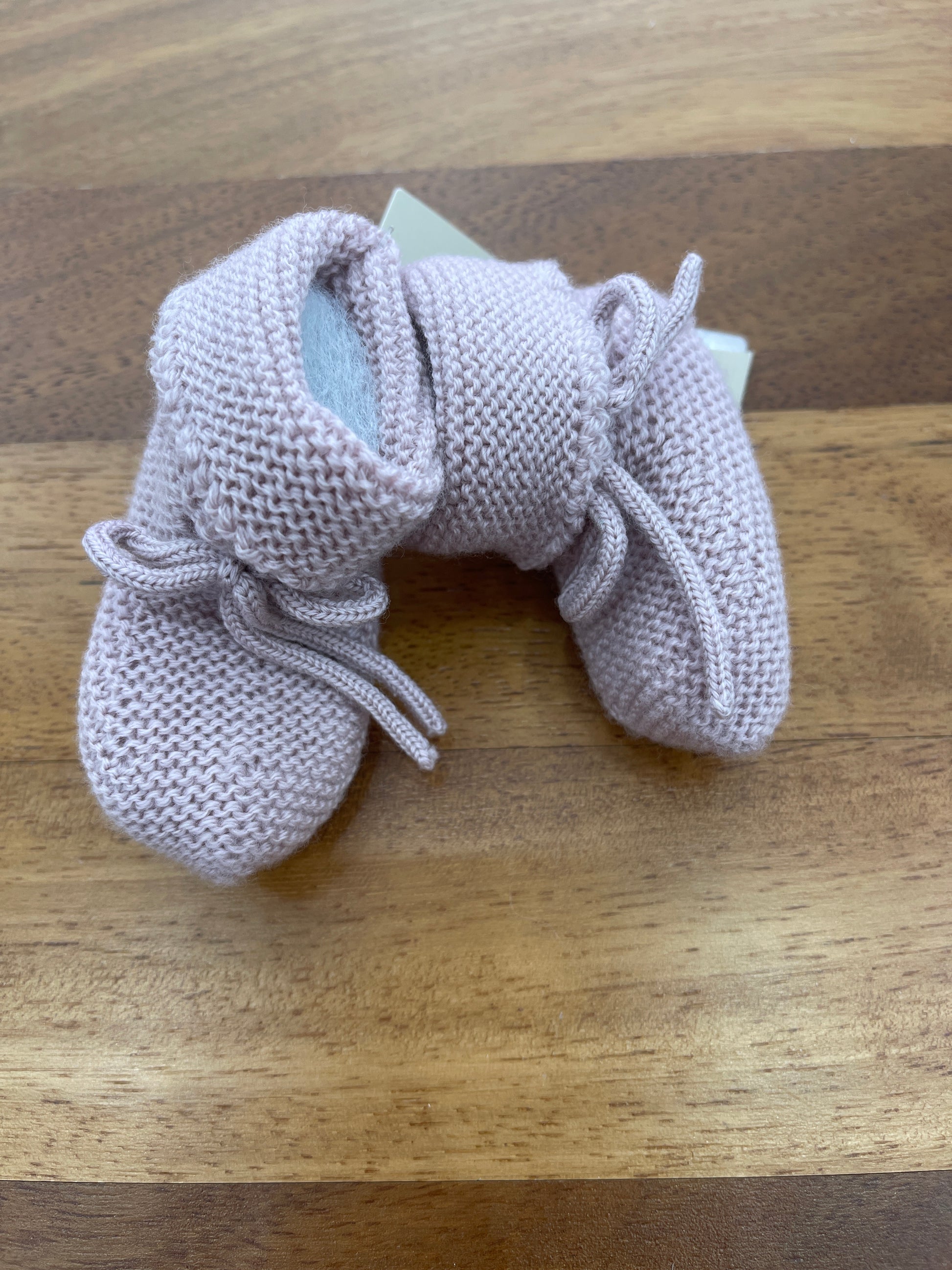 Morbide scarpine in lana dotate di risvolto e laccio a passanastro per una calzata sicura e confortevole.