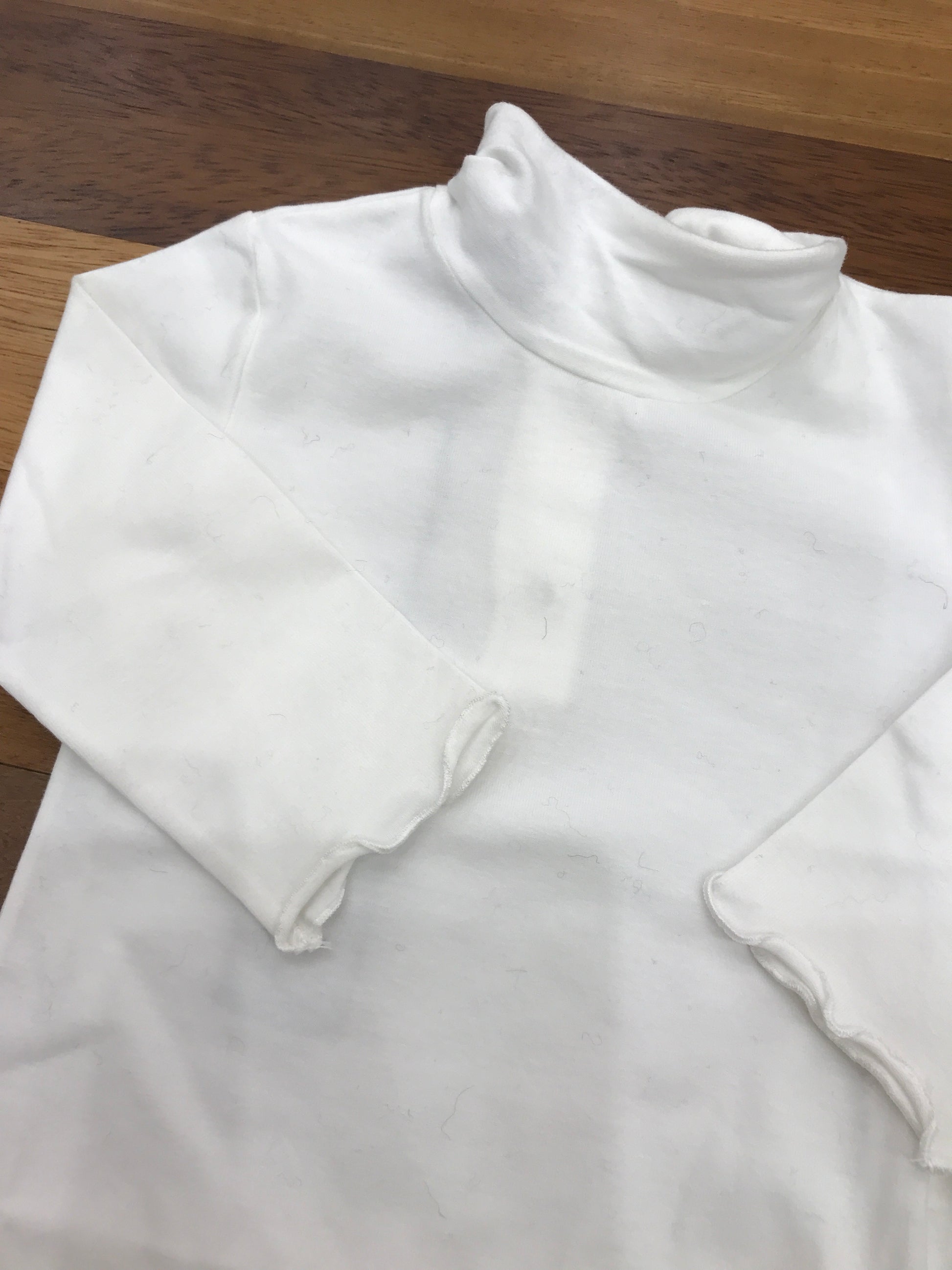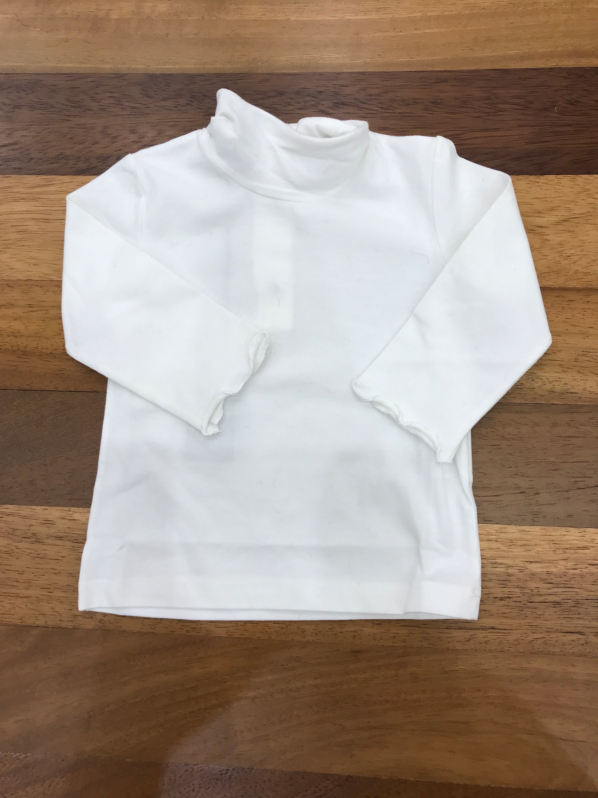 Maglietta in cotone caldo con maniche lunghe, caratterizzata da un design essenziale bianco, collo alto e bordo smerlato sulle maniche.