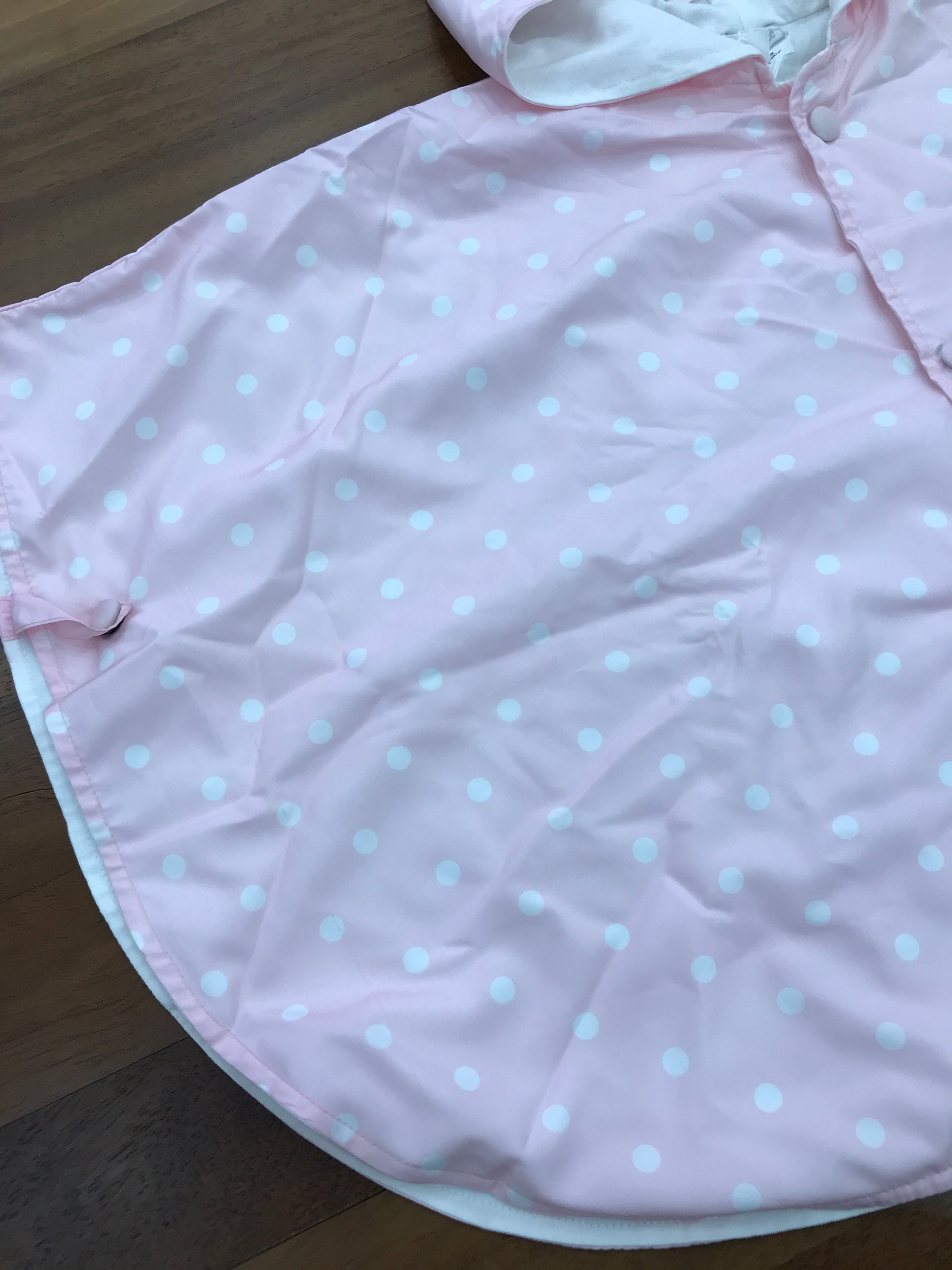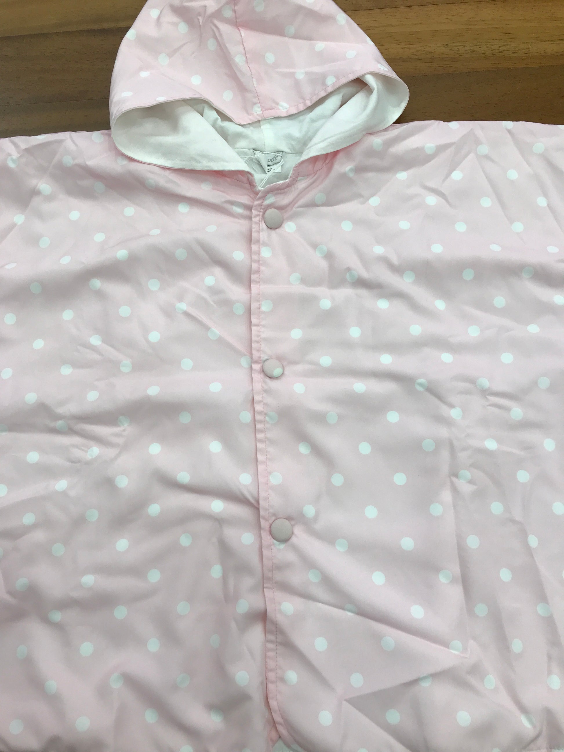 Elegante mantella impermeabile caratterizzata da una tonalità erosa raffinata, impreziosita da delicati pois bianchi. Dotata di cappuccio funzionale e chiusura con bottoncini, rappresenta la soluzione ideale per proteggere il piccolo da pioggia e umidità mantenendo uno stile ricercato. Un capo versatile che combina praticità e design accattivante.