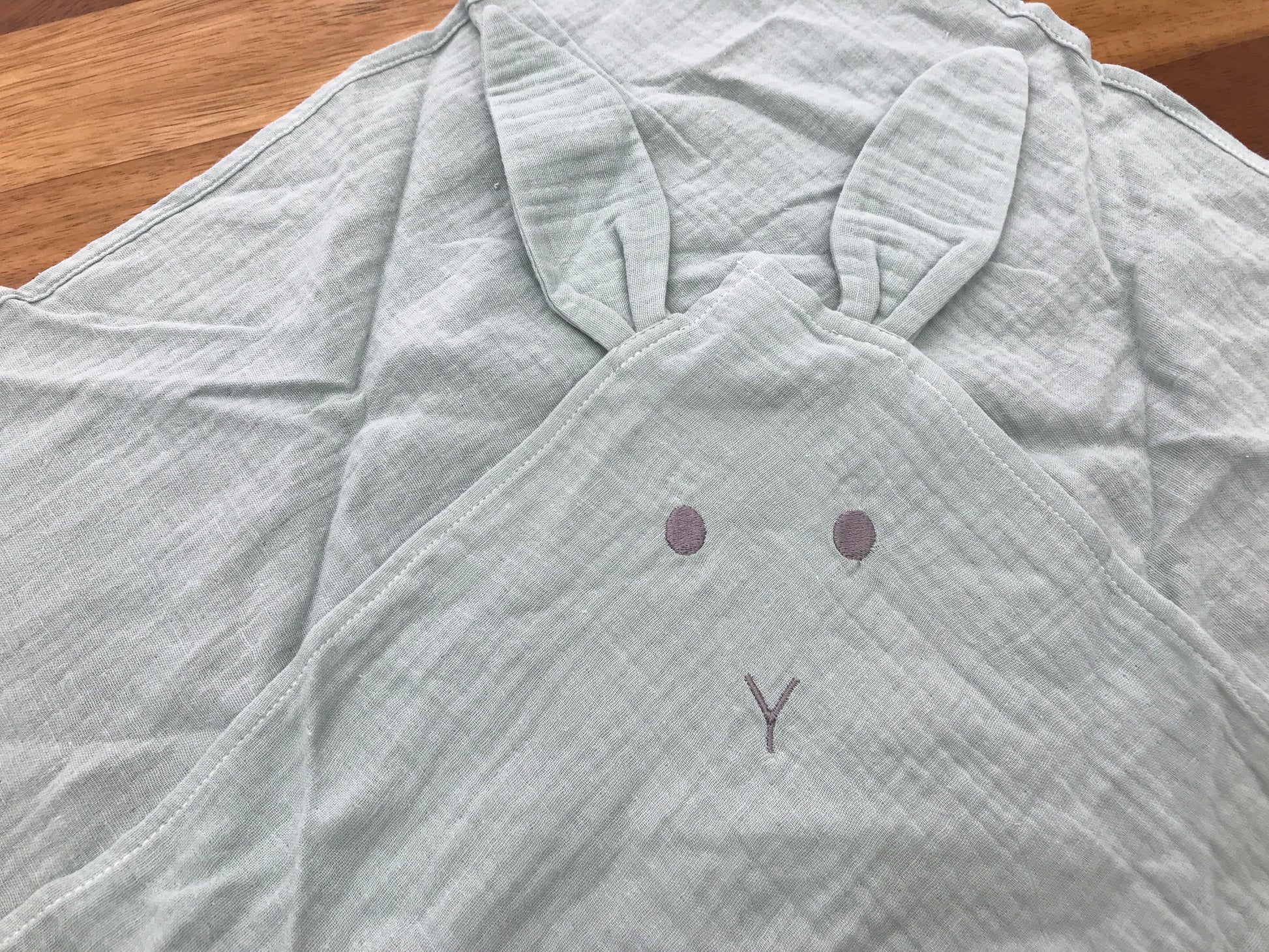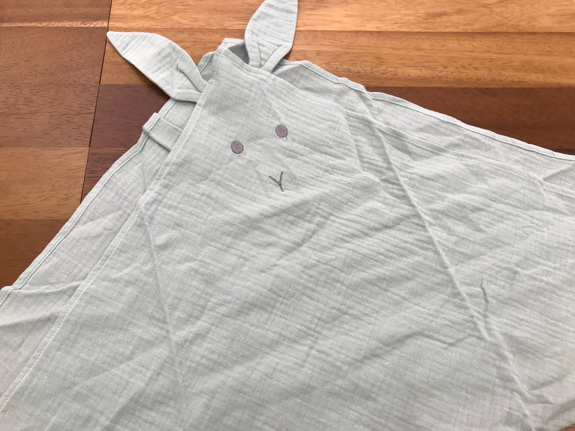 Realizzata in morbida garza verde, questa mussola presenta un angolo con soffice bordo a forma di orecchie e un delicato animaletto ricamato, conferendo un tocco distintivo e affettuoso sempre posizionato nello stesso angolo per garantire comfort e praticità al tuo bambino.