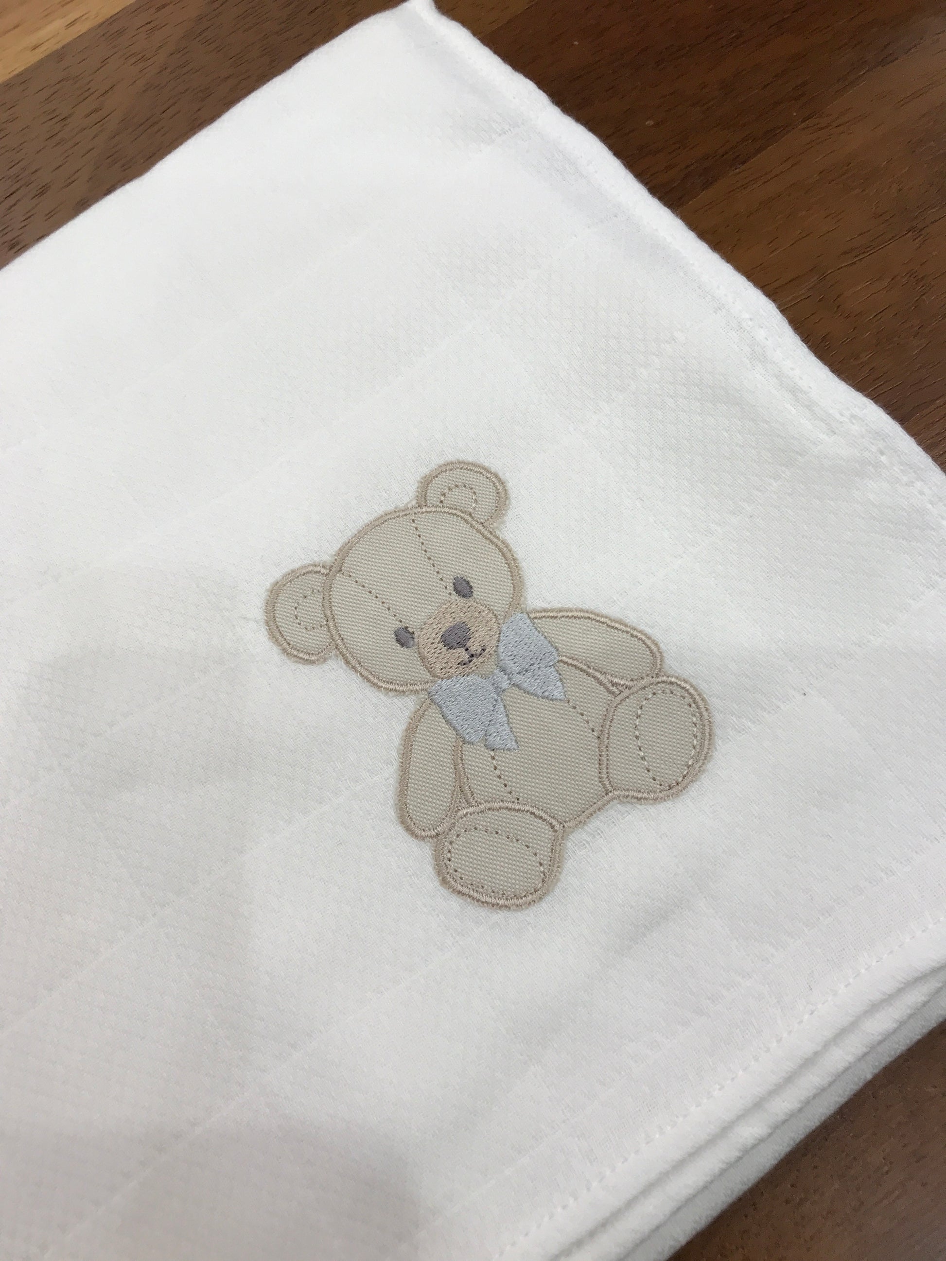Mussola Baby Gi in garza color panna con orsetto ricamato sul davanti